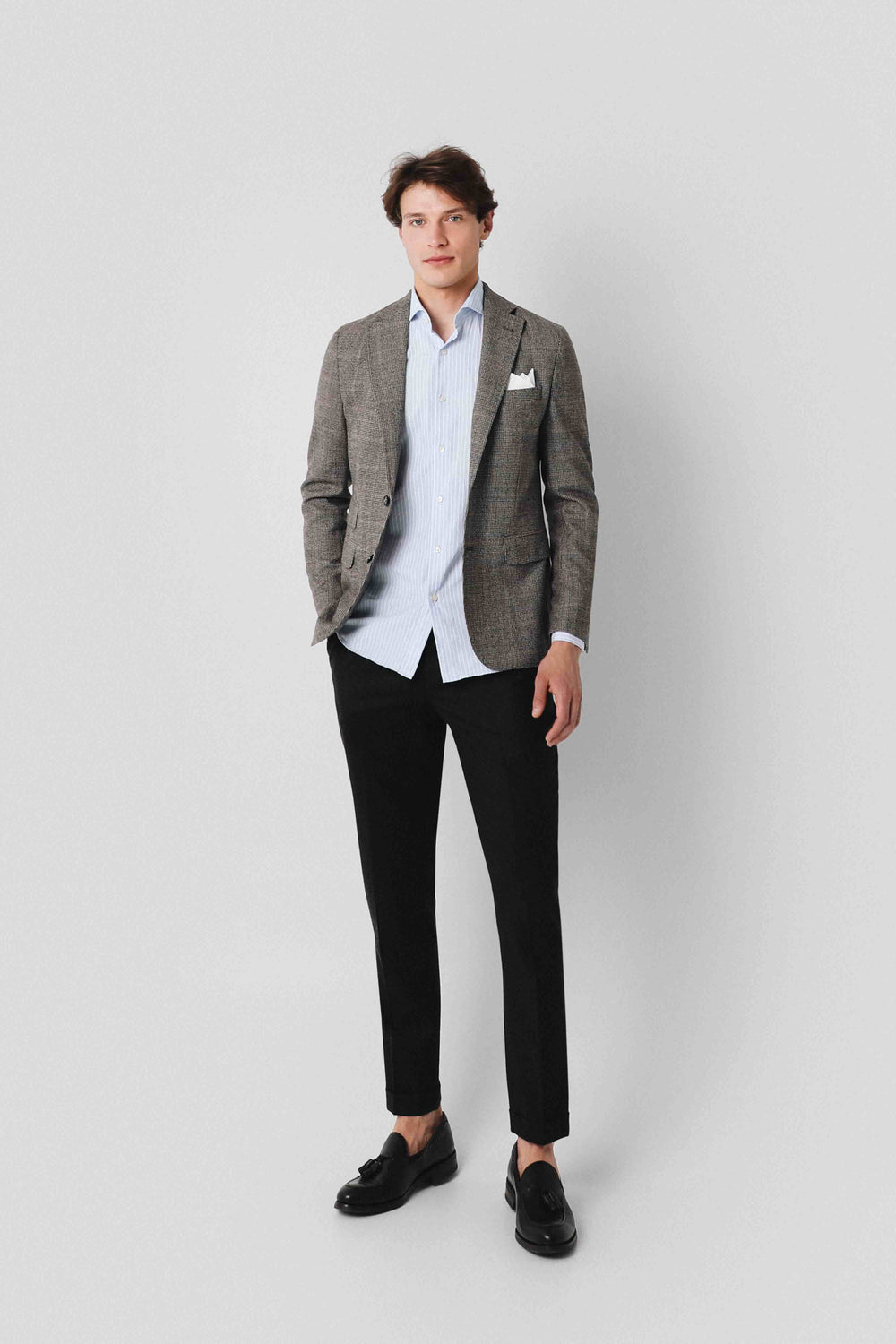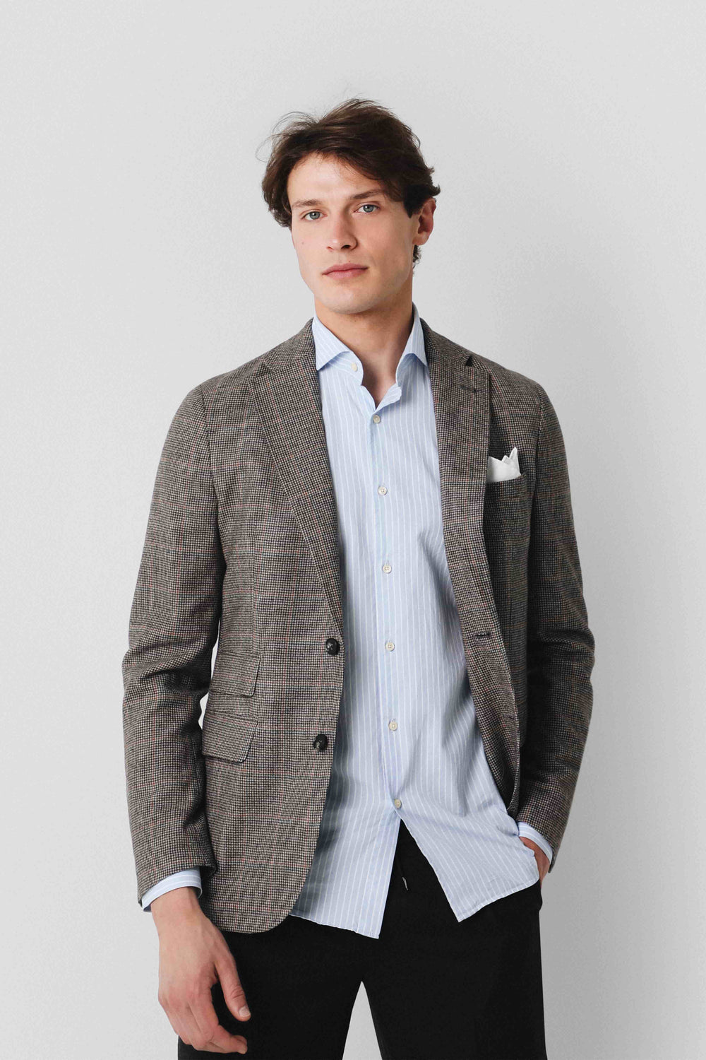 Blazer de cuadros con cierre con botones y solapas de muesca. Manga larga y bolsillo en el pecho.
