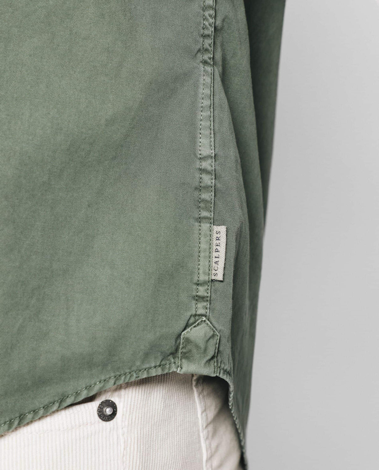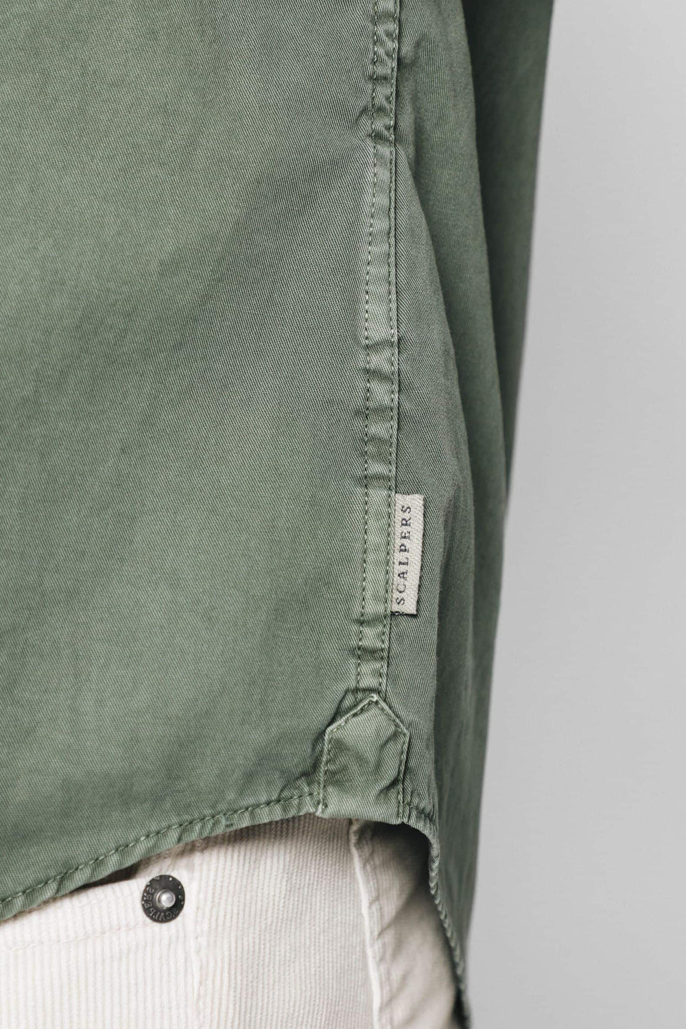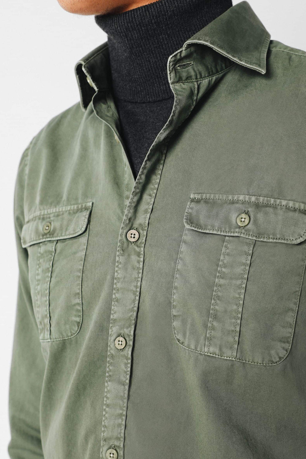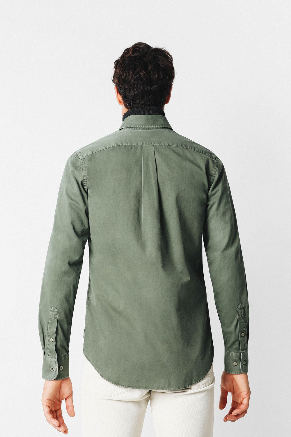 Camisa con bolsillos en el pecho, cierre con botones, cuello clásico y manga larga.