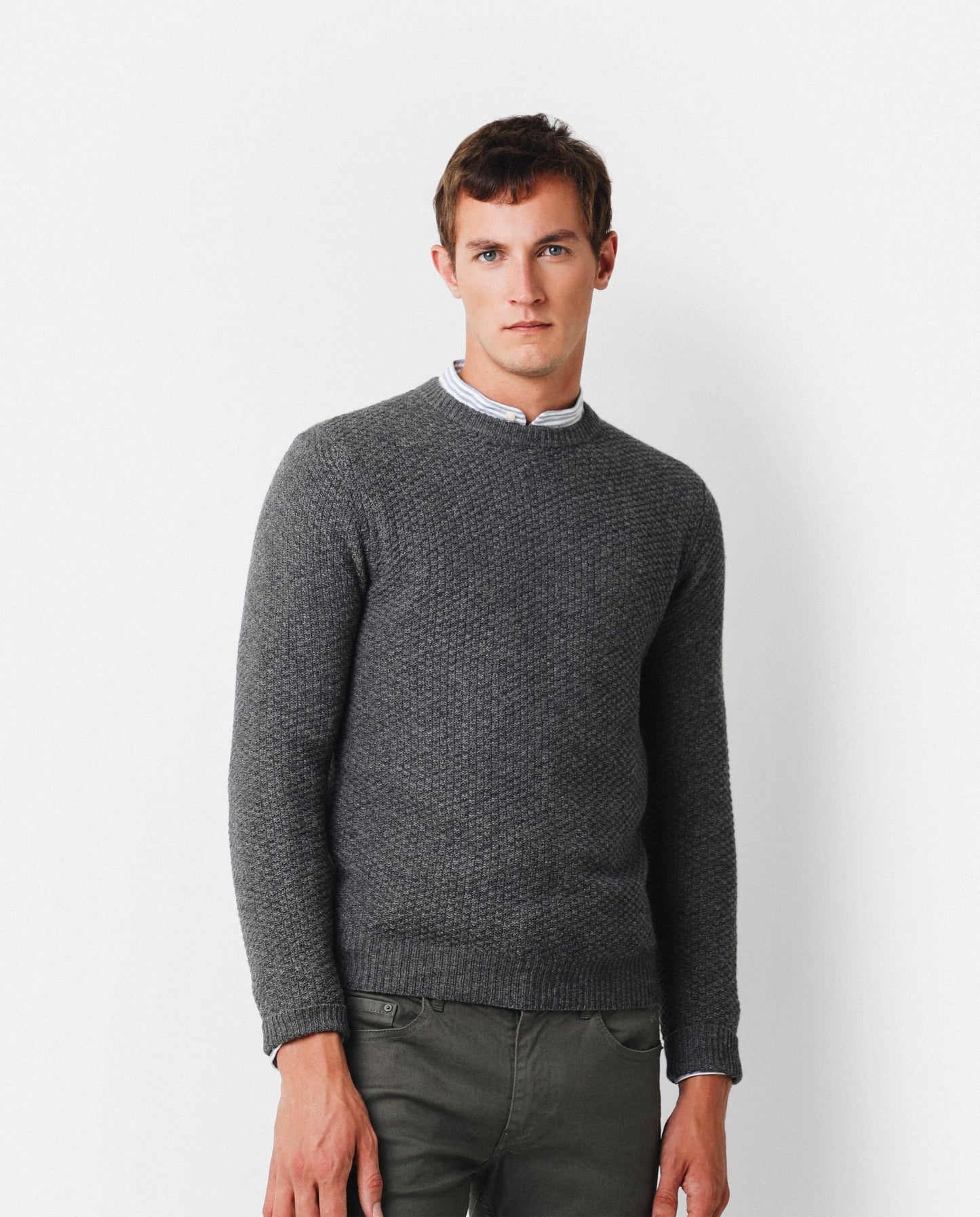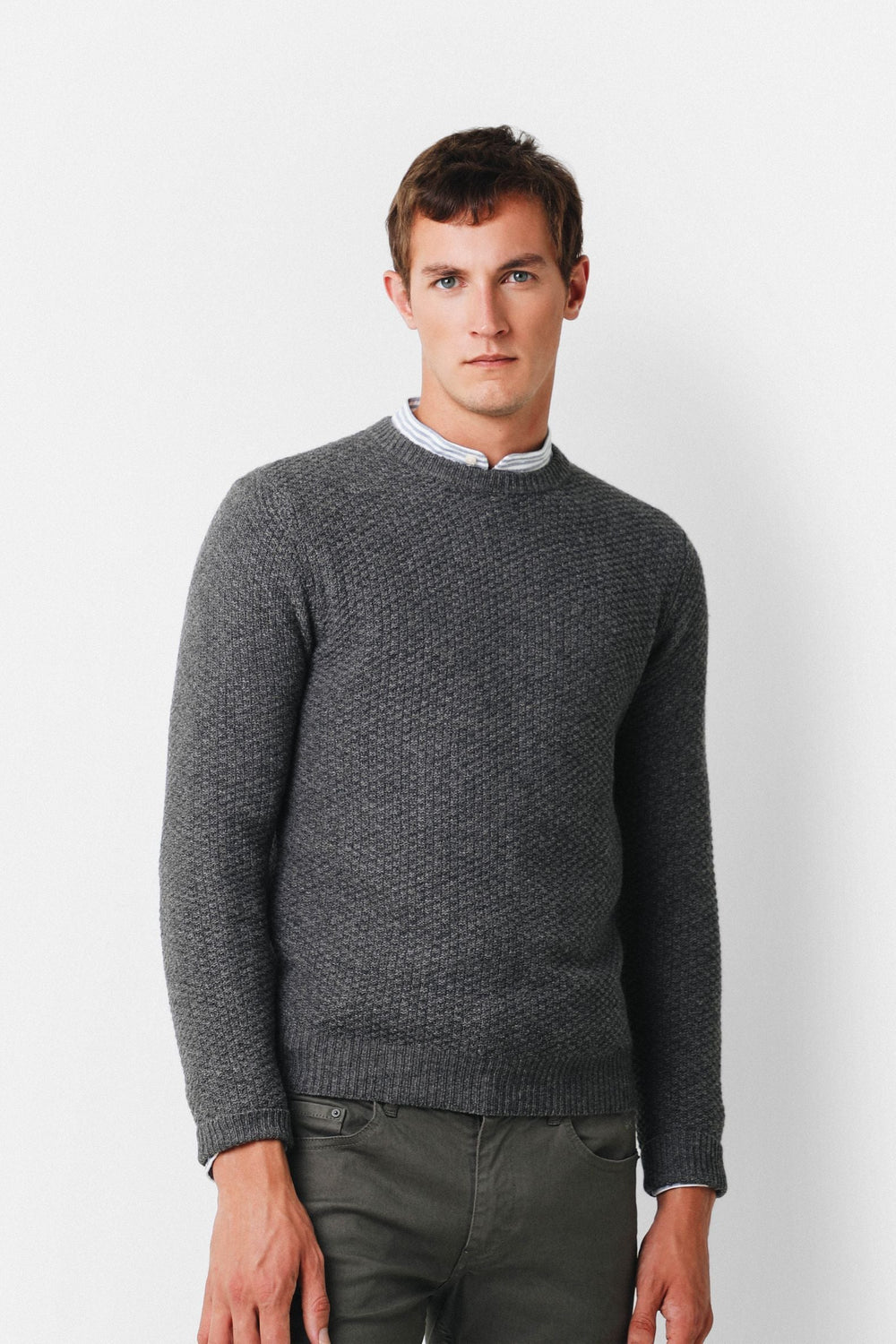 Jersey de punto de estructura, corte Regular Fit, cuello redondo y manga larga.