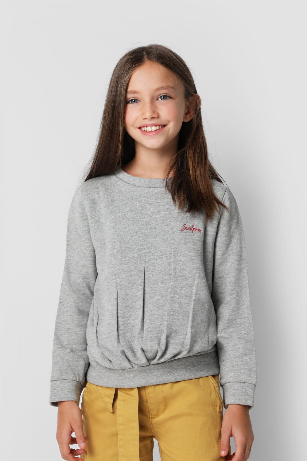 Sudadera confeccionada en tejido 100% algodón. Corte Regular Fit, cuello redondo y manga larga. Detalle de plisado delantero y print en la espalda.