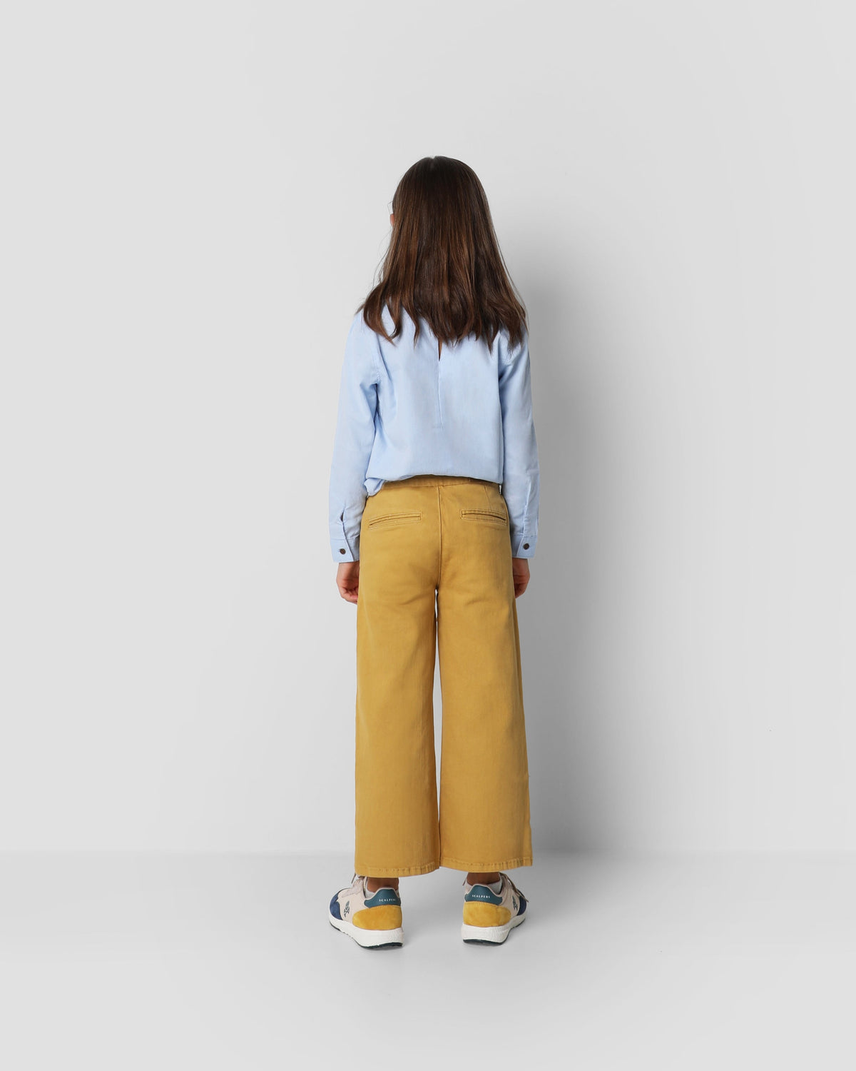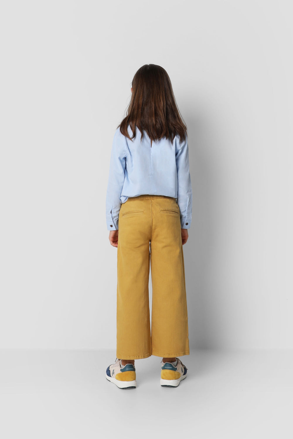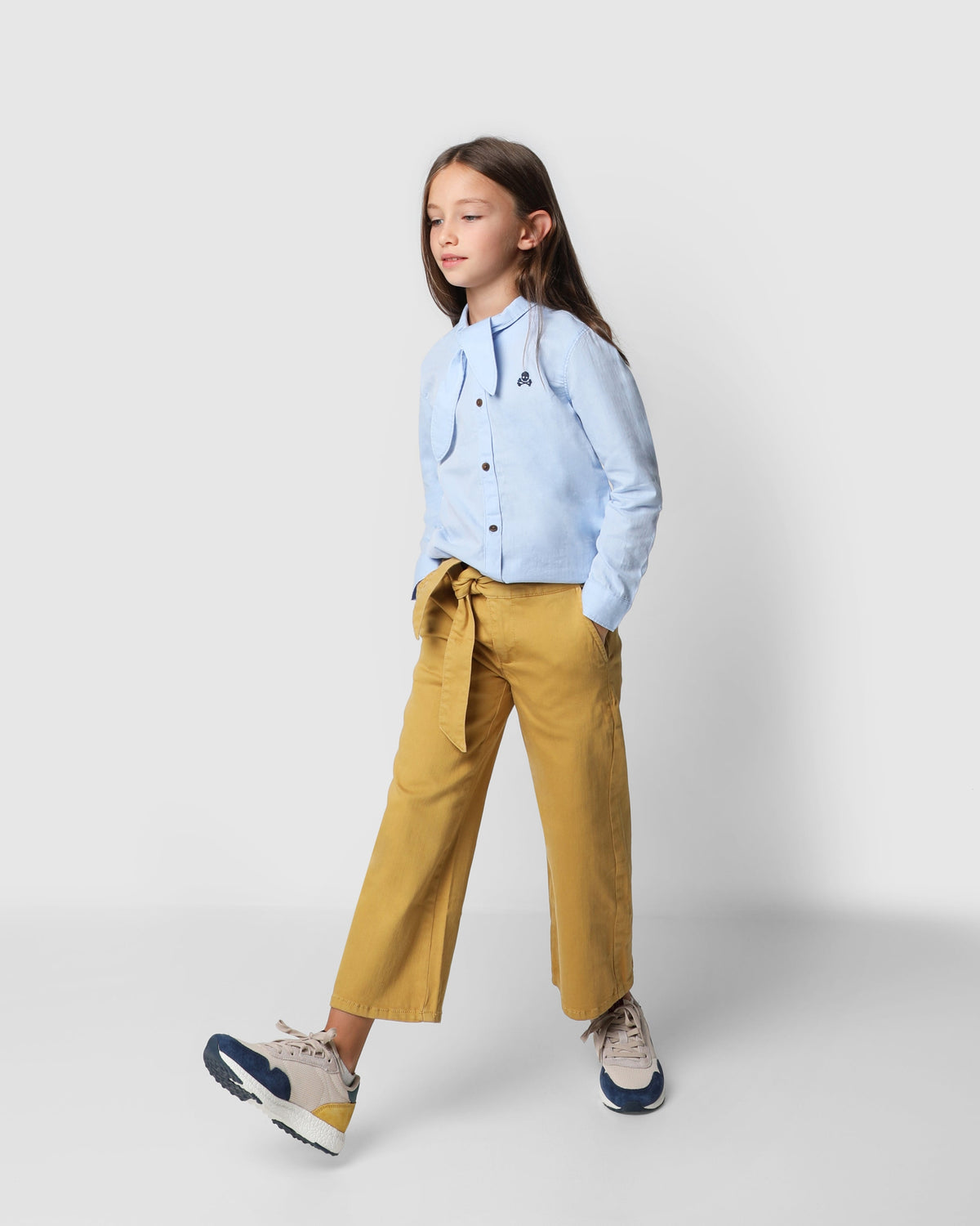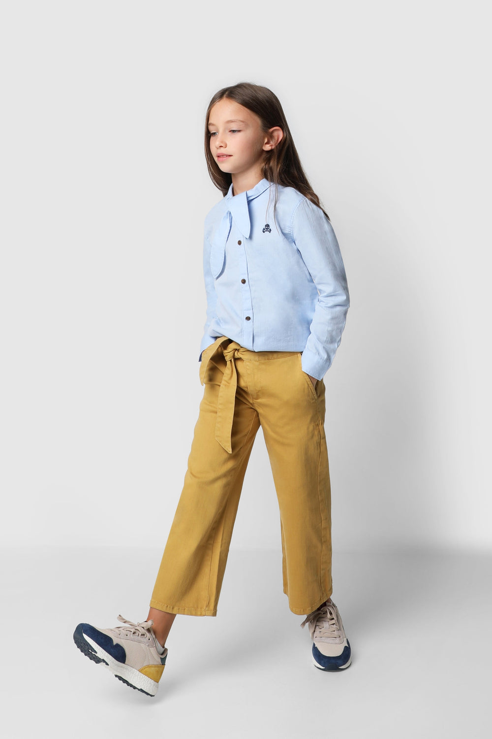 Pantalón confeccionado en algodón. Corte ancho con cinturilla extra larga para anudar, cierre con snap y cremallera. Bolsillo estilo chino frontales y de vivo en la parte trasera. Bordado de calavera sobre el bolsillo trasero.