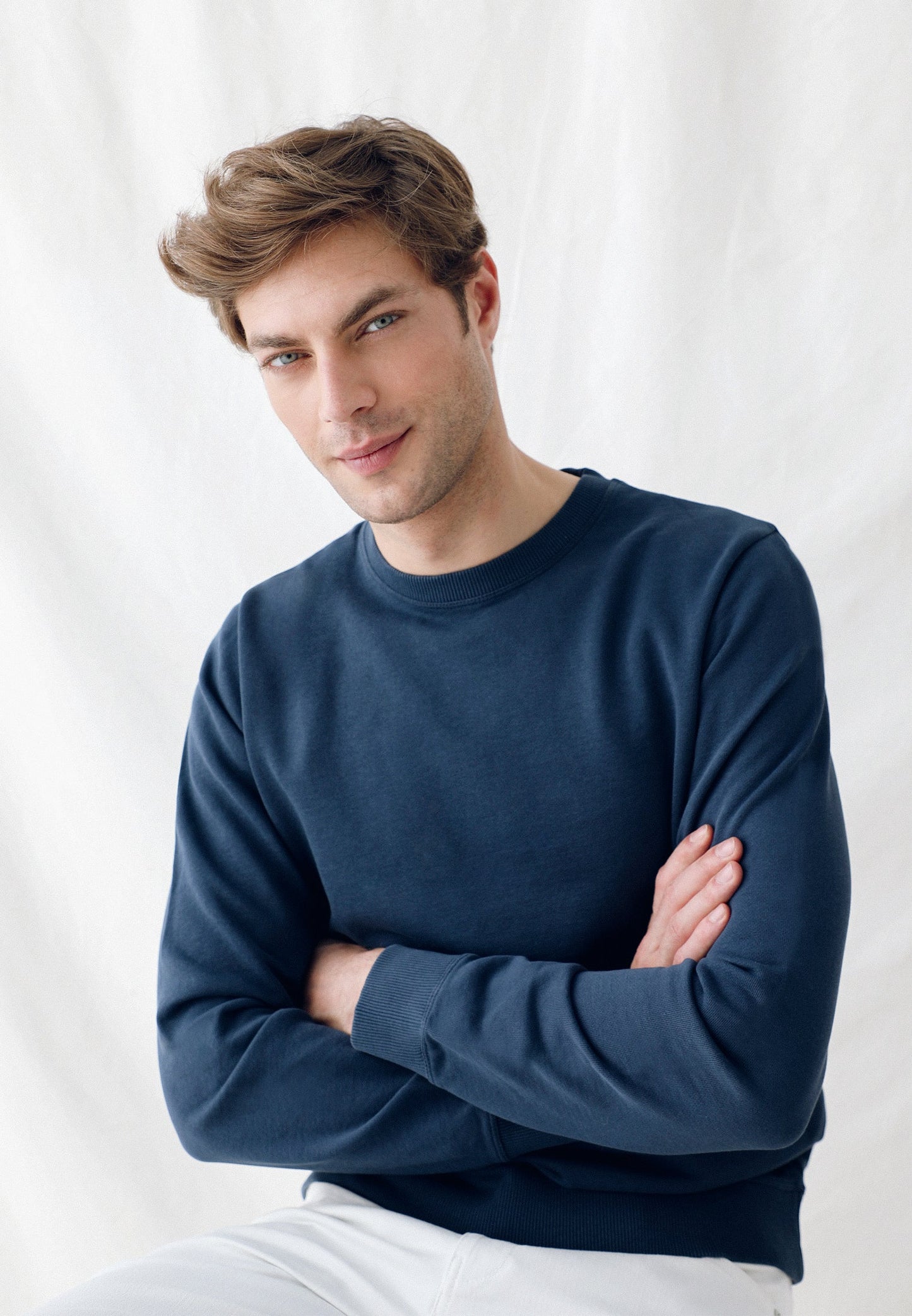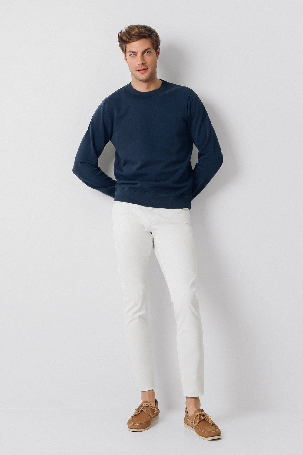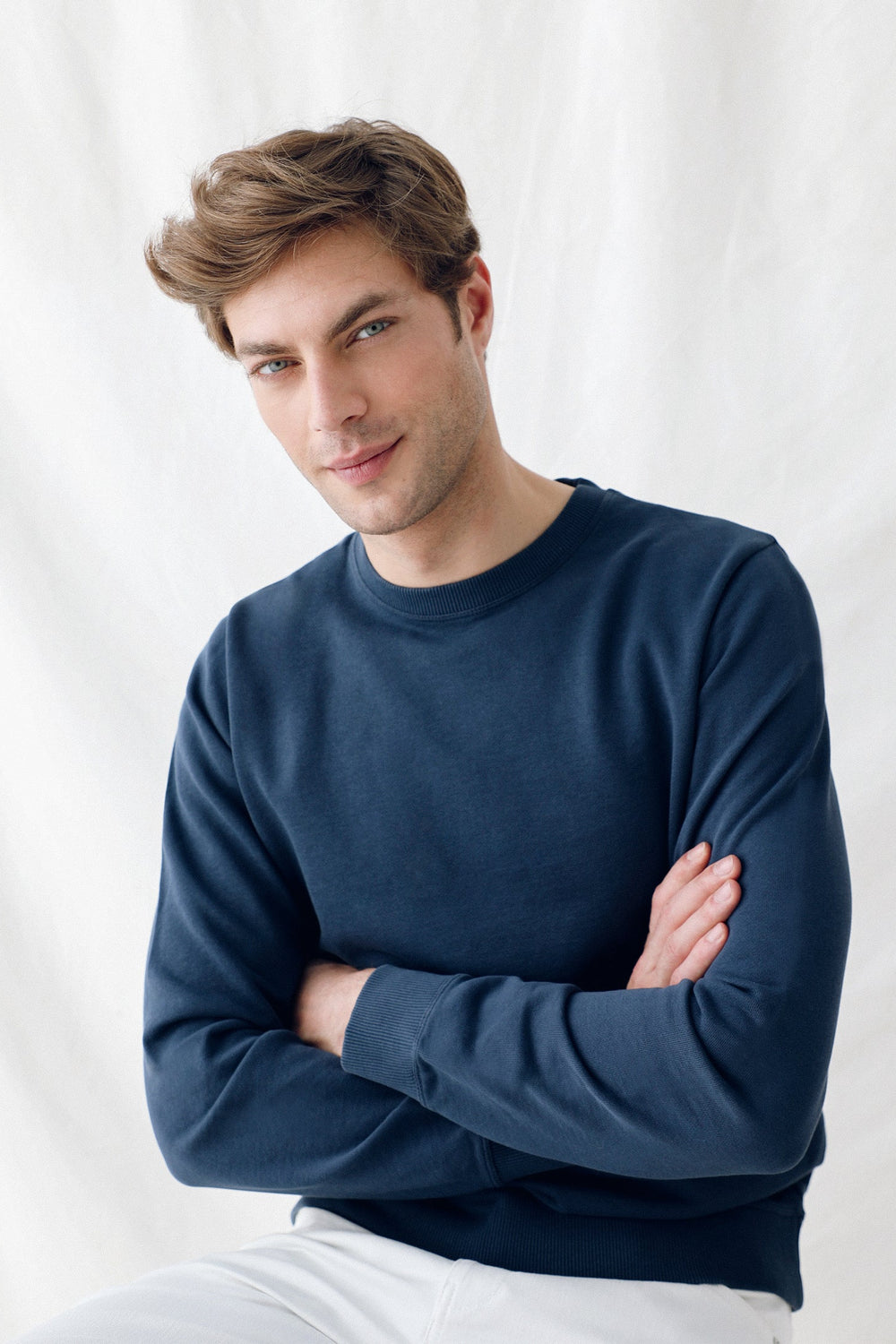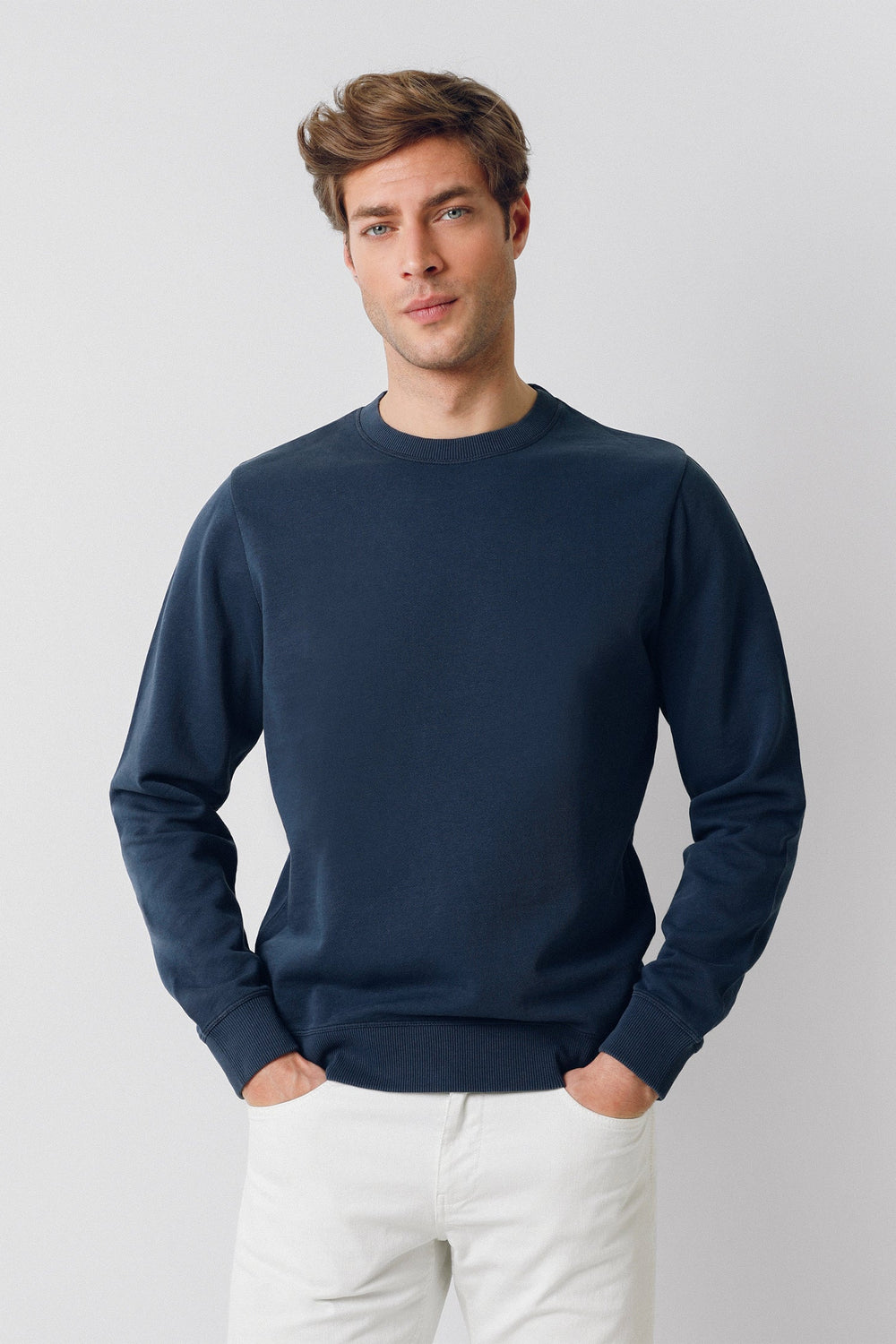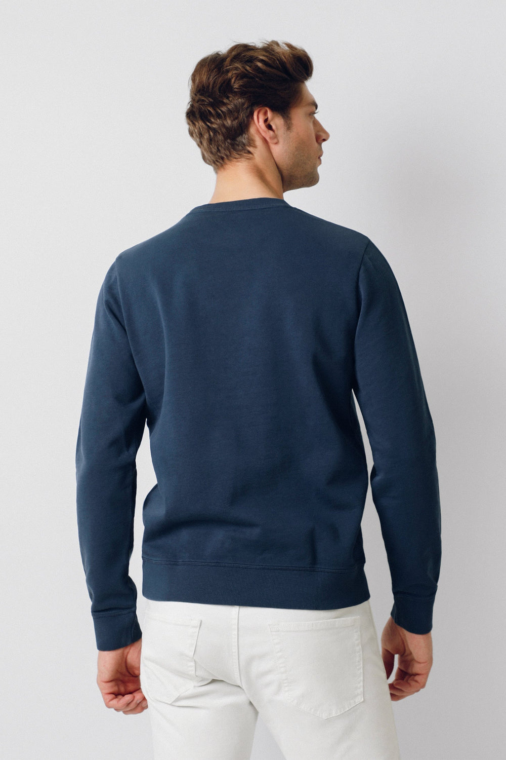 Sudadera confeccionada en tejido 100% algodón con lavado stone wash. Corte Regular Fit, cuello redondo y manga larga terminada en rib.
