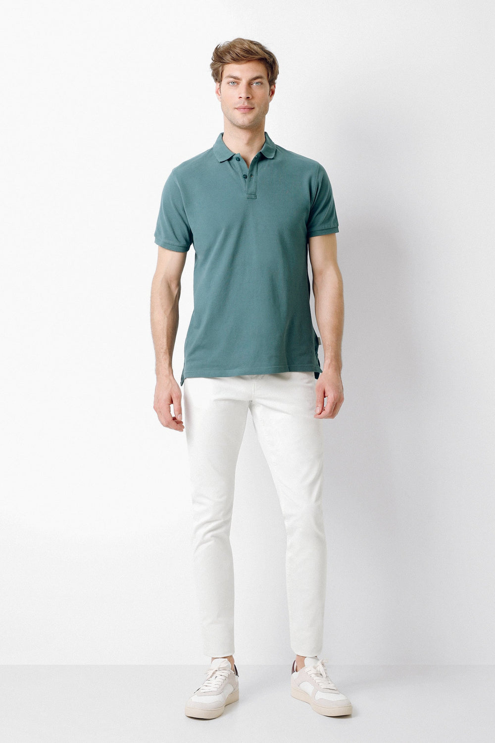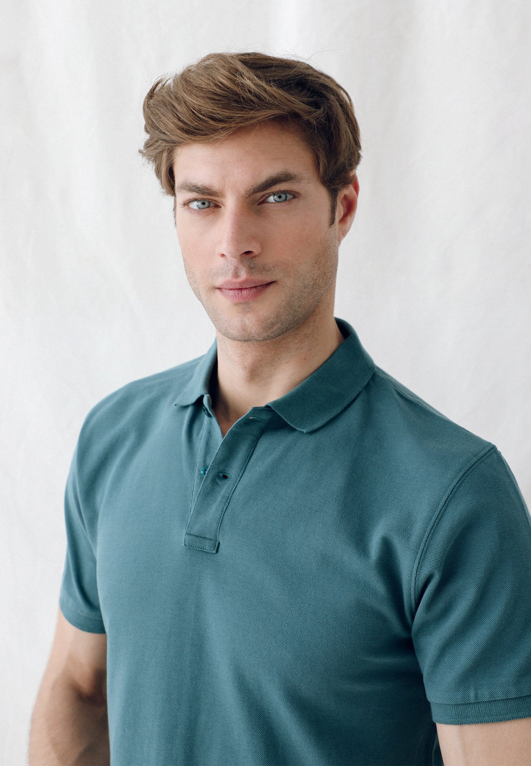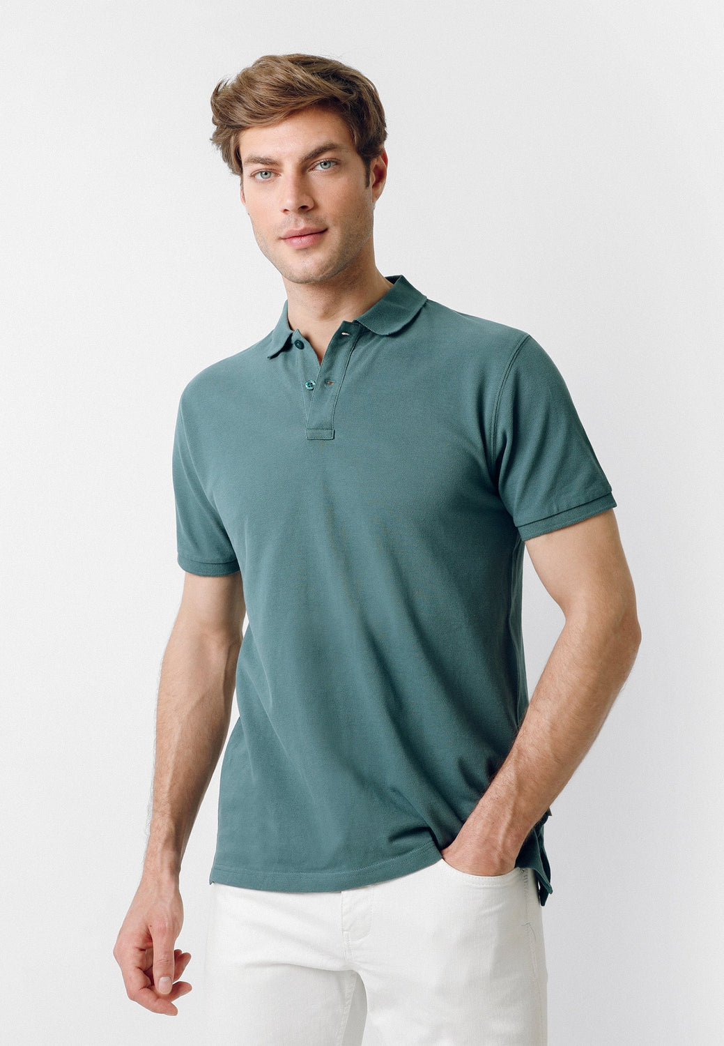 Polo confeccionado en tejido 100% algodón. Corte Regular Fit, cuello clásico y cierre con botones. Manga corta.