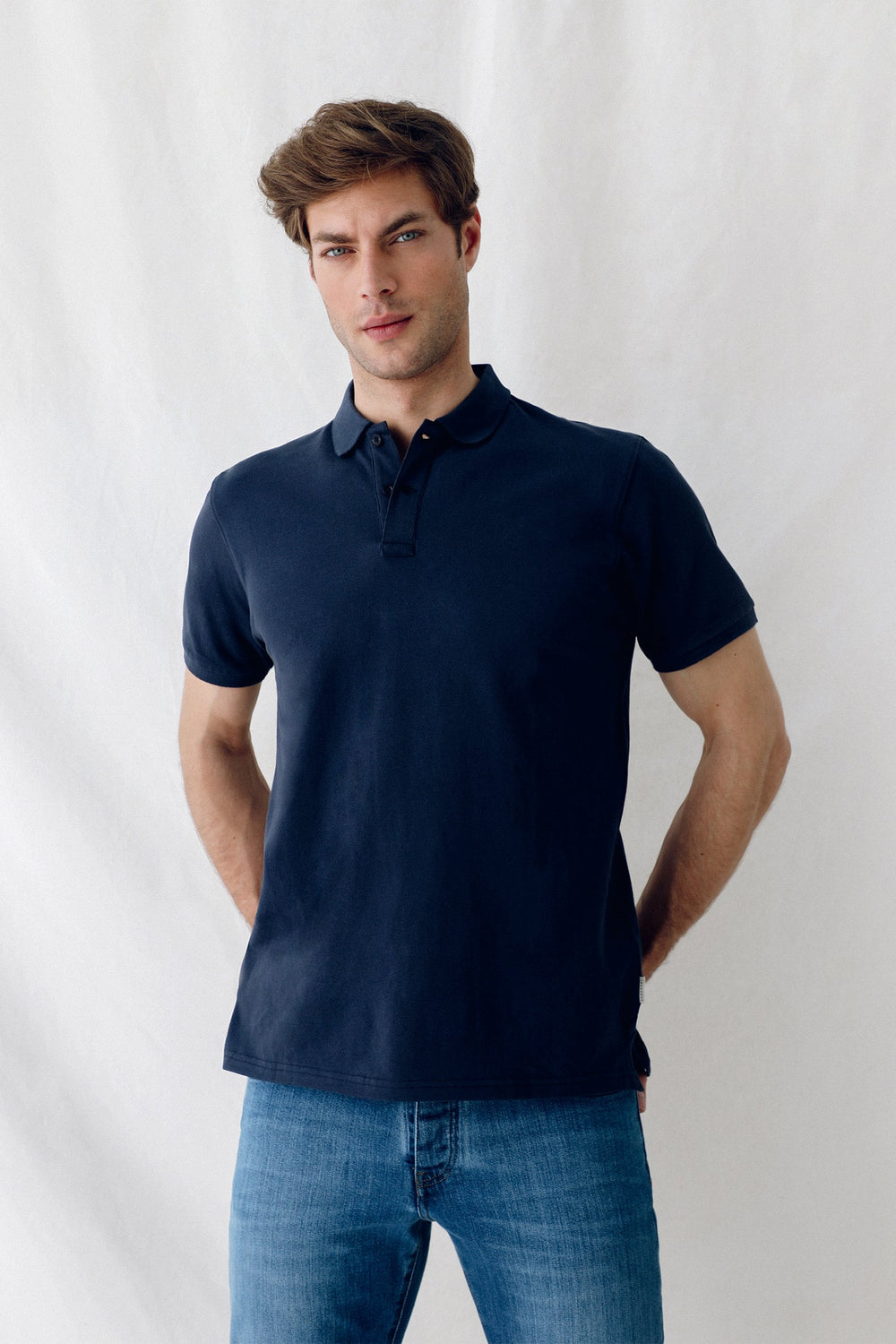 Polo confeccionado en tejido 100% algodón. Corte Regular Fit, cuello clásico y cierre con botones. Manga corta.