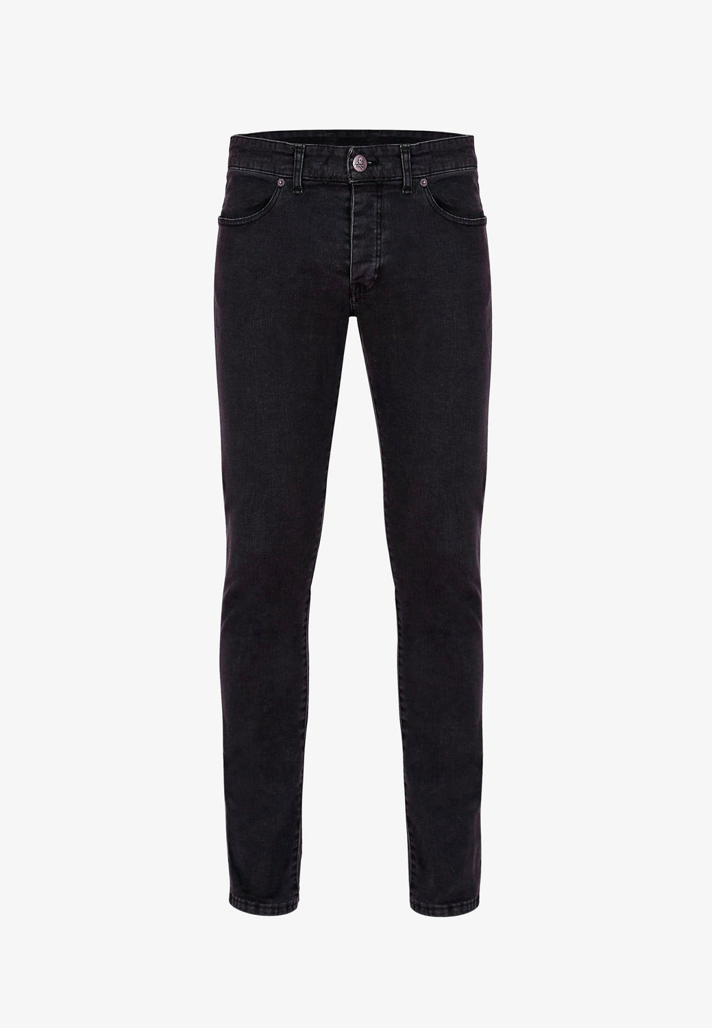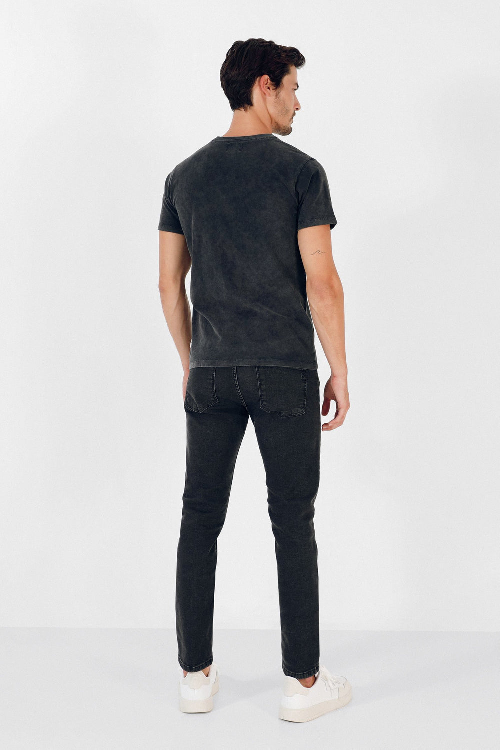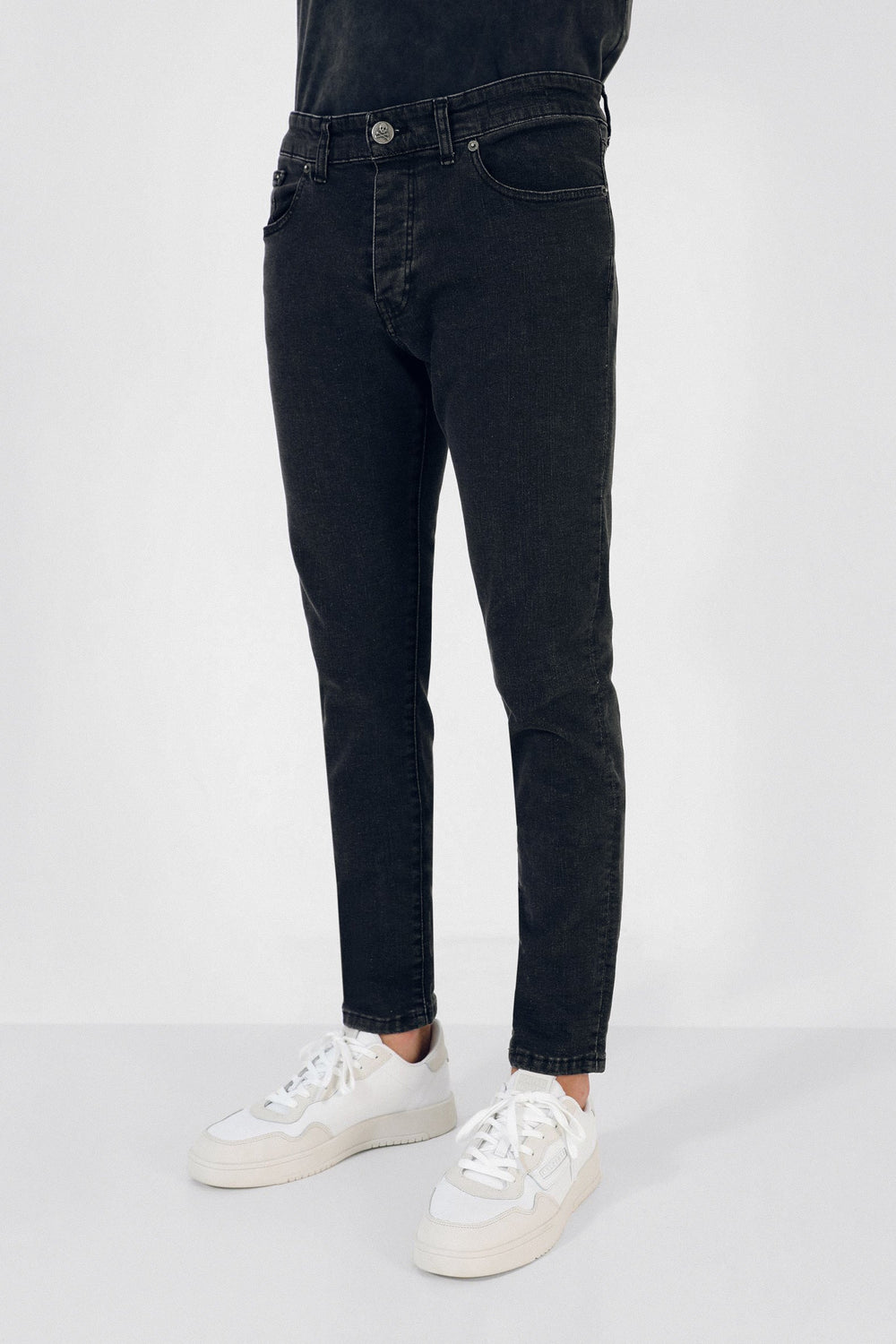 Jeans confeccionados en tejido denim. Corte Slim Fit skinny con tiro medio y cierre con botón y cremallera. Bolsillos delanteros y traseros. Tiene trabillas.