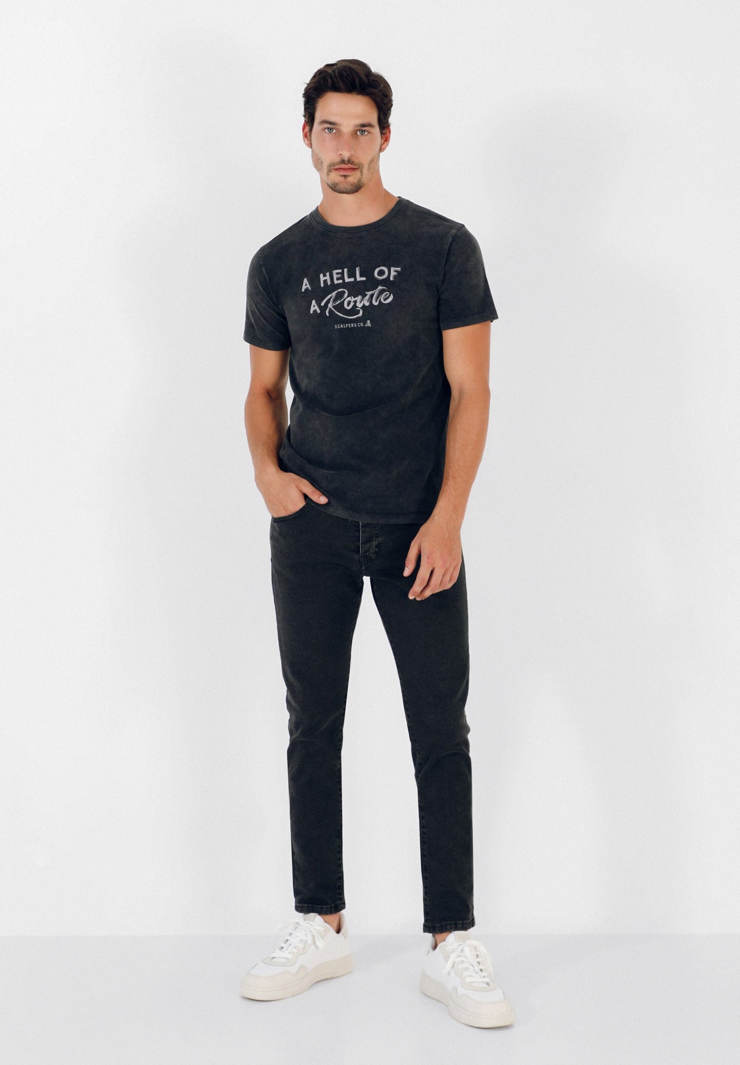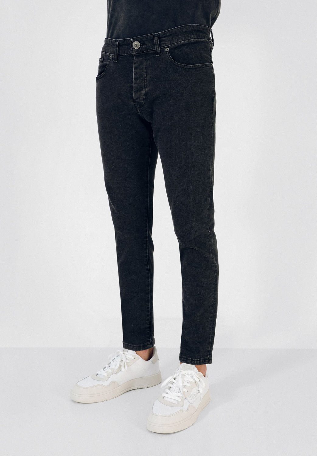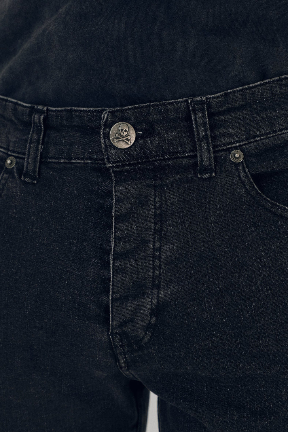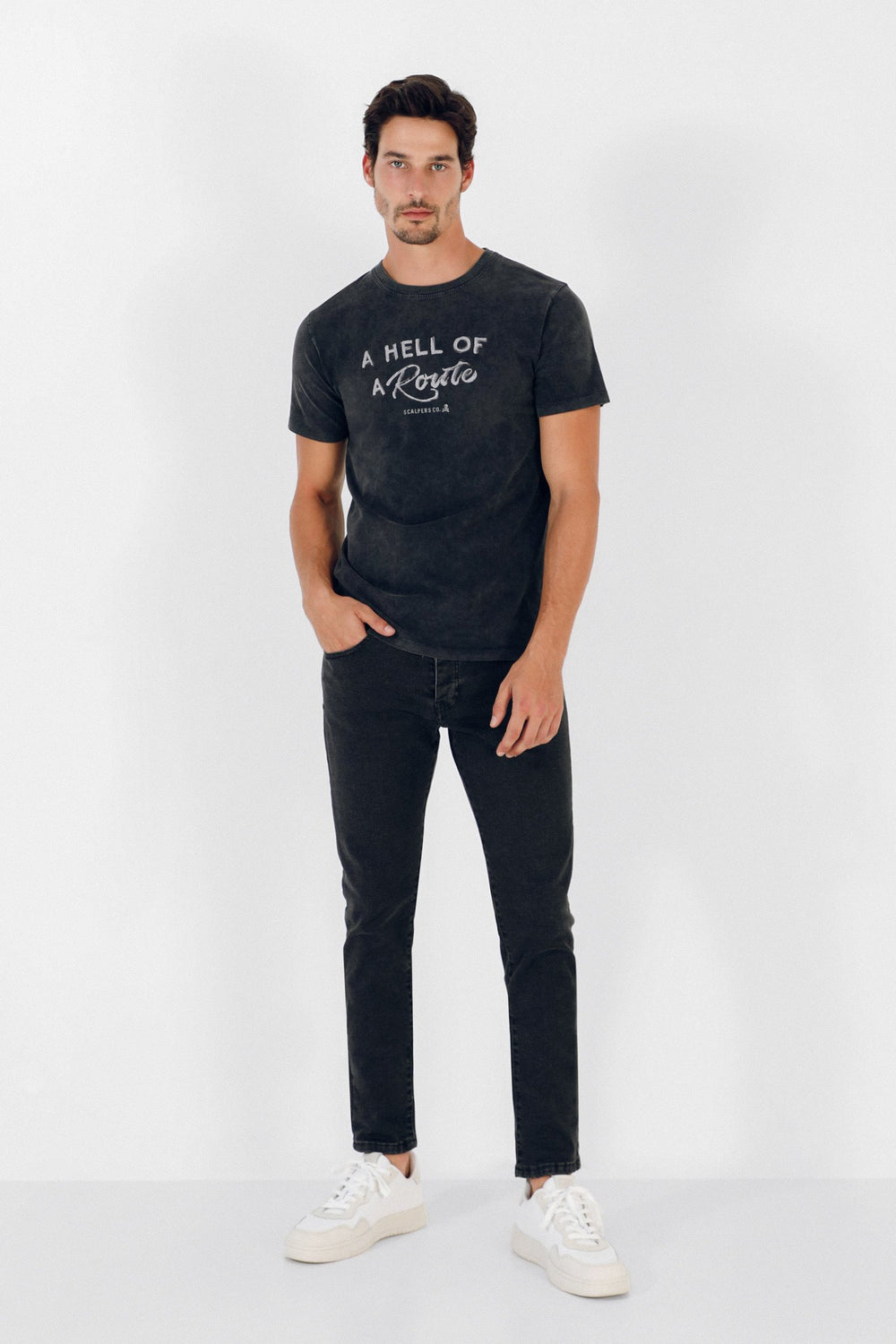 Jeans confeccionados en tejido denim. Corte Slim Fit skinny con tiro medio y cierre con botón y cremallera. Bolsillos delanteros y traseros. Tiene trabillas.