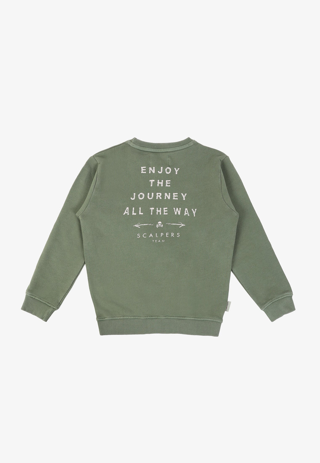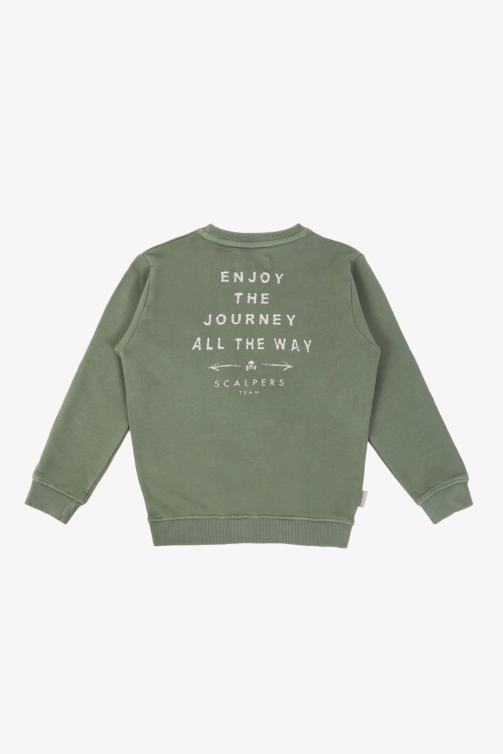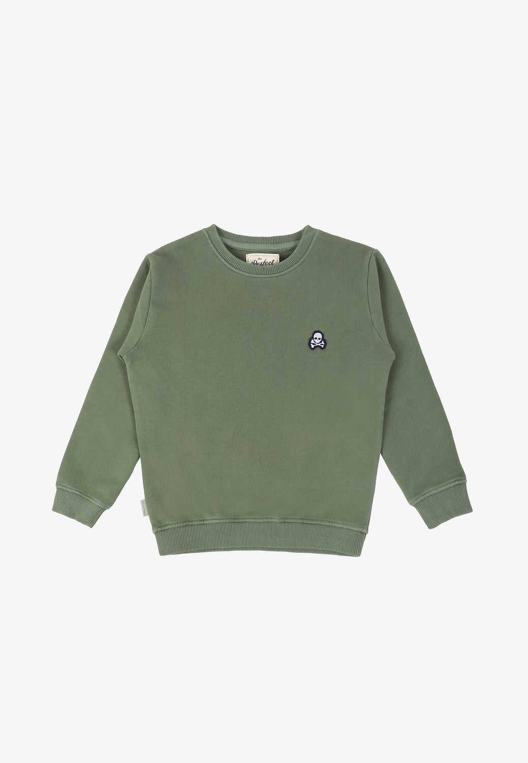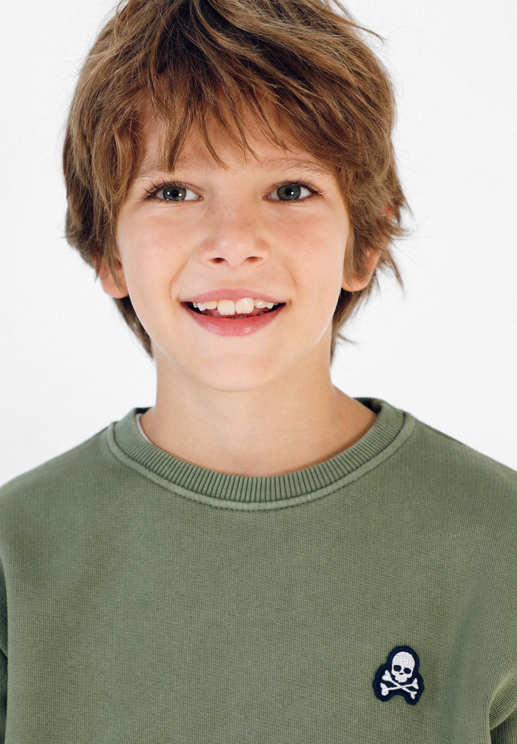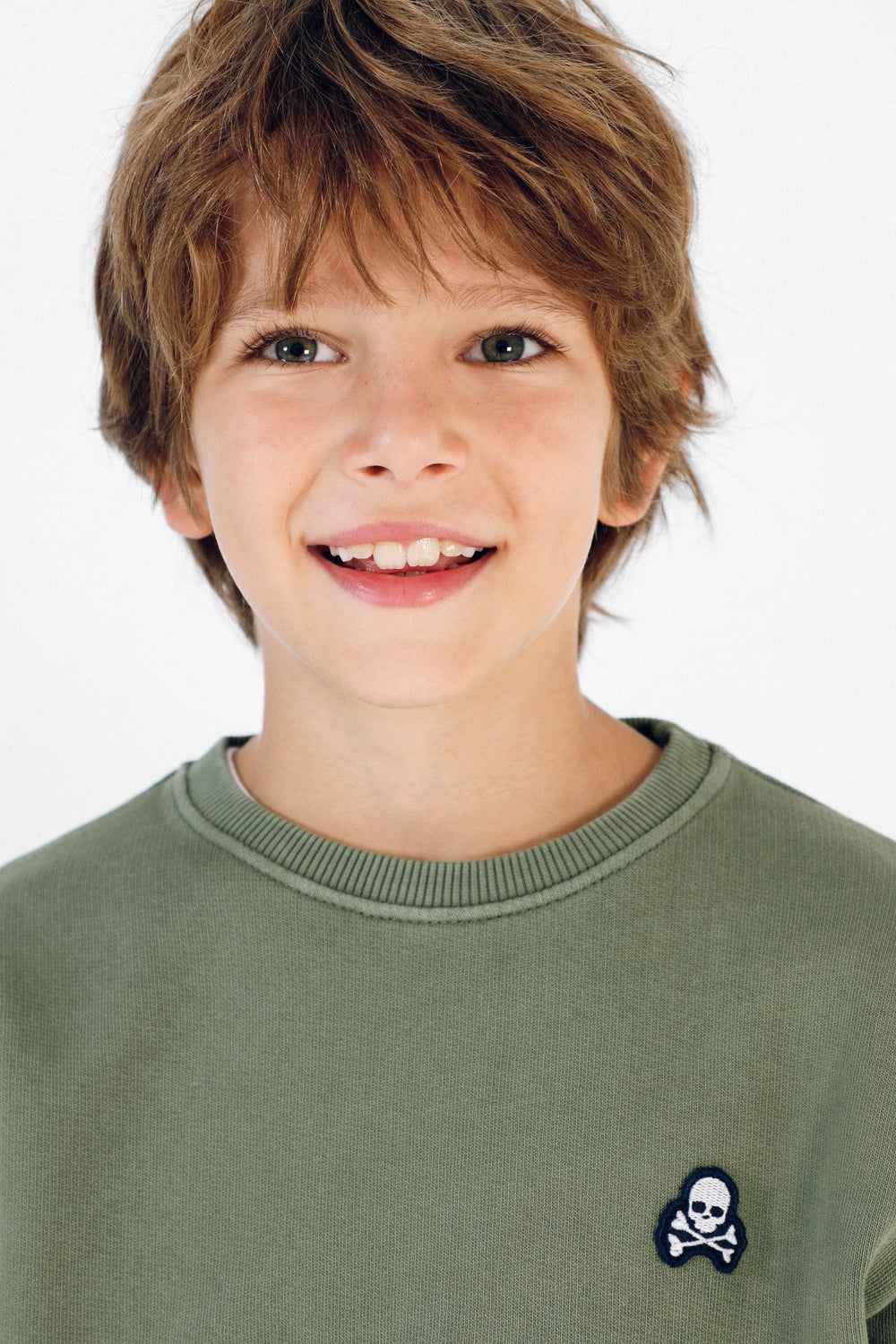 Sudadera confeccionada en tejido 100% algodón. Corte Regular Fit, cuello redondo y manga larga. Detalle de parche bordado de calavera en el pecho y print trasero.