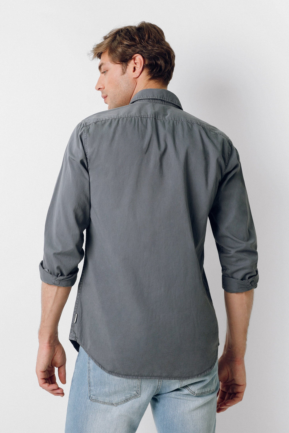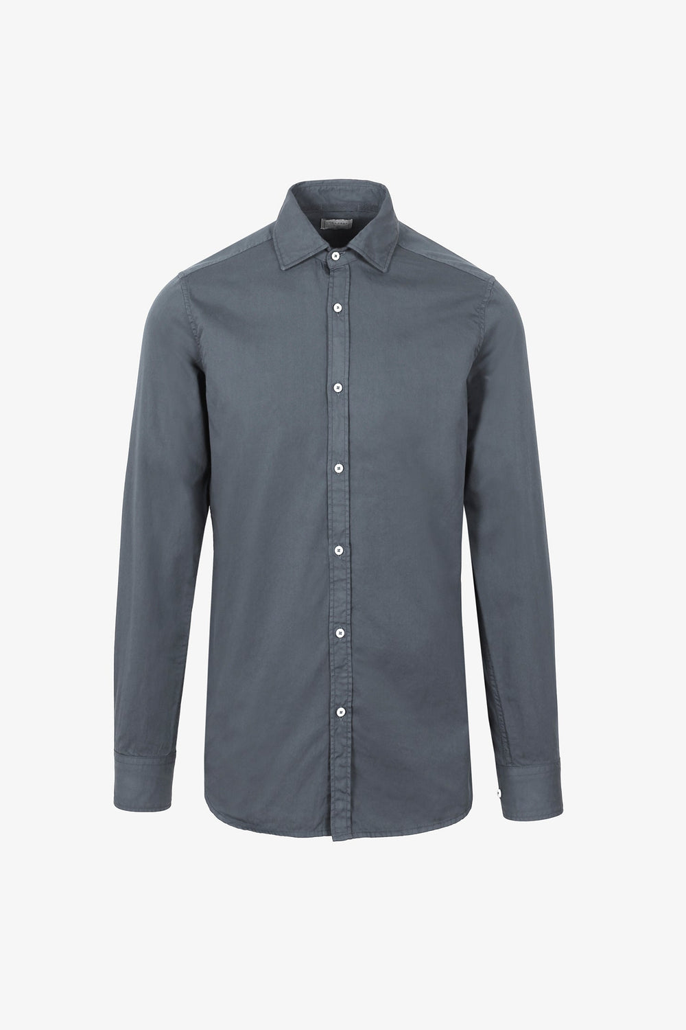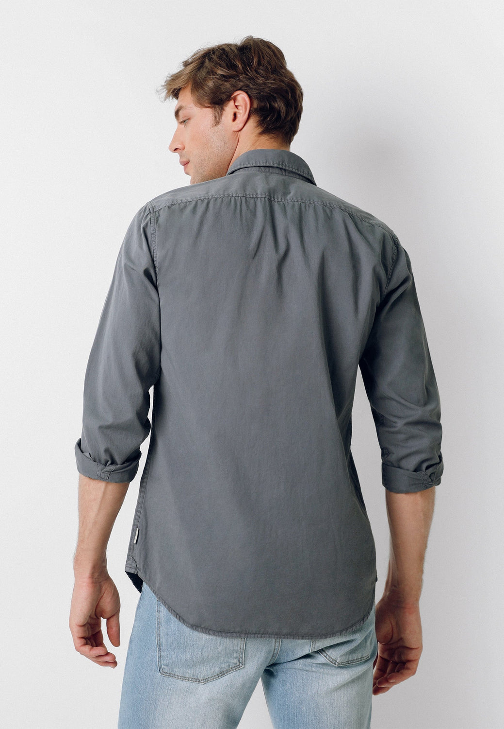 Camisa confeccionada en tejido 100% algodón. Corte Regular Fit, cuello italiano y cierre con botones. Manga larga terminada en puño simple y detalle de etiqueta lateral.