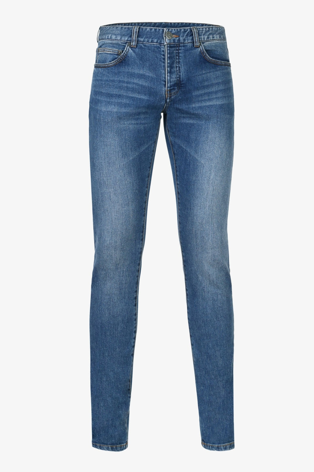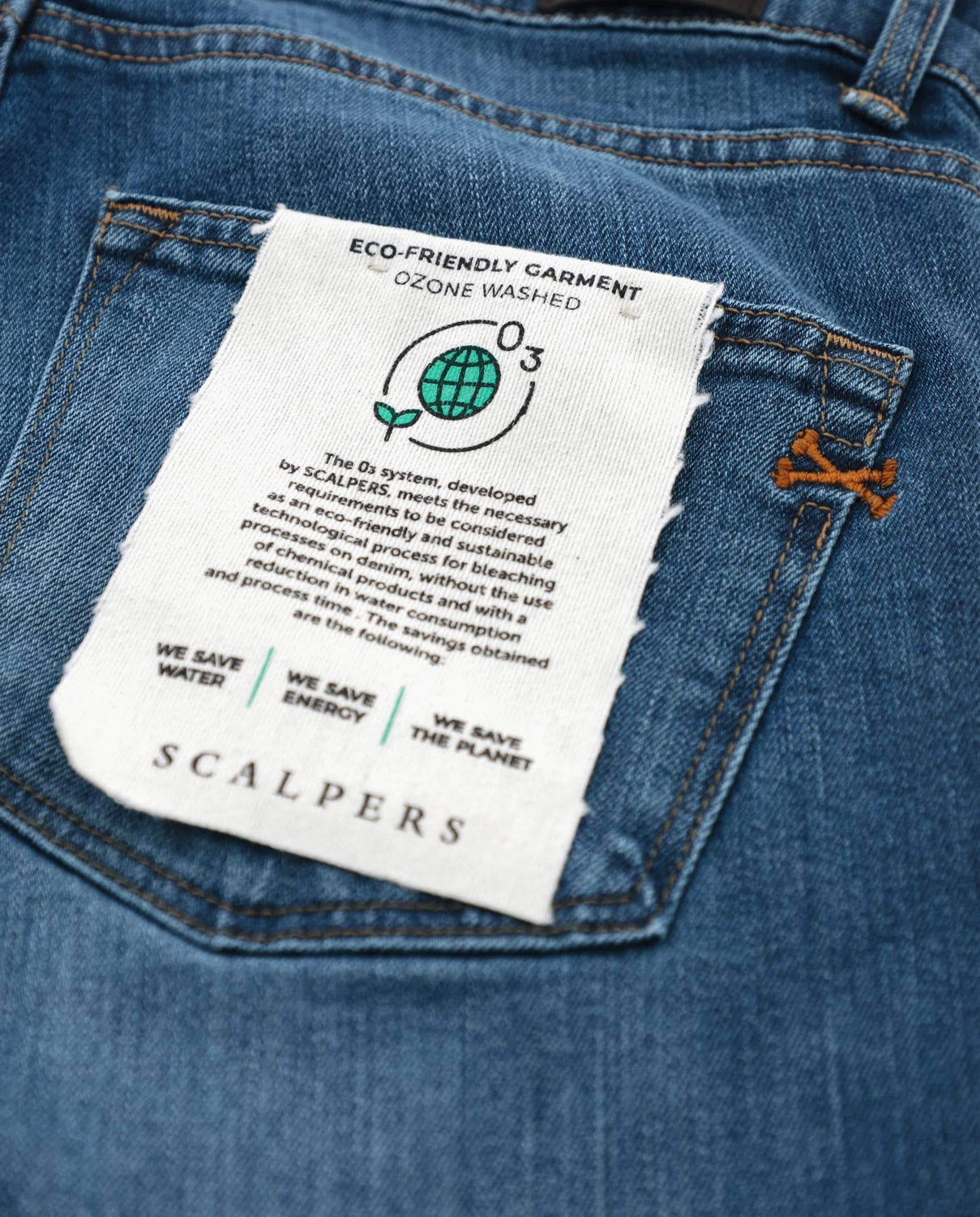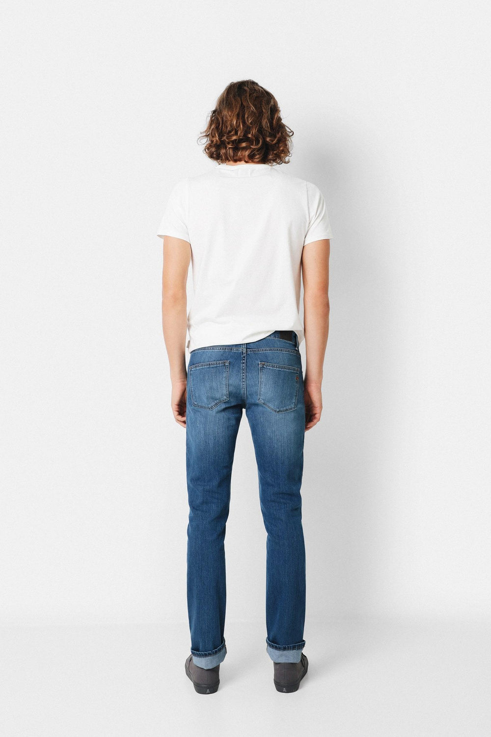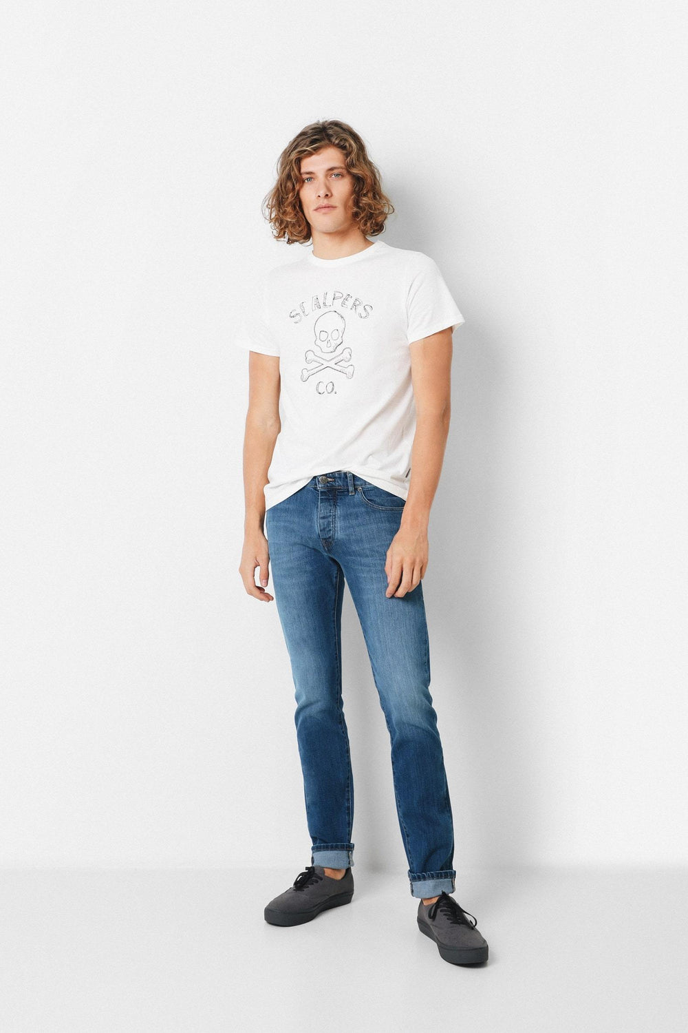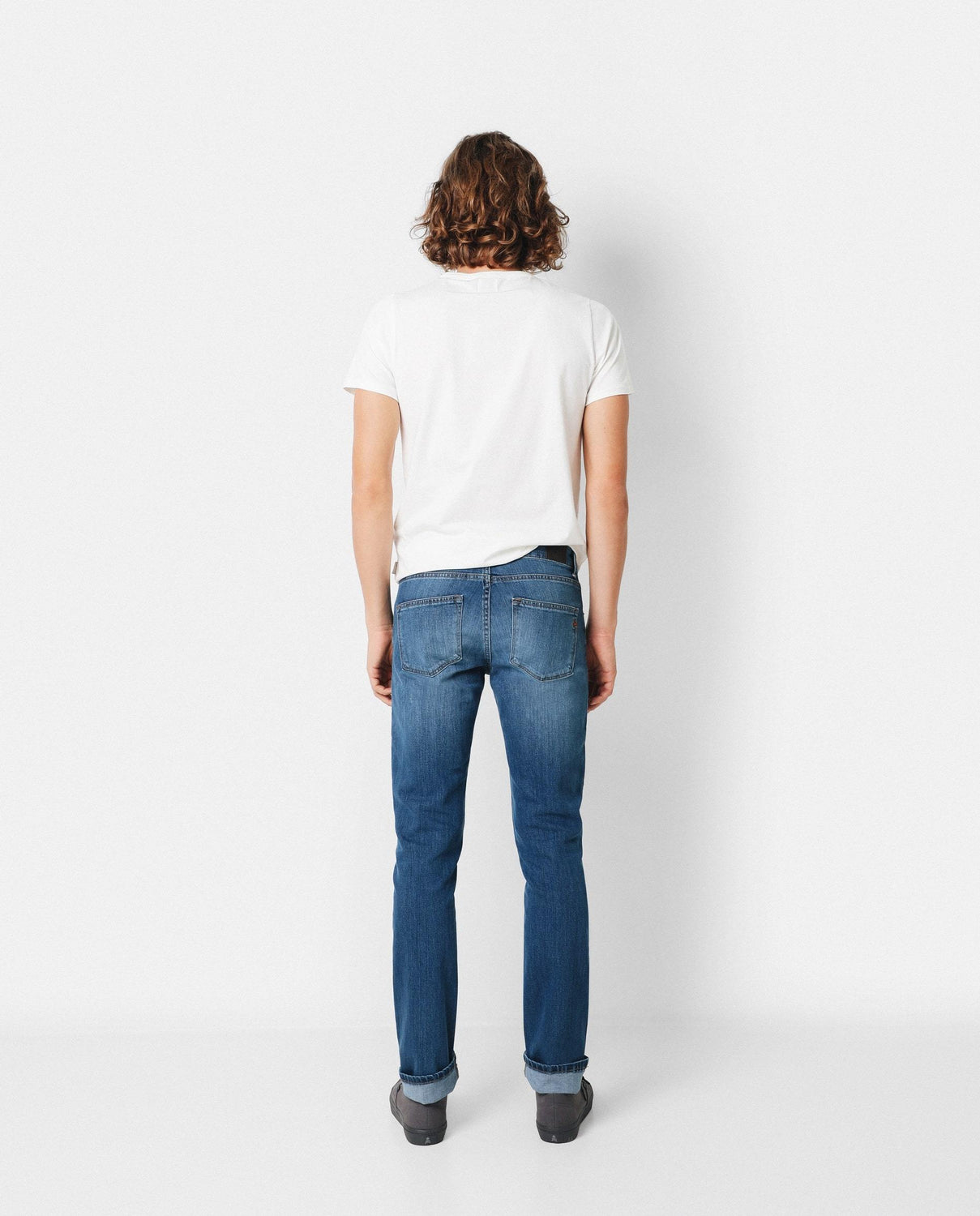 Pantalón vaquero efecto lavado. Corte Slim Fit, cierre con botones ocultos por tapeta y cinco bolsillos. Tiene trabillas. Detalle de bordado en el bolsillo trasero.