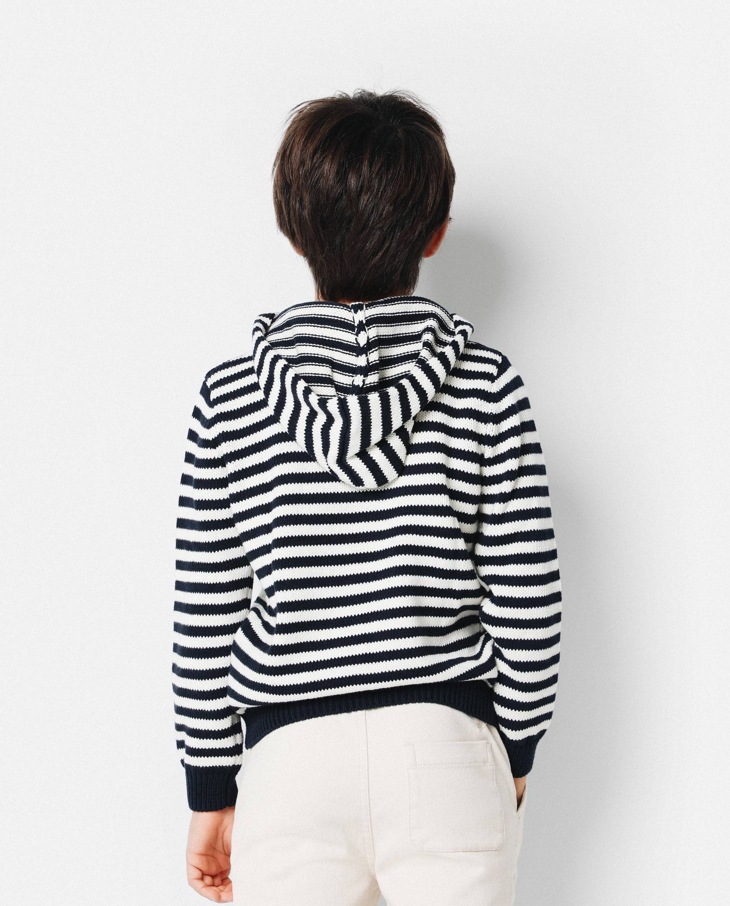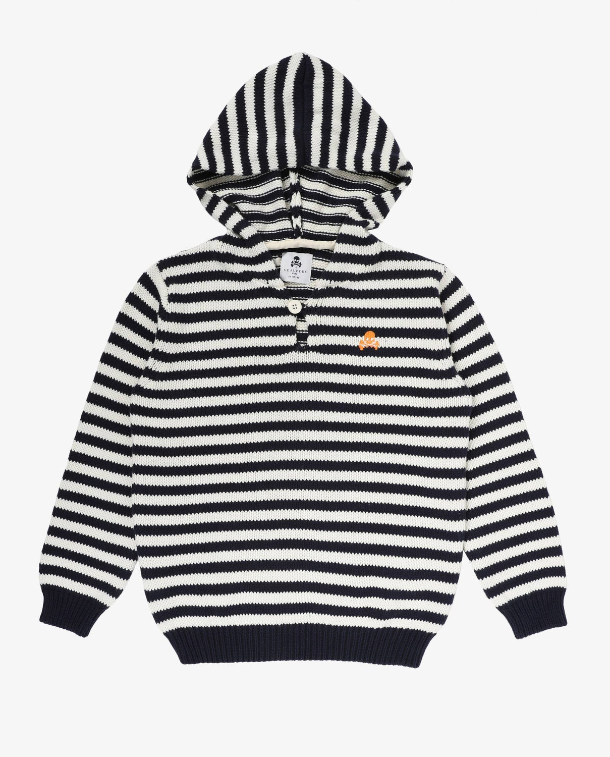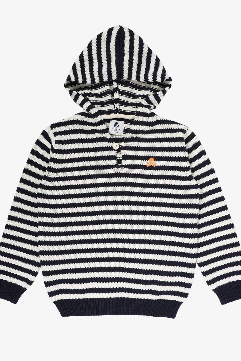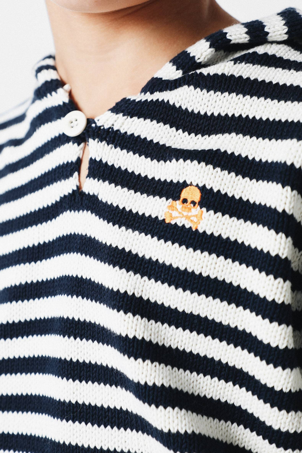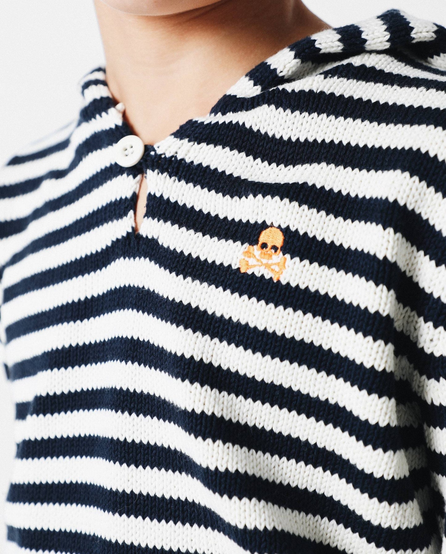 Jersey de rayas de punto. Corte Regular Fit, cuello con capucha y abertura frontal y cierre con botón. Manga larga terminada en puño y detalle de bordado de calavera en el pecho a contraste.