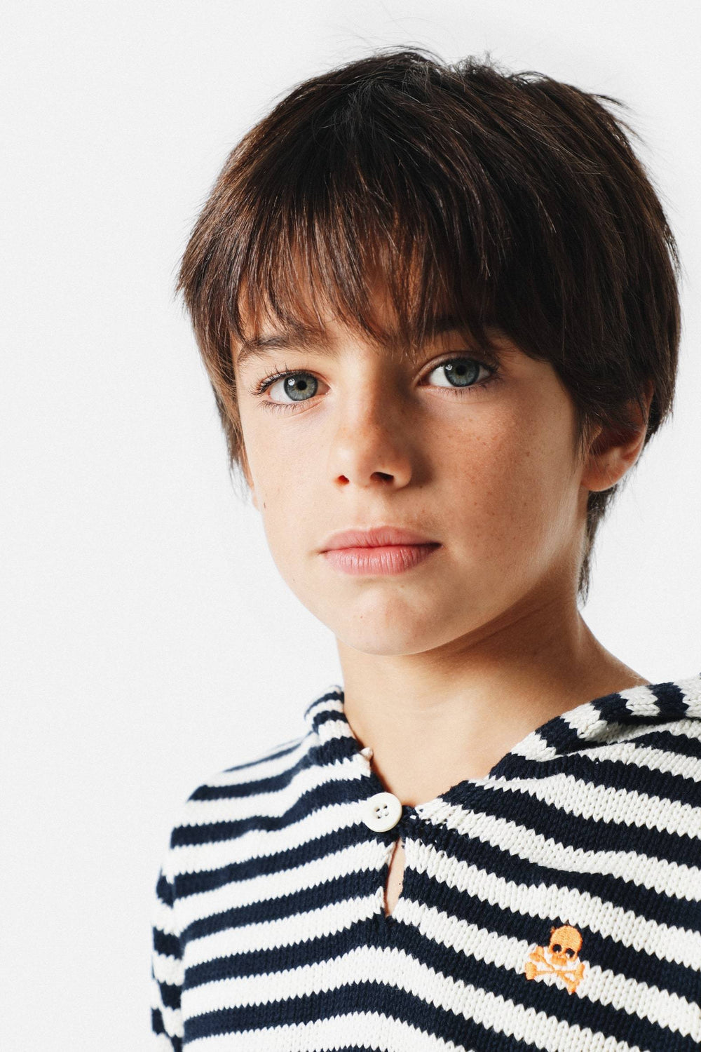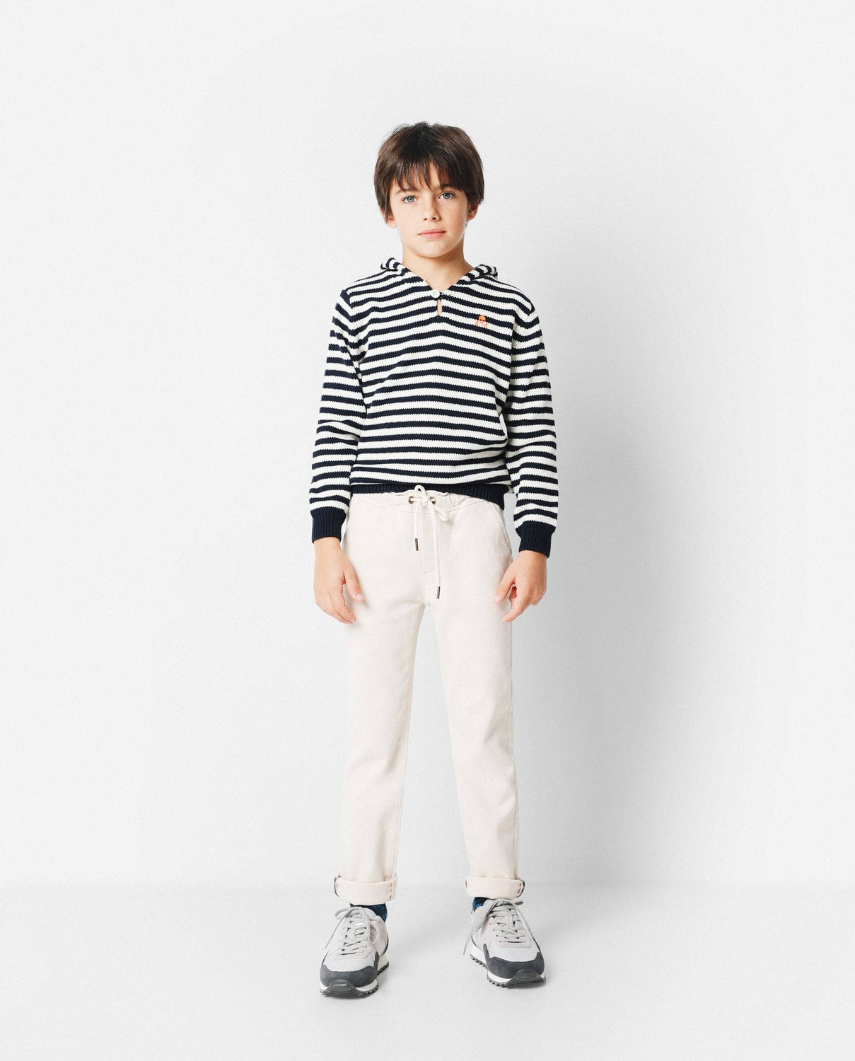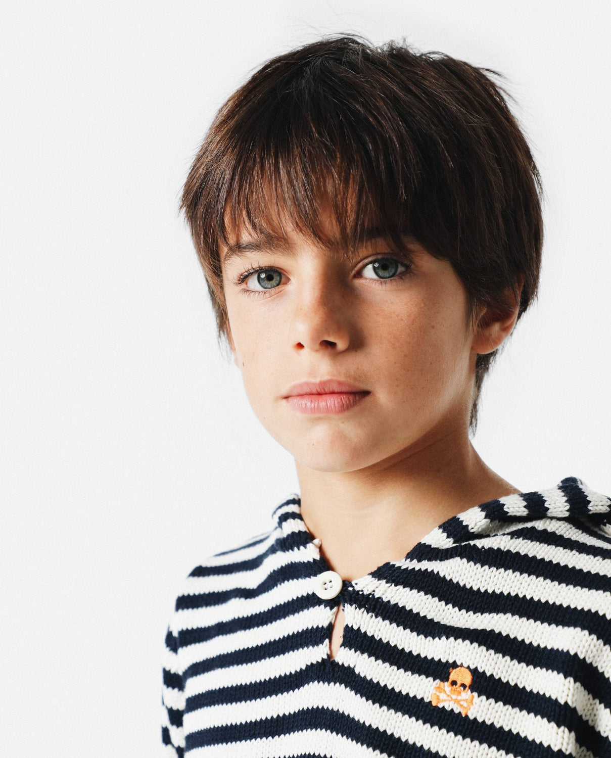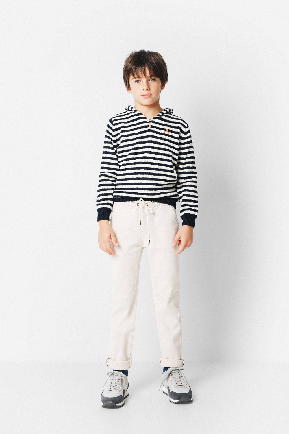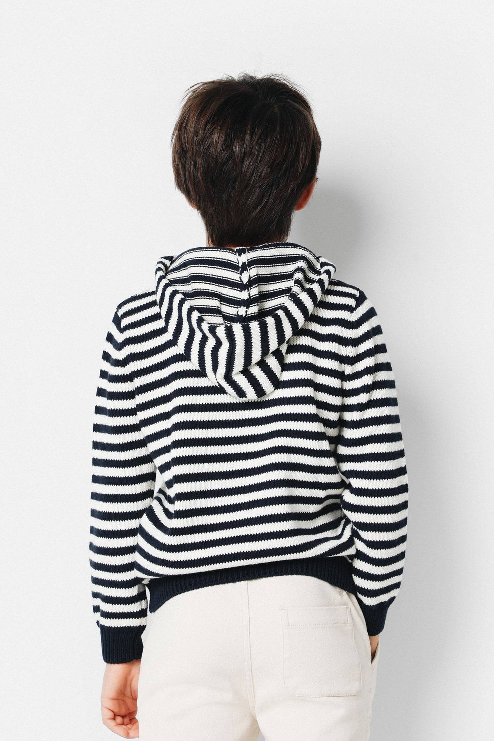 Jersey de rayas de punto. Corte Regular Fit, cuello con capucha y abertura frontal y cierre con botón. Manga larga terminada en puño y detalle de bordado de calavera en el pecho a contraste.