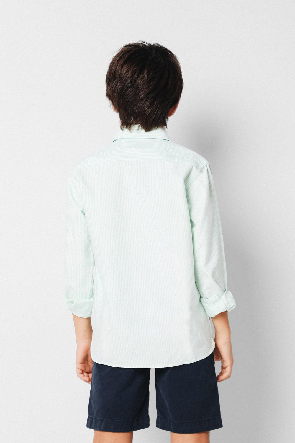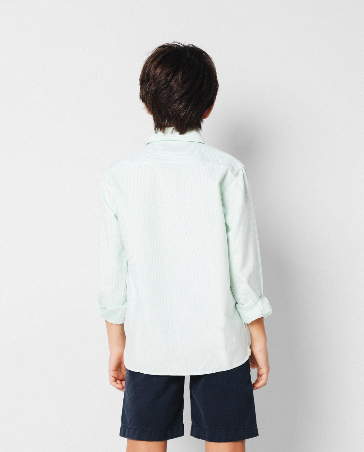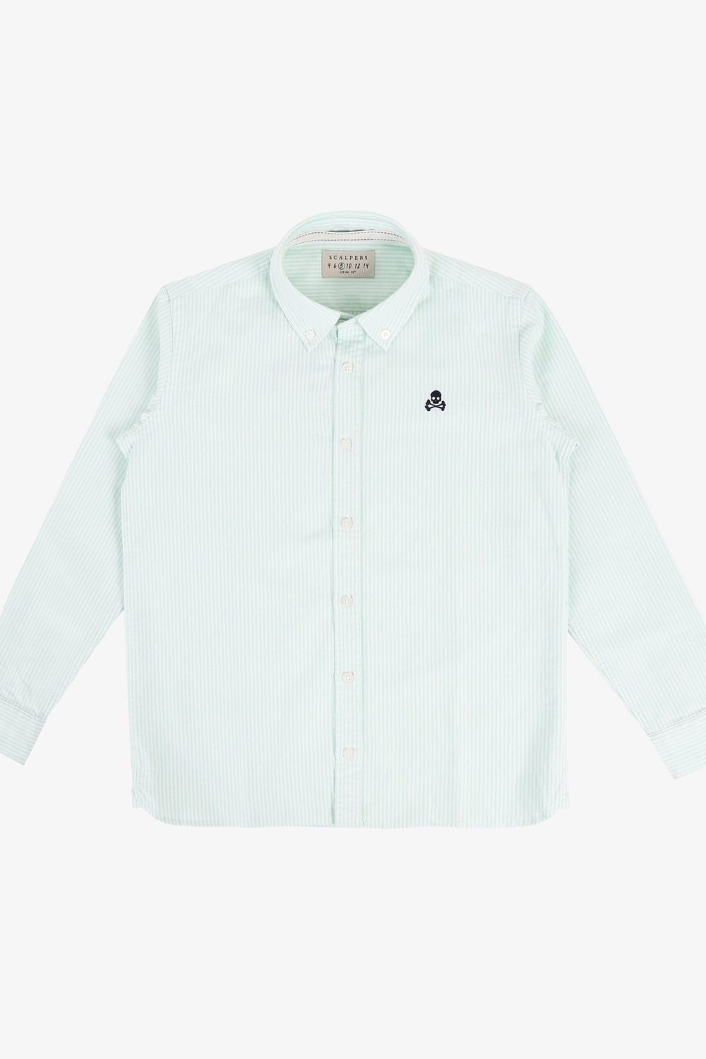 Camisa oxford de rayas confeccionada en tejido 100% algodón. Corte Regular Fit, cuello con botones y cierre con botones. Manga larga terminada en puño y bordado de calavera a contraste en el pecho.