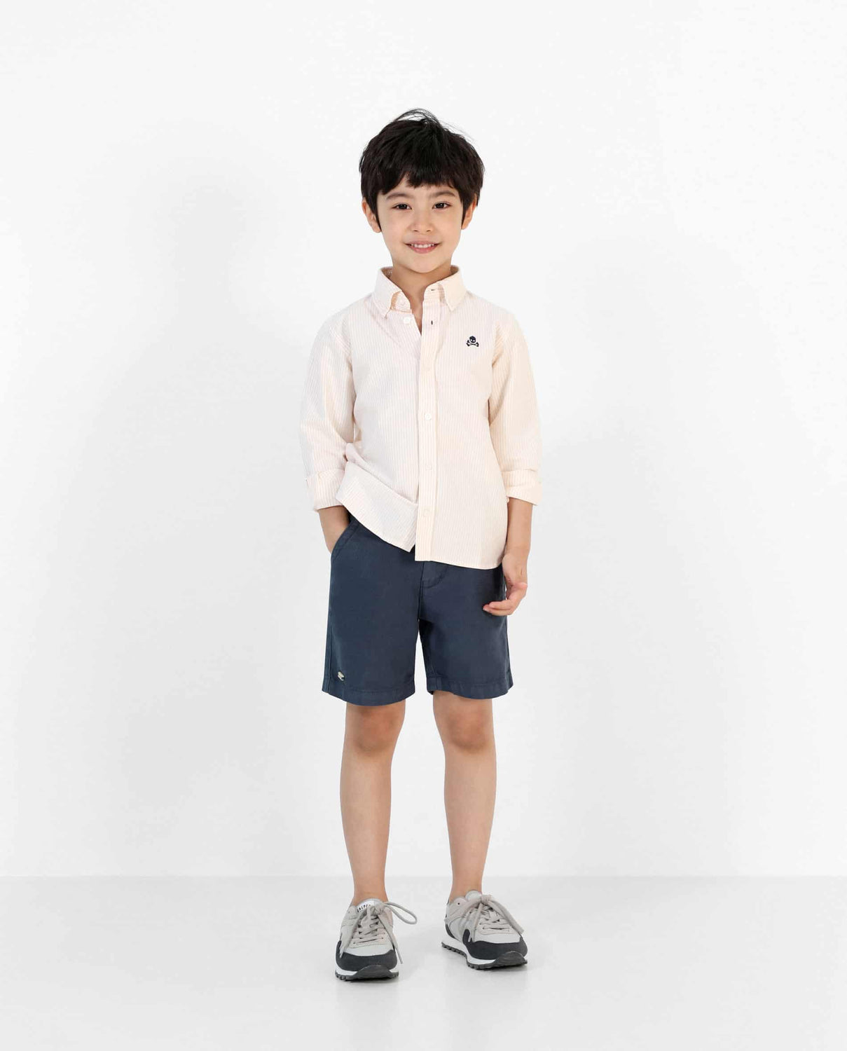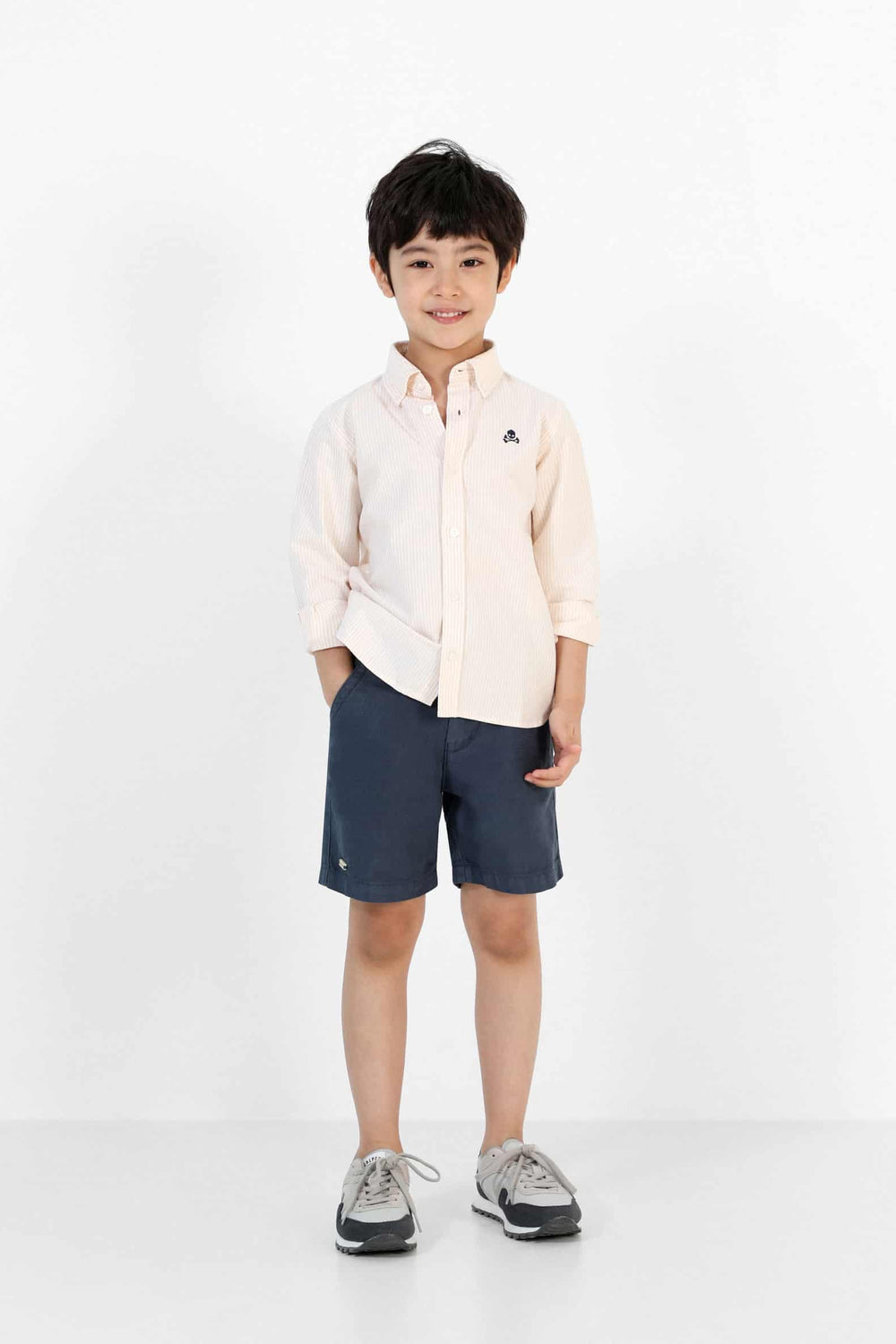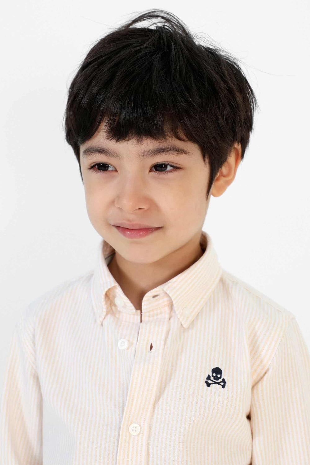 Camisa oxford de rayas confeccionada en tejido 100% algodón. Corte Regular Fit, cuello con botones y cierre con botones. Manga larga terminada en puño y bordado de calavera a contraste en el pecho.