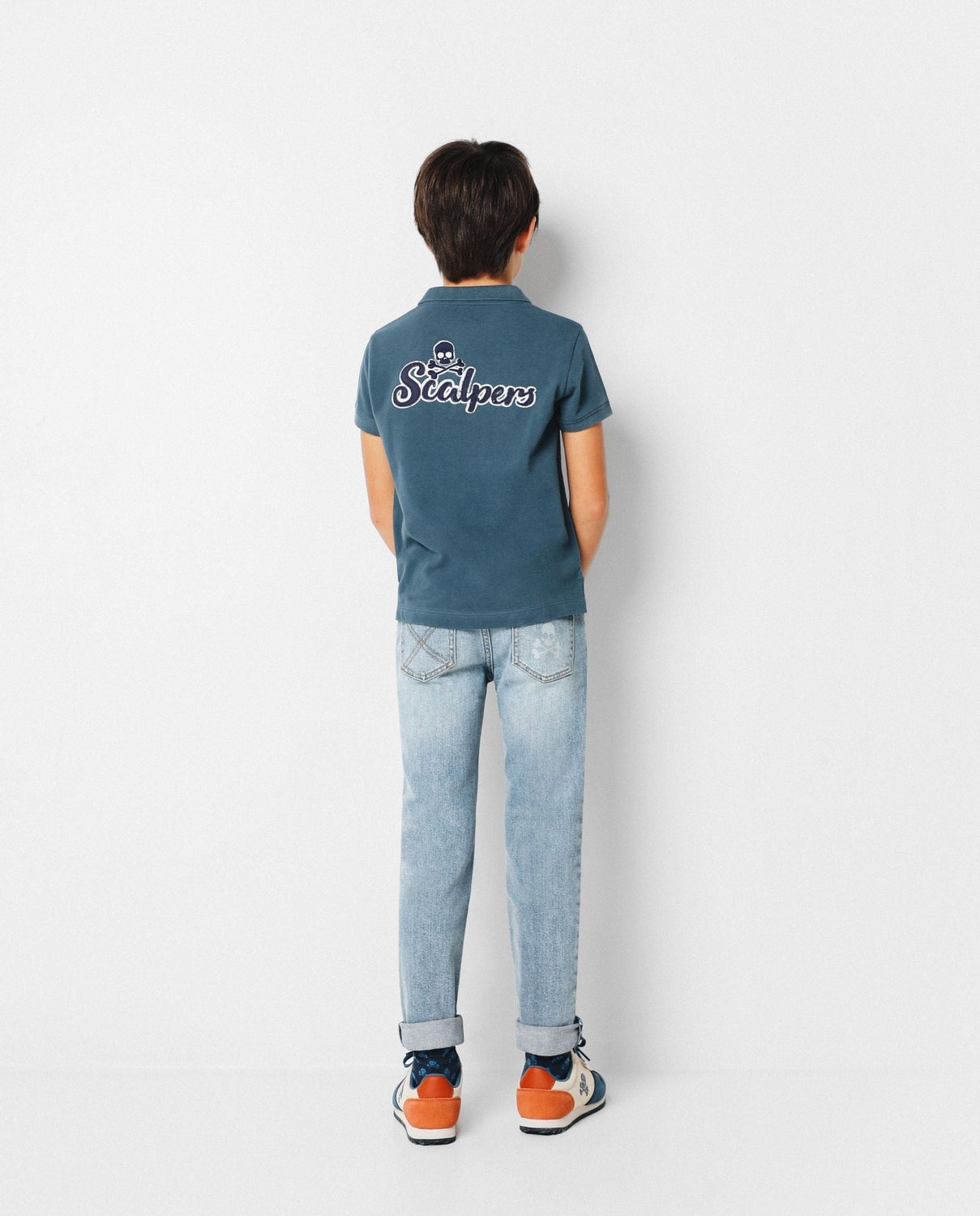 Pantalón vaquero. Corte Slim Fit con cintura ajustable, cierre con botón y cremallera y bolsillos delanteros y traseros. Detalle de bordado de Scalpers delantero y calavera en print trasero.