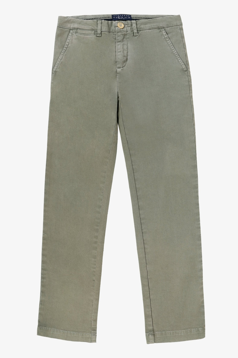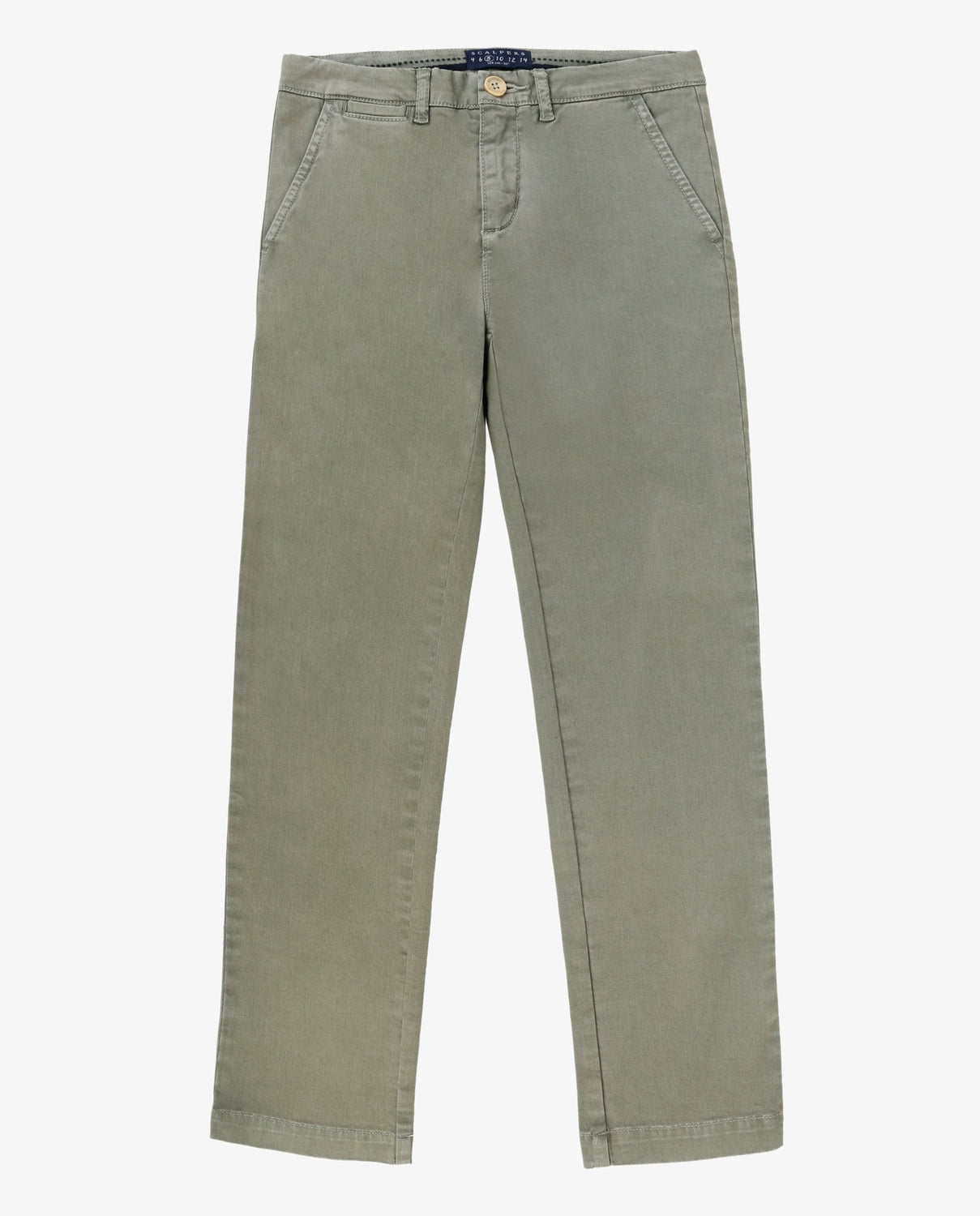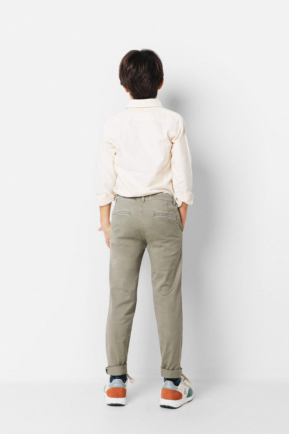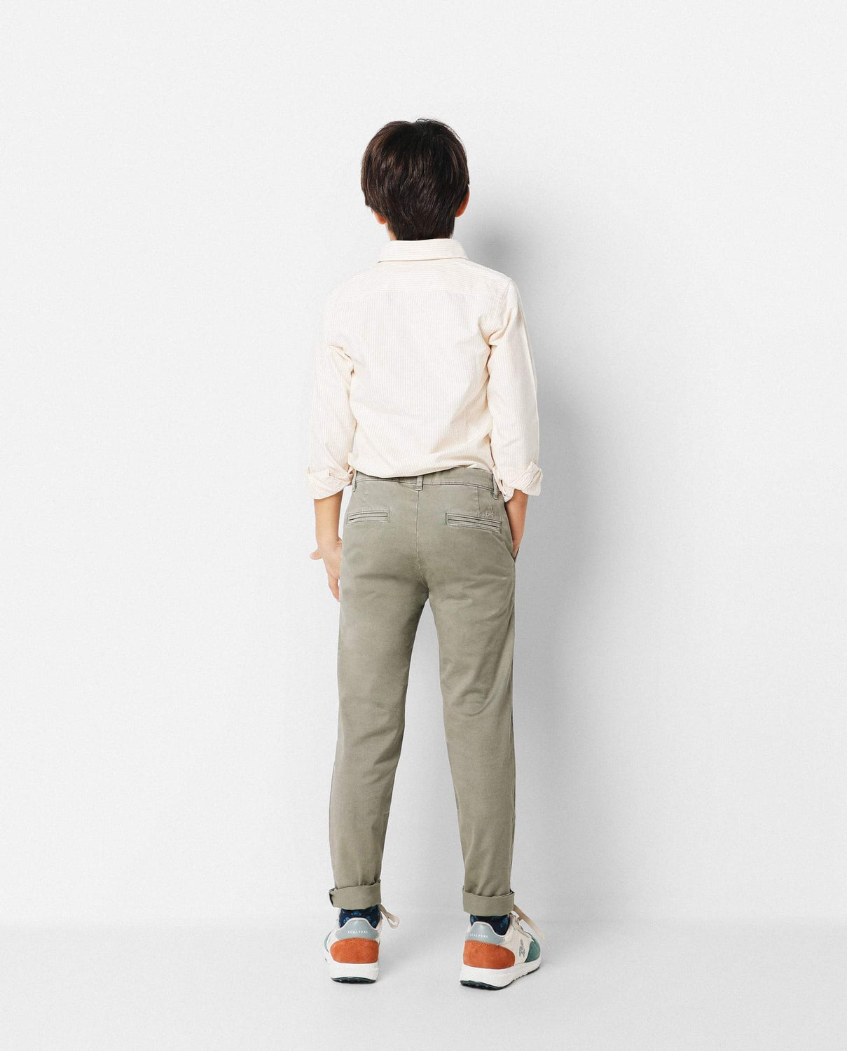 Pantalón chino confeccionado en tejido de algodón. Corte Regular Fit con cinturilla con ajustadores, cierre con botón y cremallera y bolsillos. Detalle de logo bordado en la parte trasera.