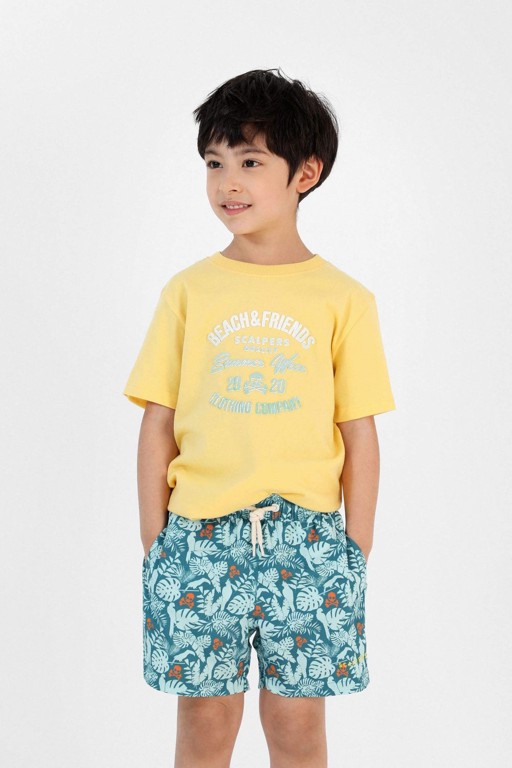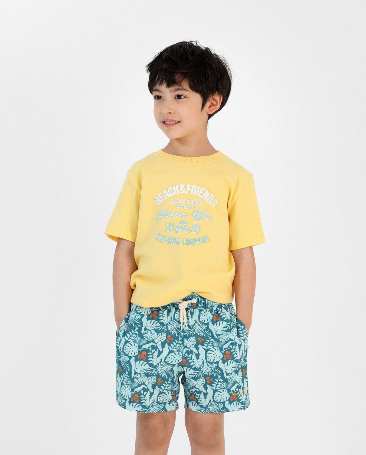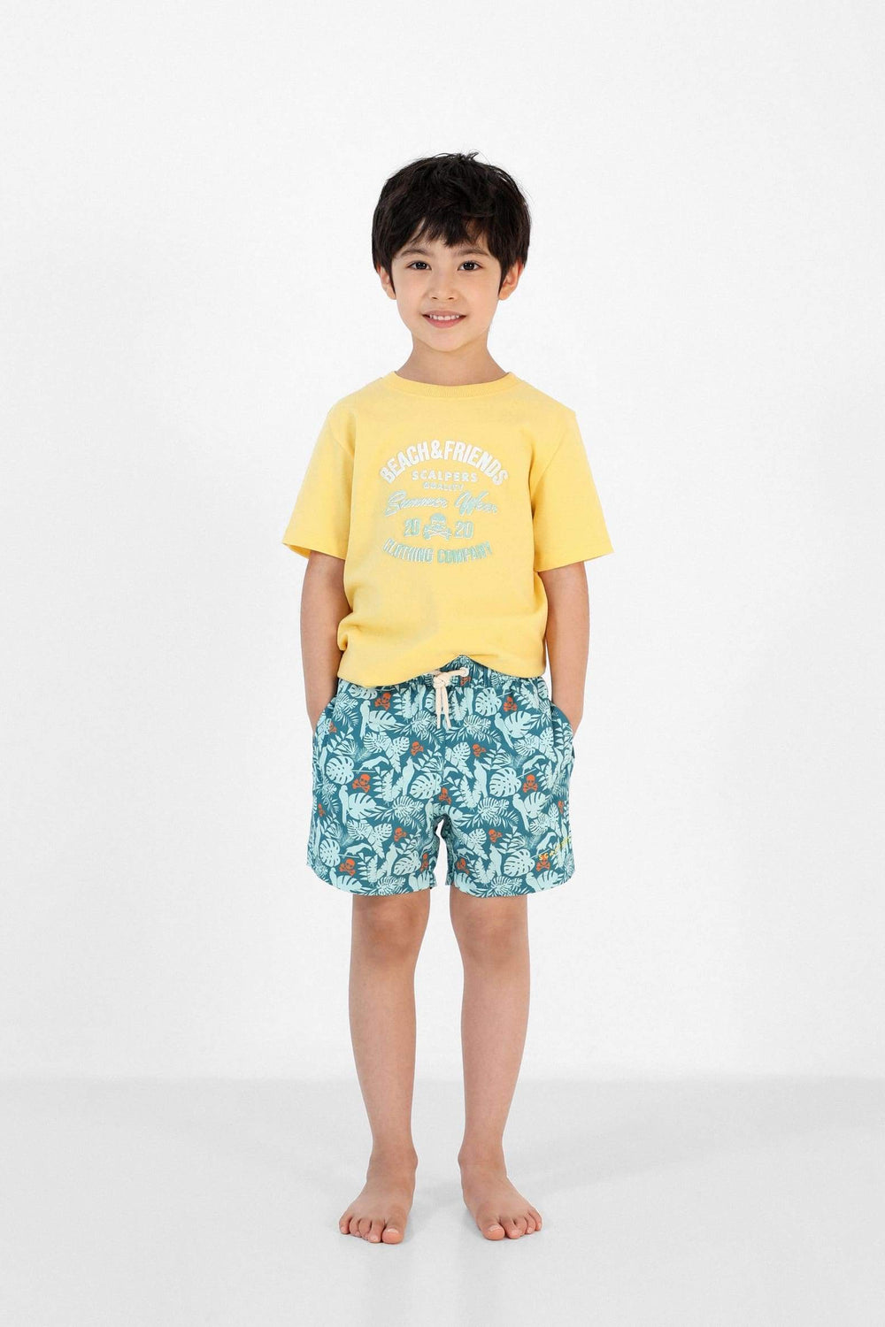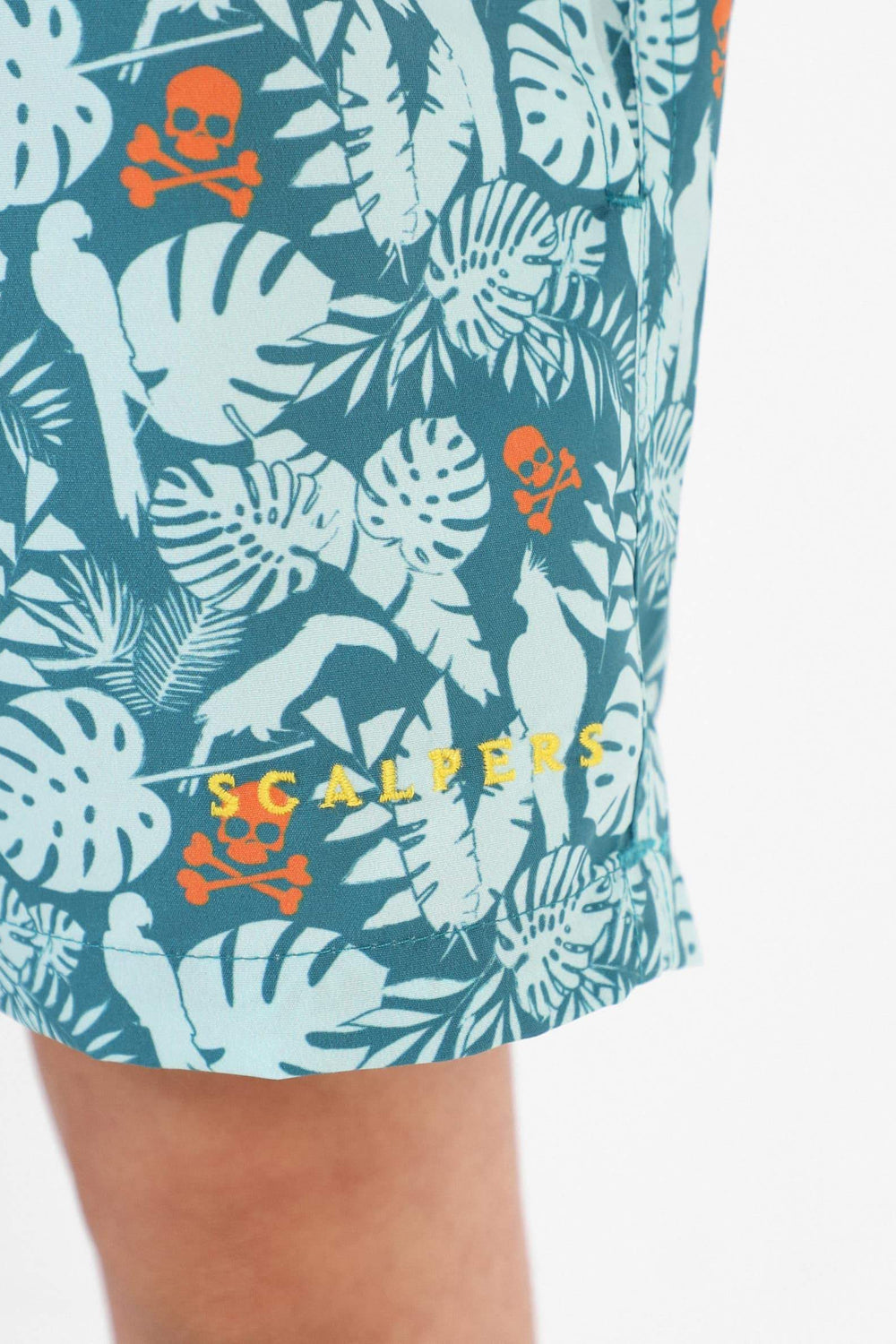 Bañador con estampado tropical confeccionado en tejido de secado rápido. Corte Regular Fit, cinturilla elástica ajustable con cordones. Bolsillos laterales y trasero con velcro. Detalle de bordado.