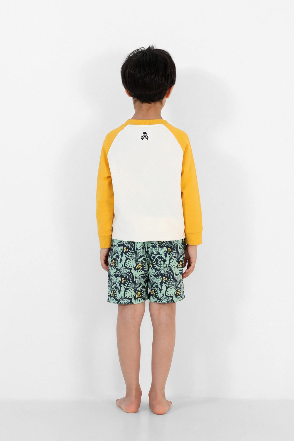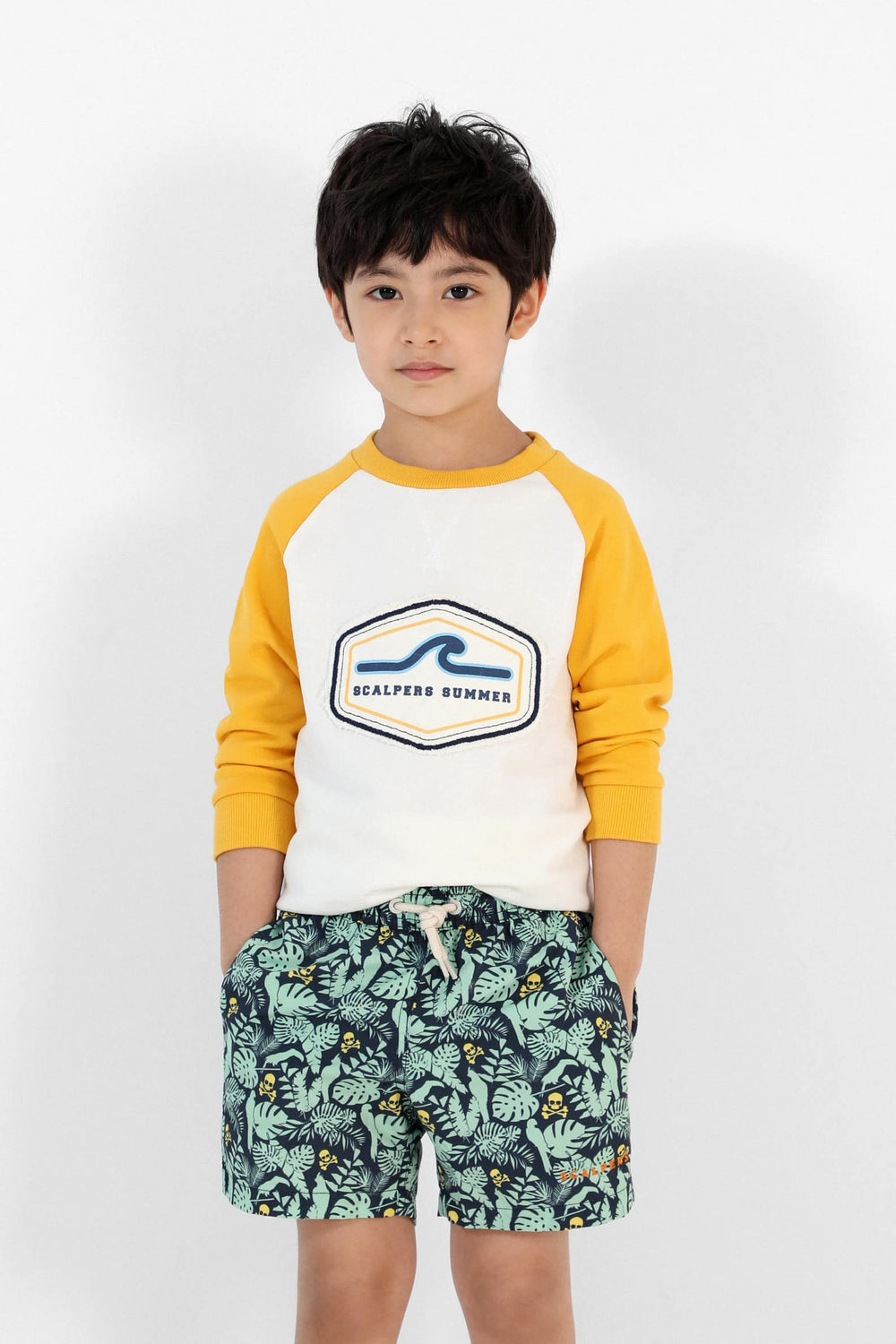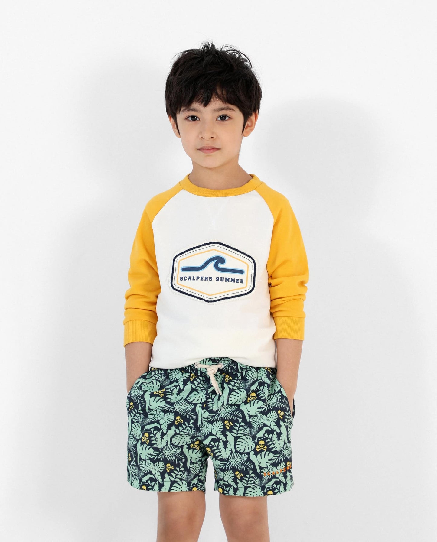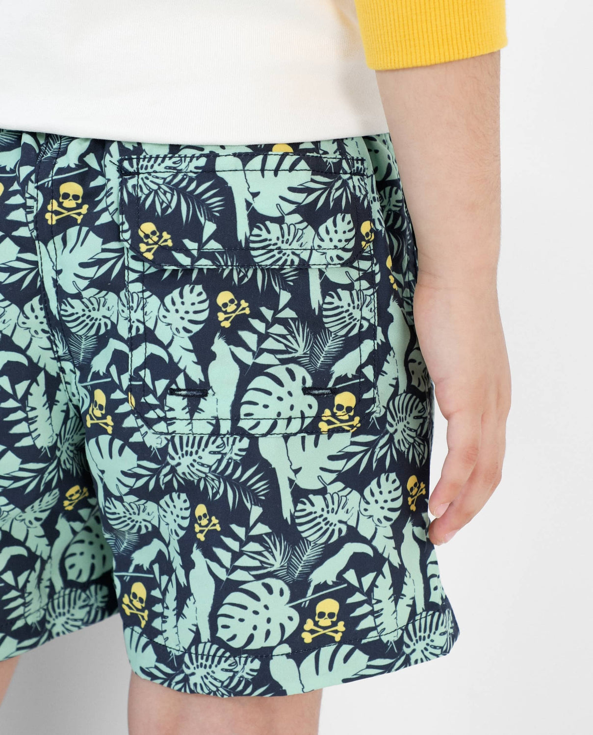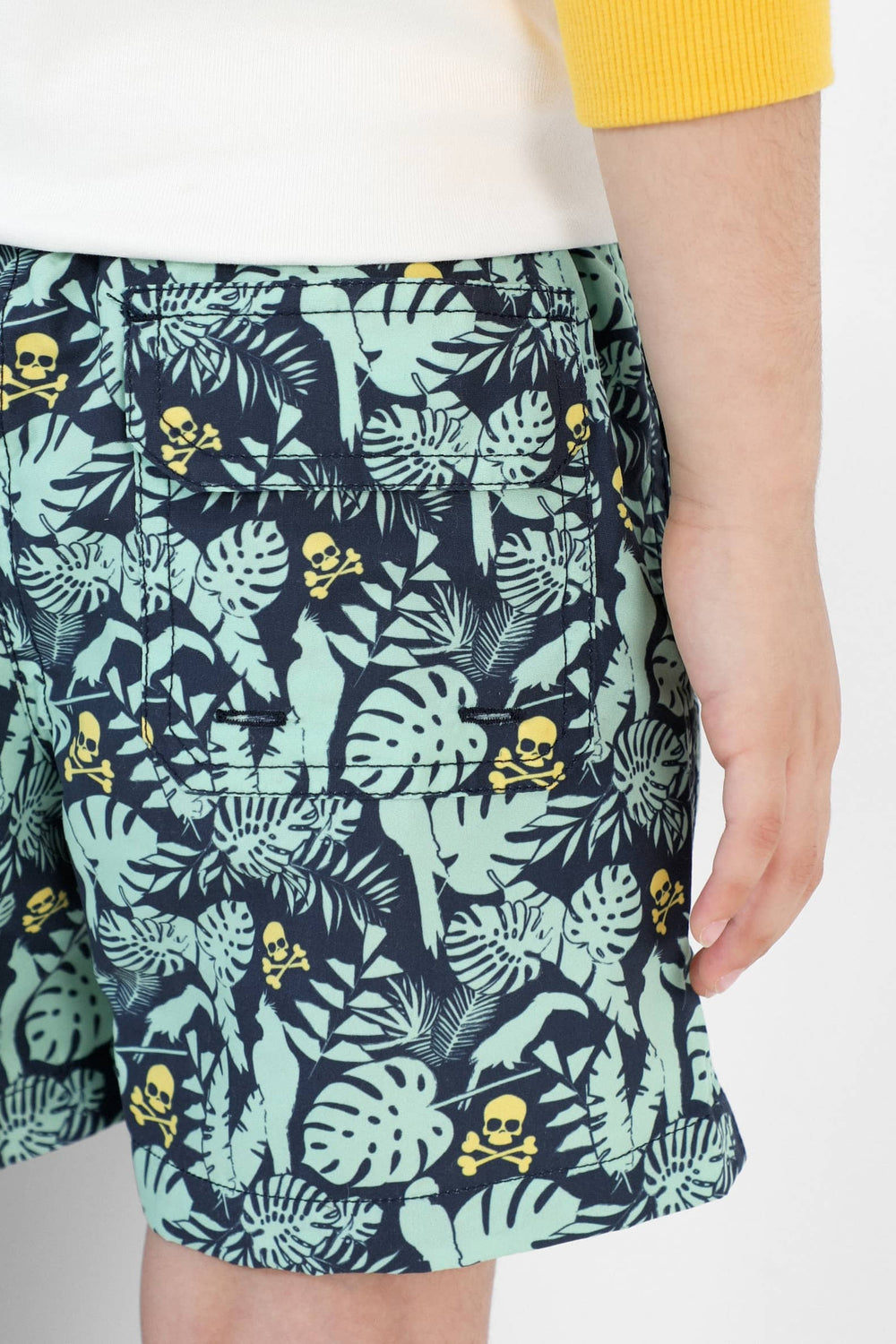 Bañador con estampado tropical confeccionado en tejido de secado rápido. Corte Regular Fit, cinturilla elástica ajustable con cordones. Bolsillos laterales y trasero con velcro. Detalle de bordado.
