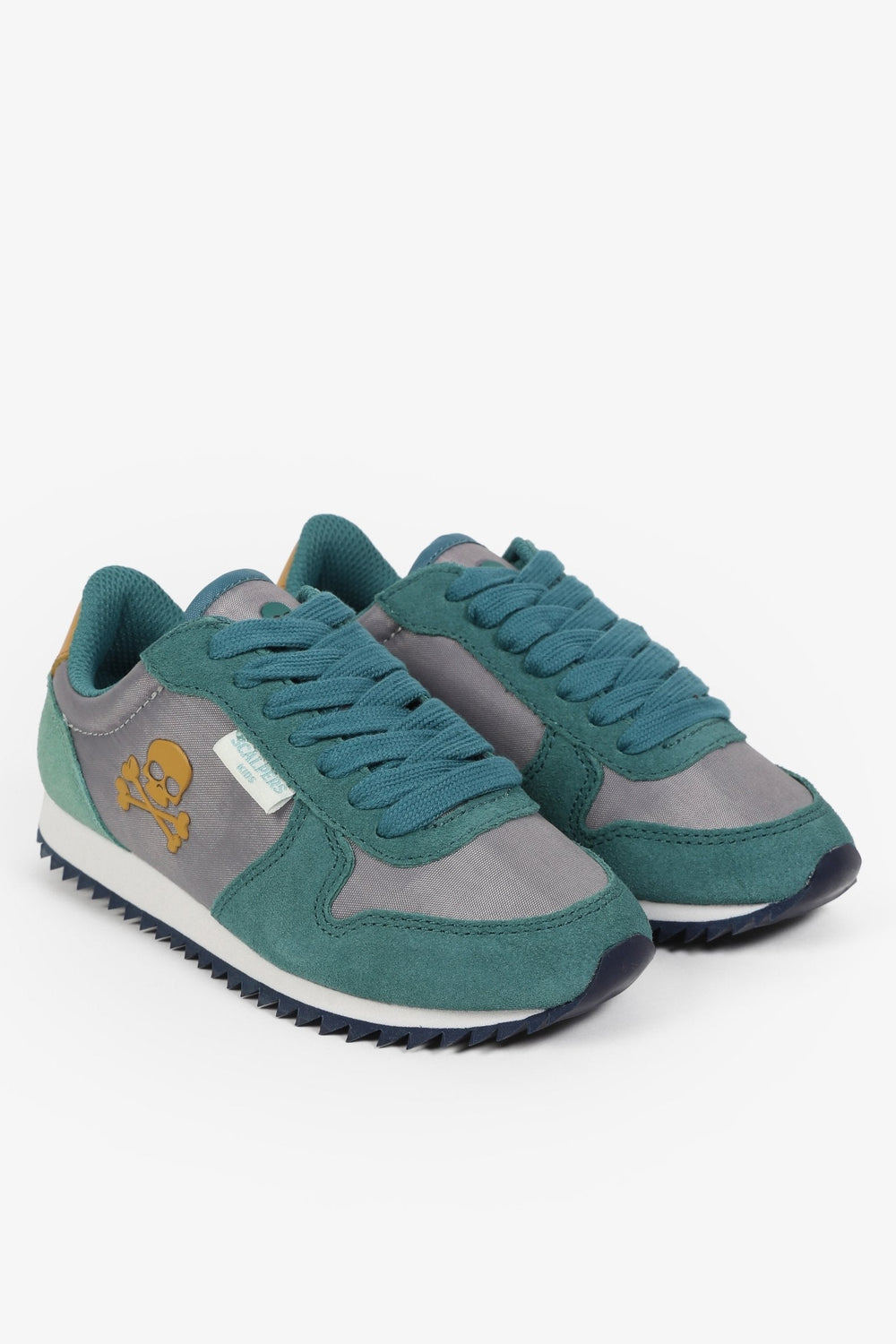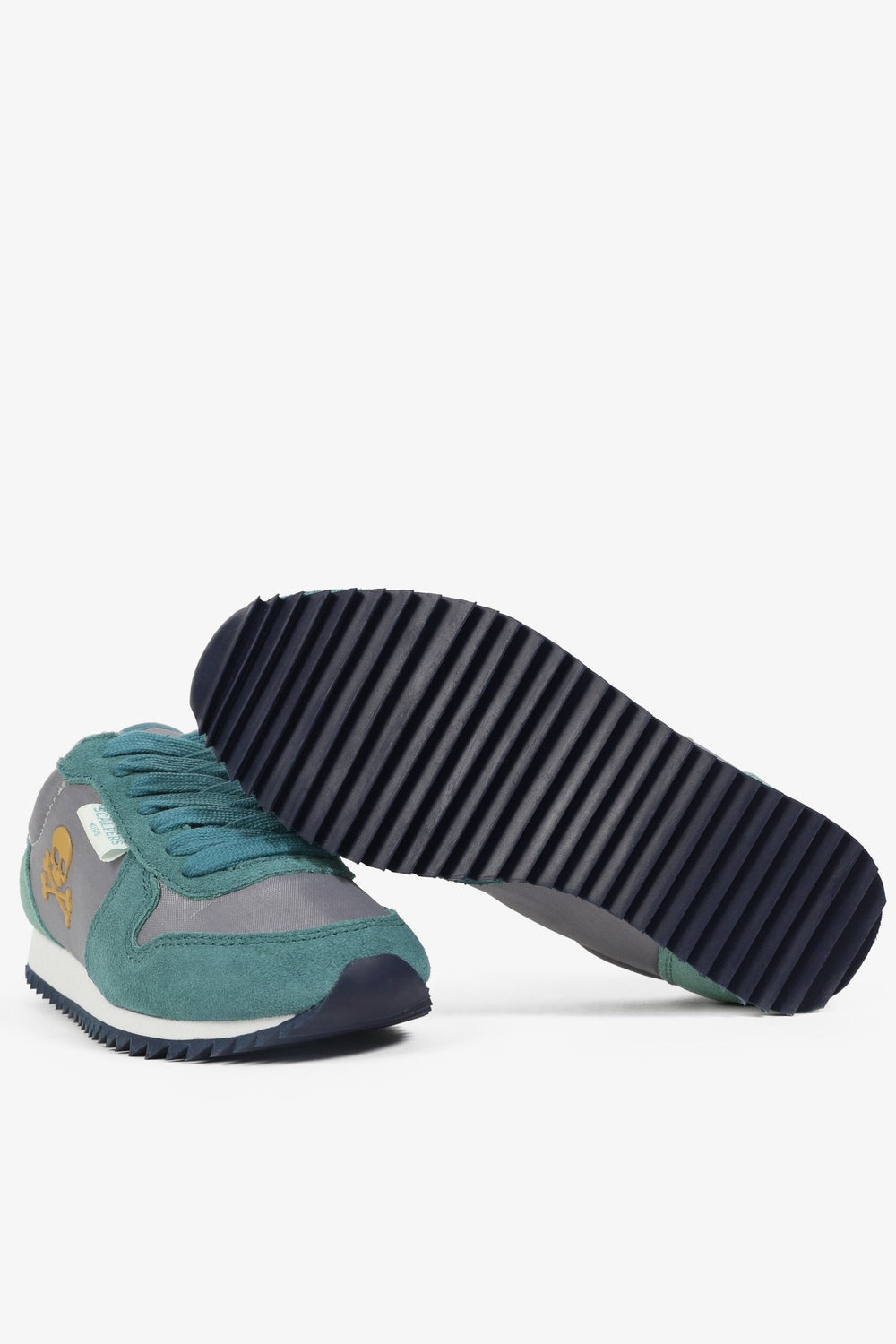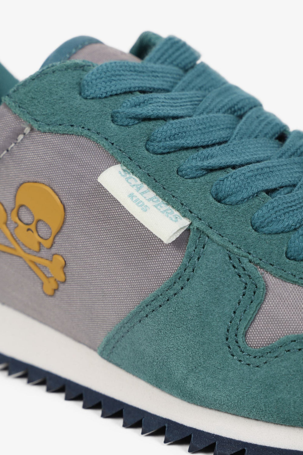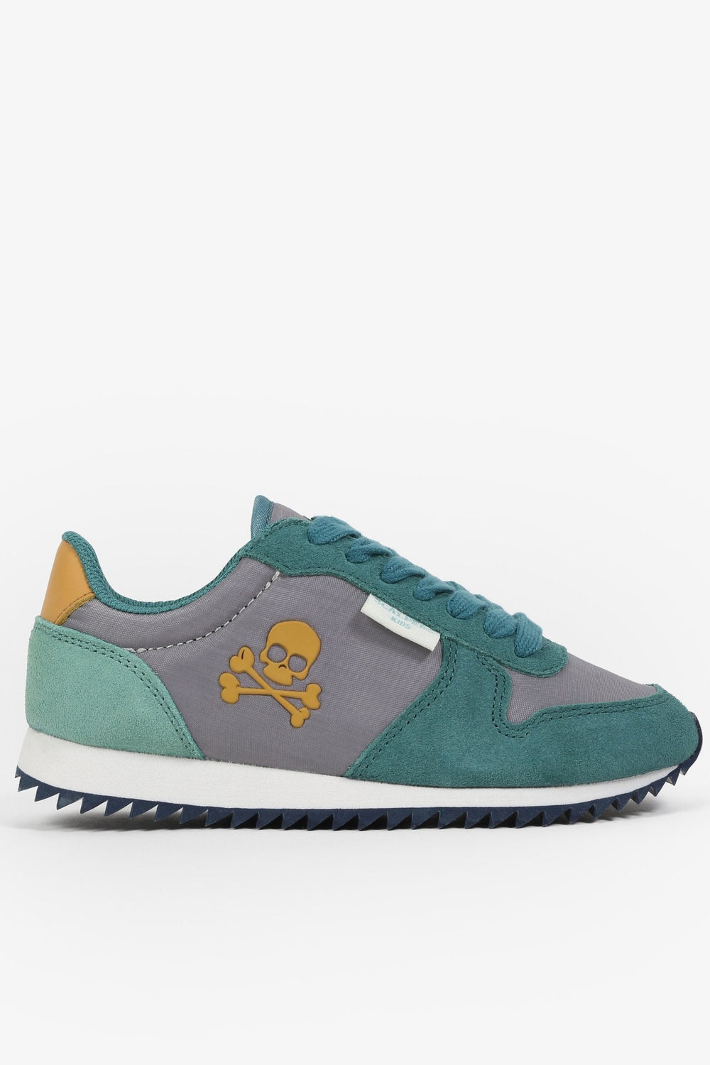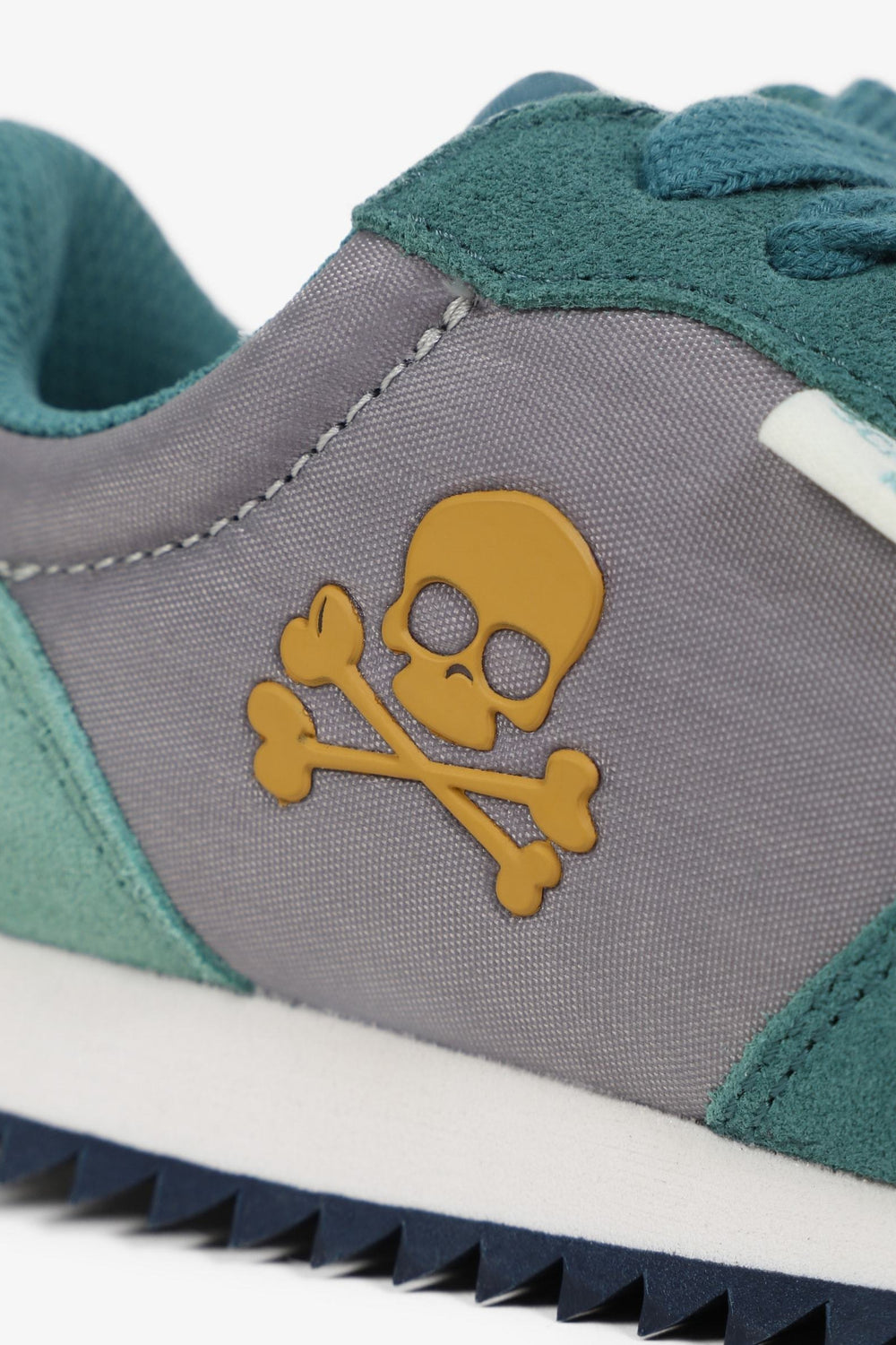 Zapatillas deportivas confeccionadas en tejido de nylon y serraje. Cierre con cordones a tono y suela dentada con eva. Detalle de calavera bordada en el lateral.