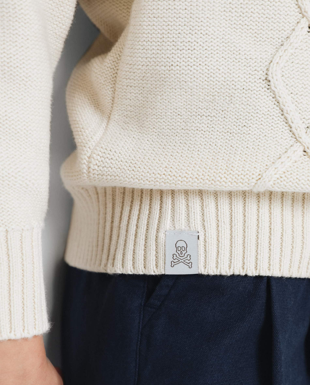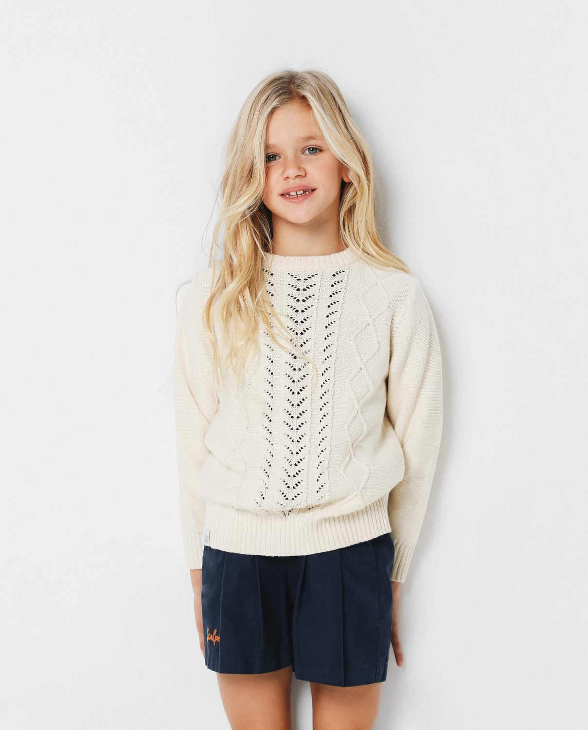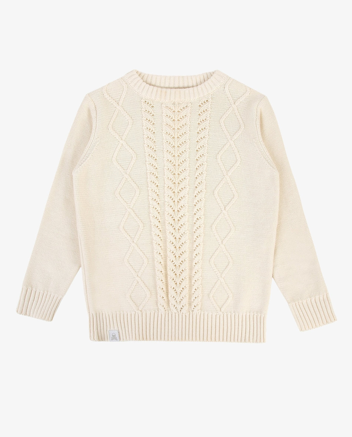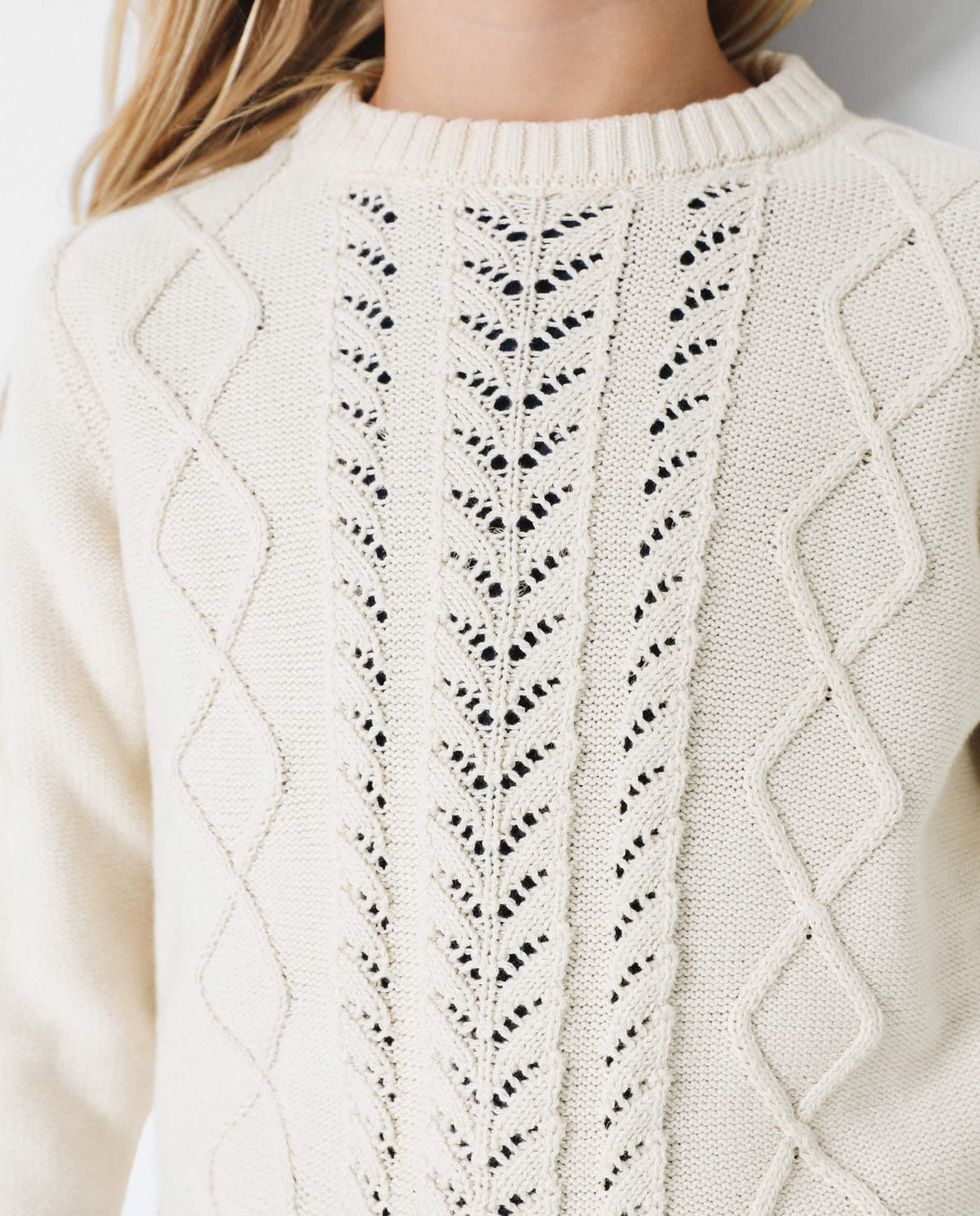 Jersey de ochos y calados confeccionado en punto. Corte Regular Fit, cuello redondo y manga larga. Detalle de canalé en puños y bajo.