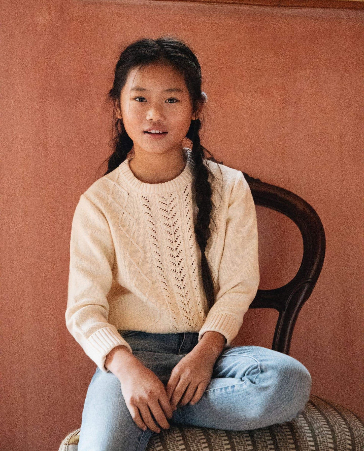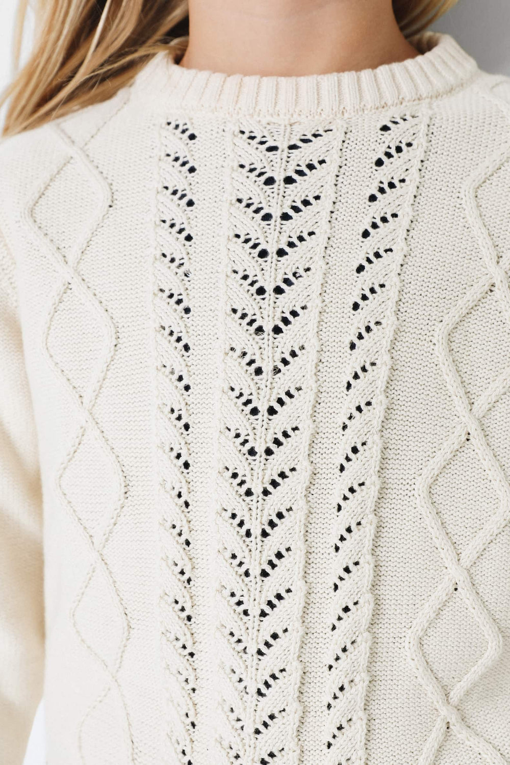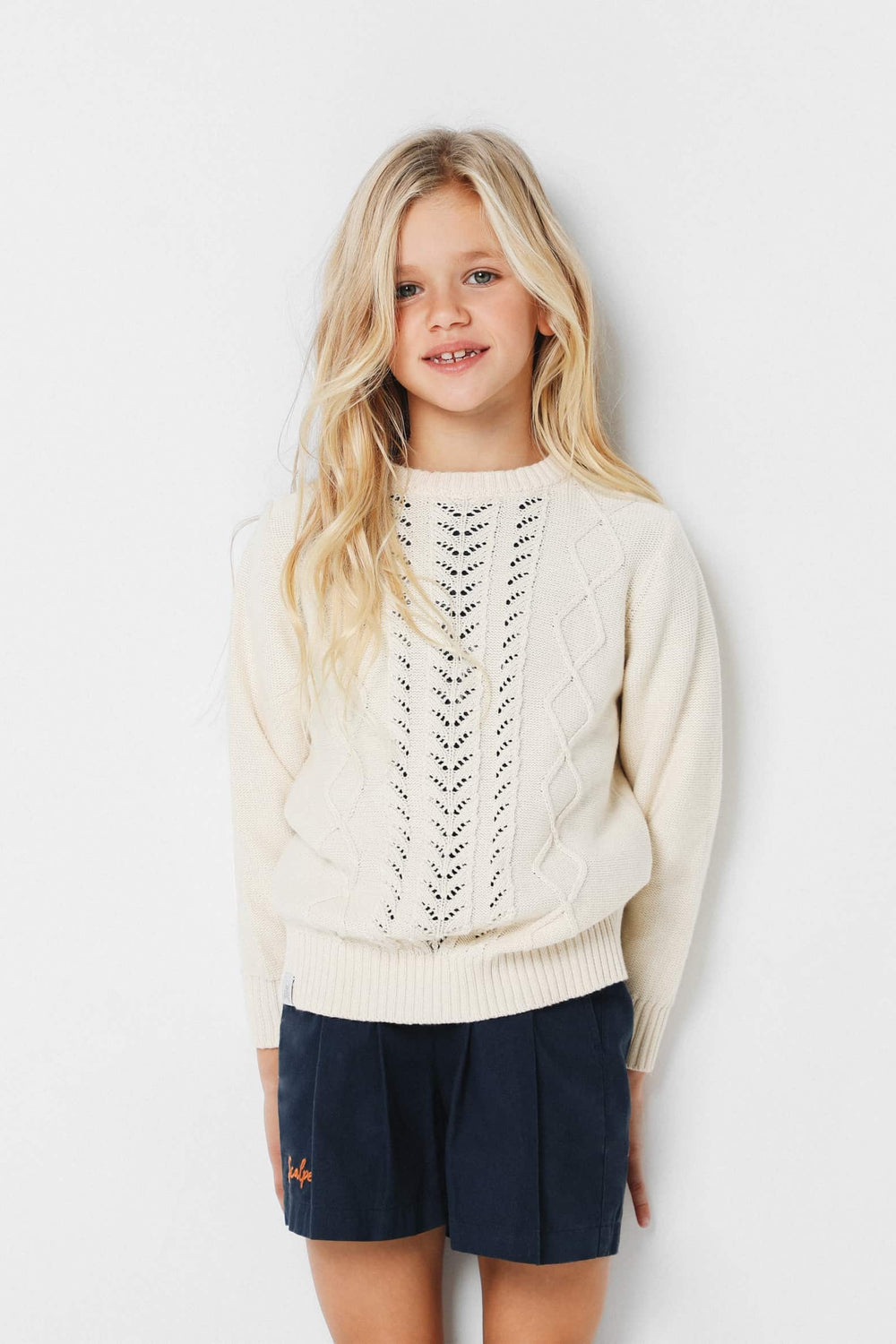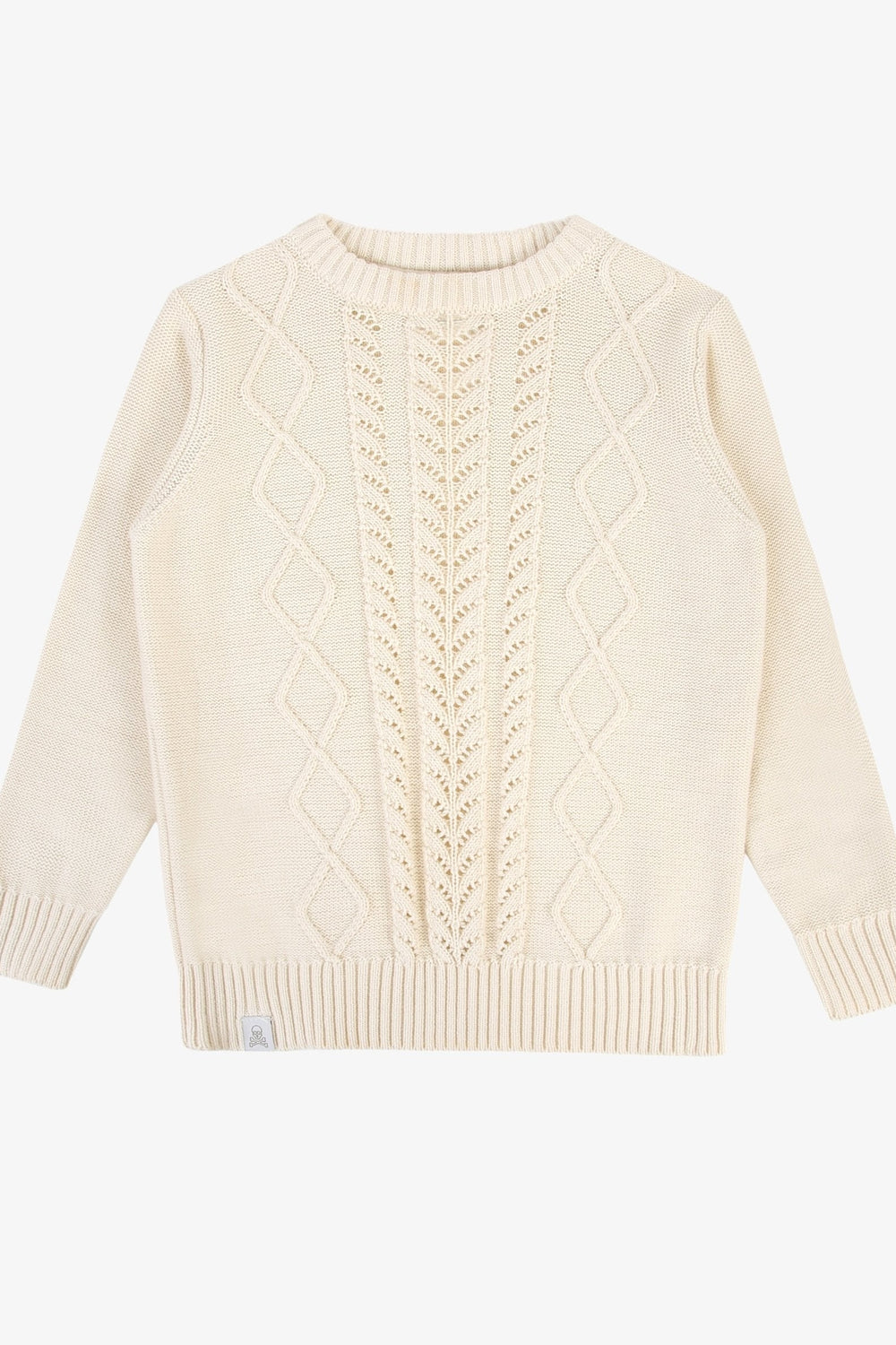 Jersey de ochos y calados confeccionado en punto. Corte Regular Fit, cuello redondo y manga larga. Detalle de canalé en puños y bajo.