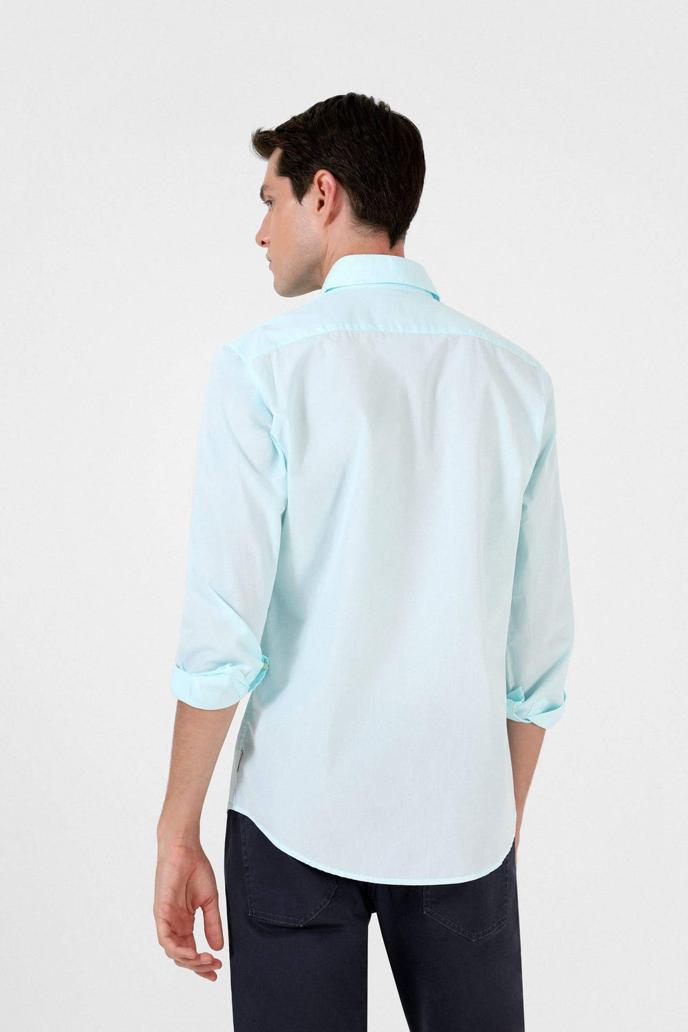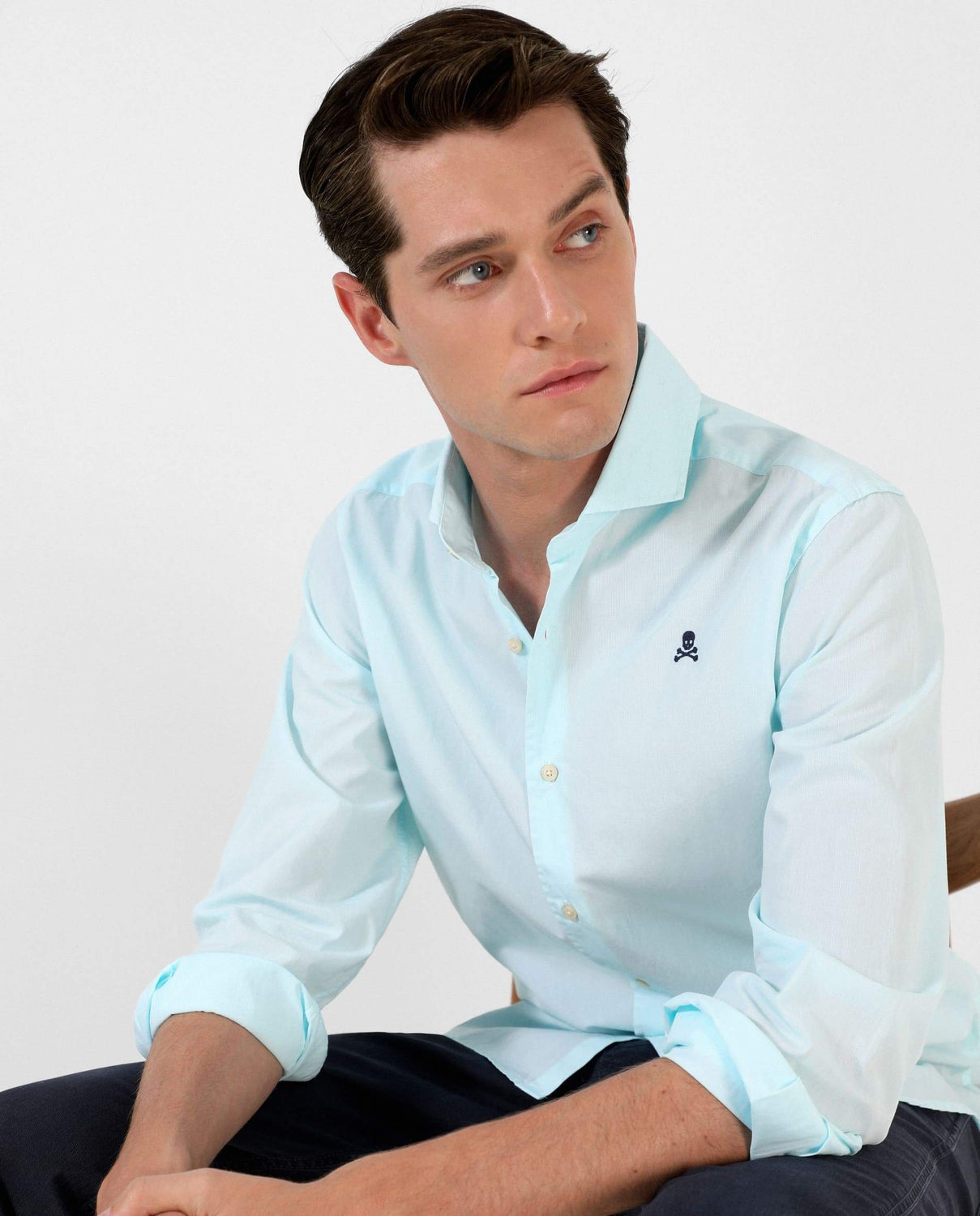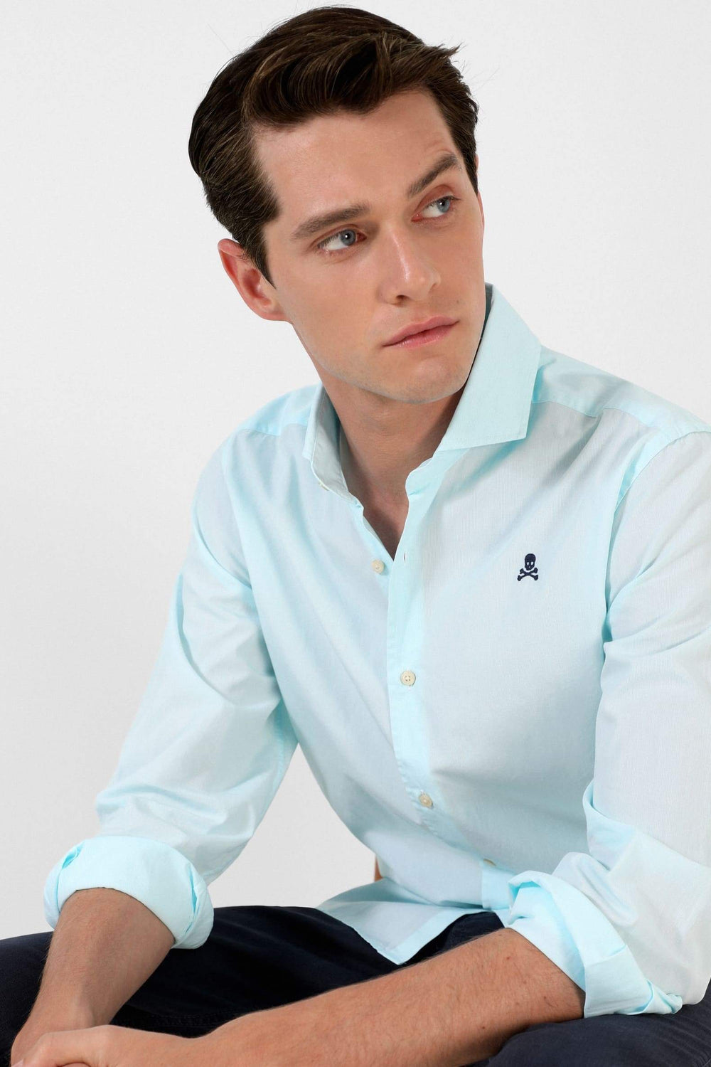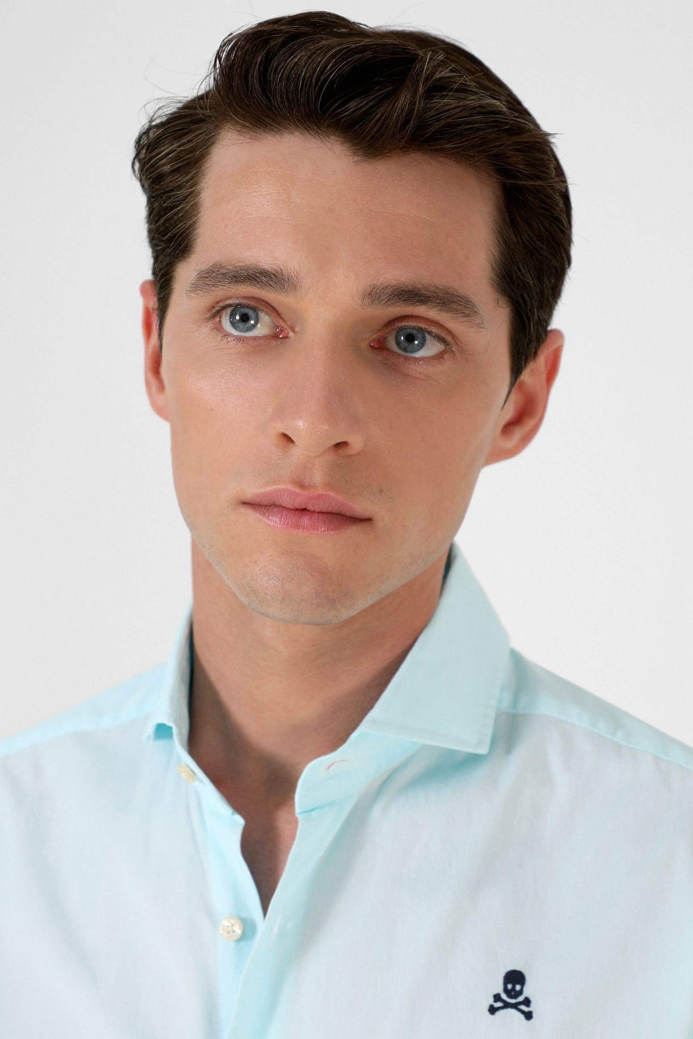 Camisa confeccionada en tejido 100% algodón. Corte Regular Fit, cuello cutaway y cierre con botones. Manga larga terminada en puño simple y detalle de calavera bordada en el pecho.