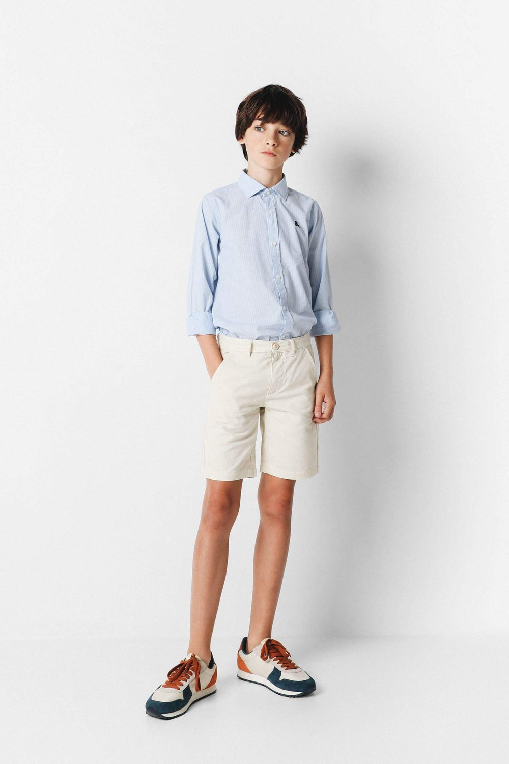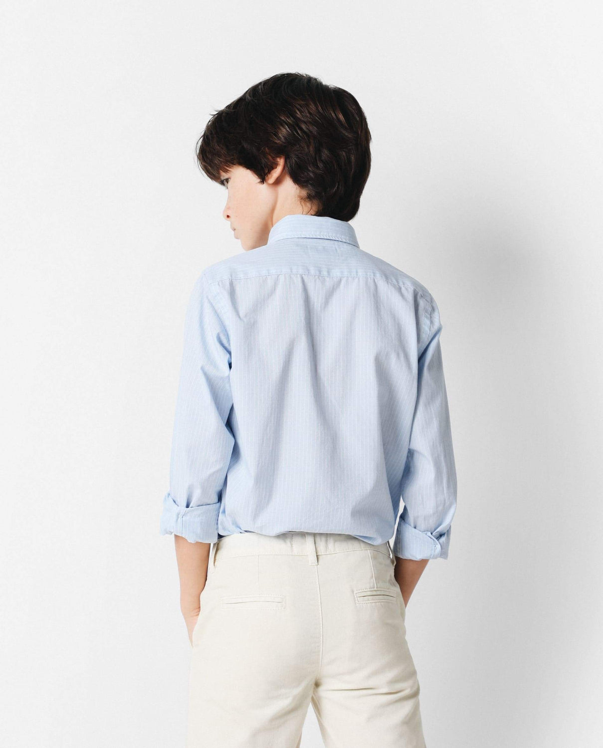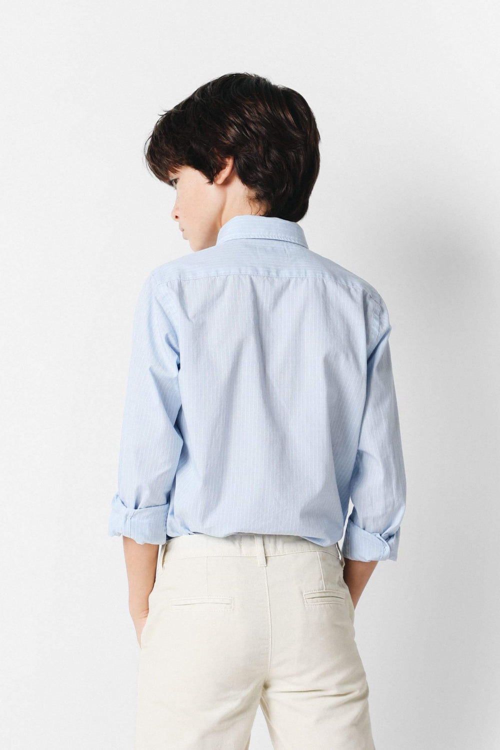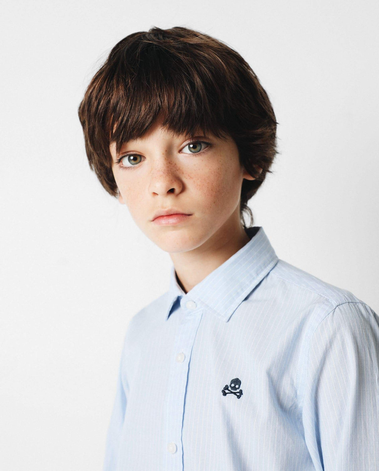 Camisa de rayas de vestir confeccionada en tejido 100% algodón. Corte Regular Fit, cuello cutaway sin ballenas y cierre con botones. Detalle de bordado de calavera a contraste.