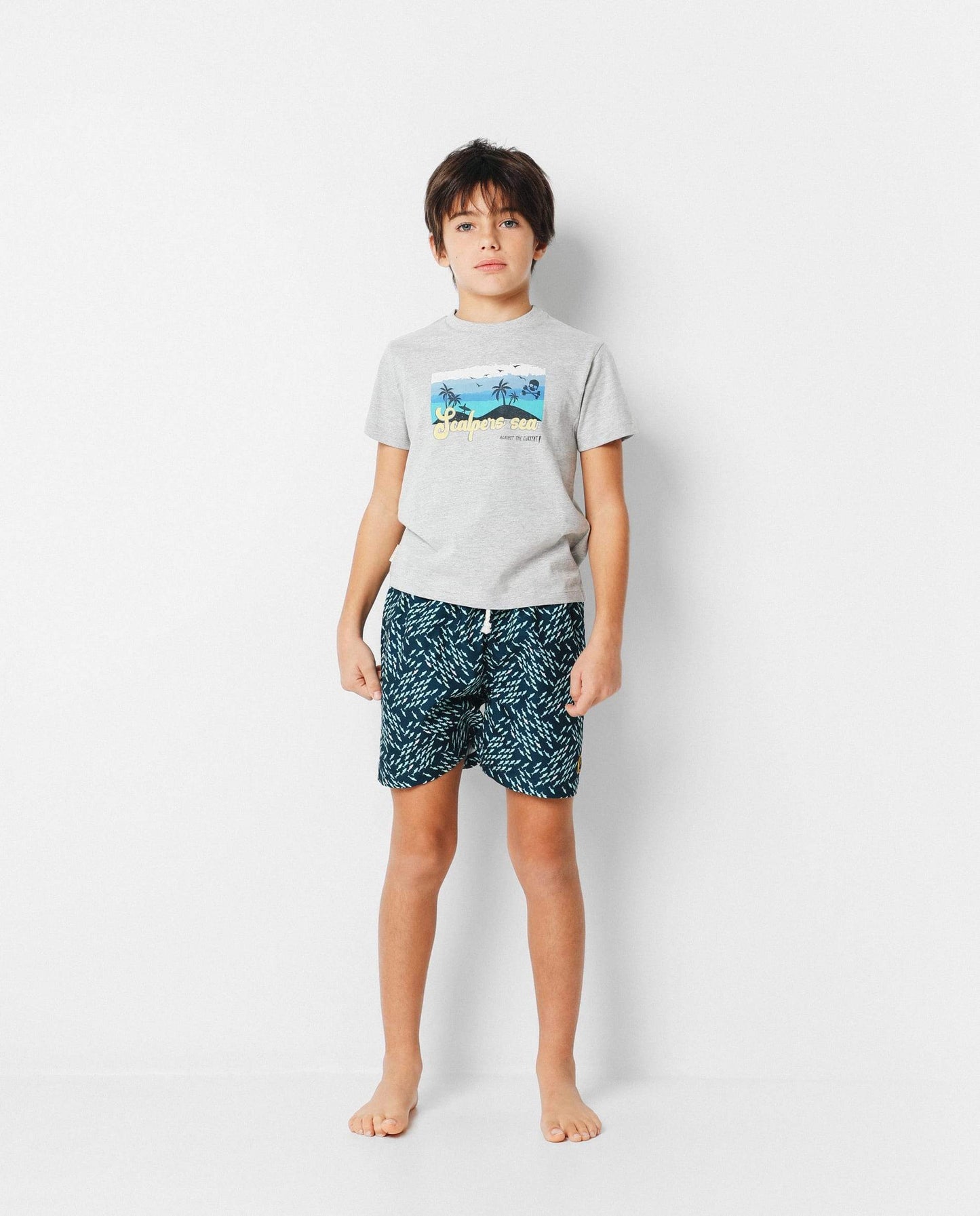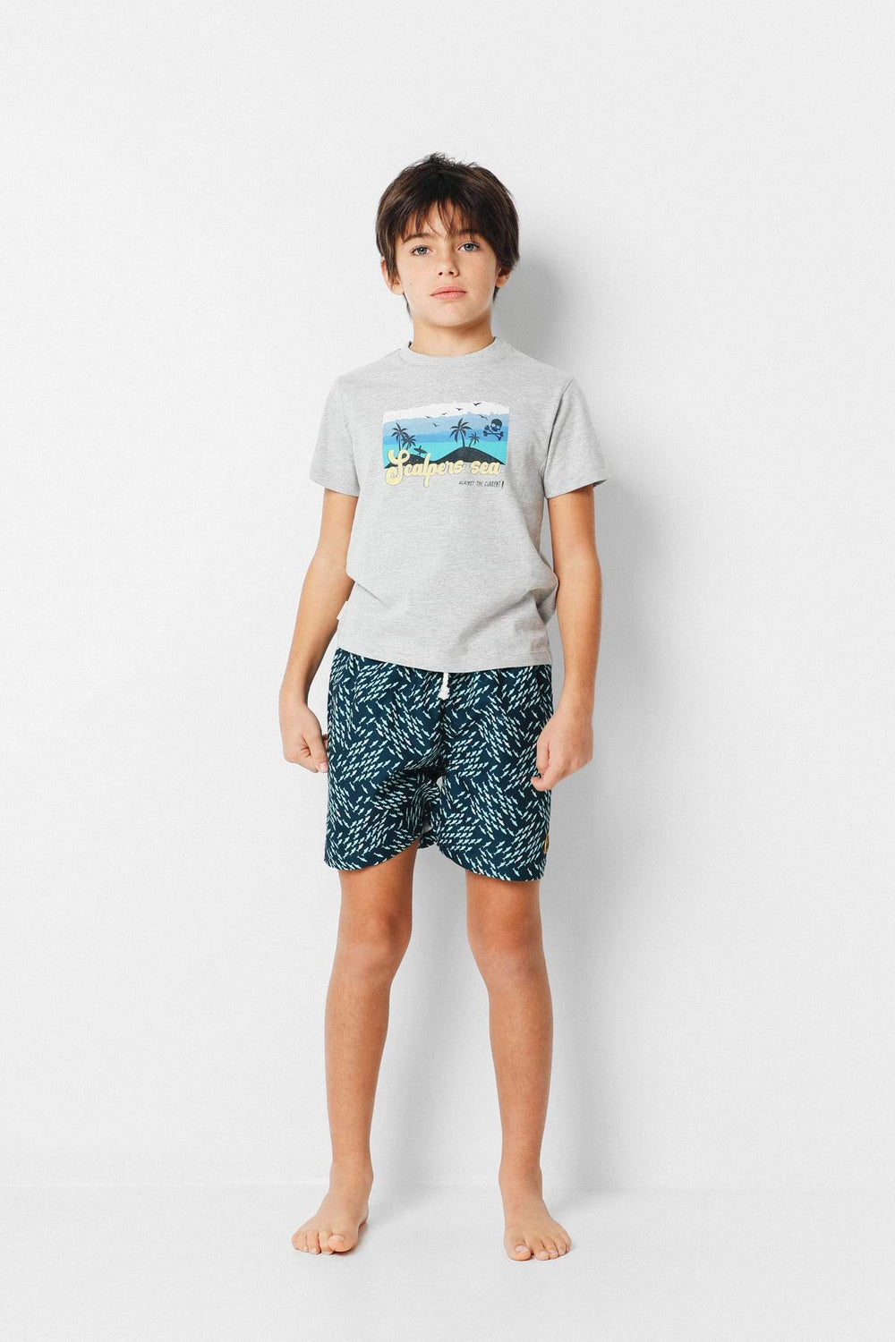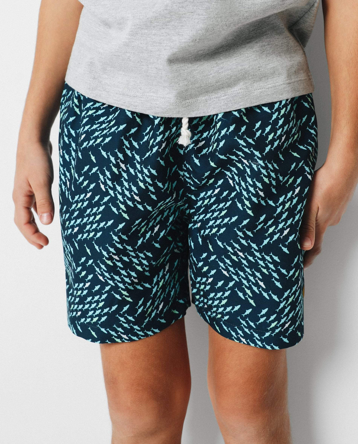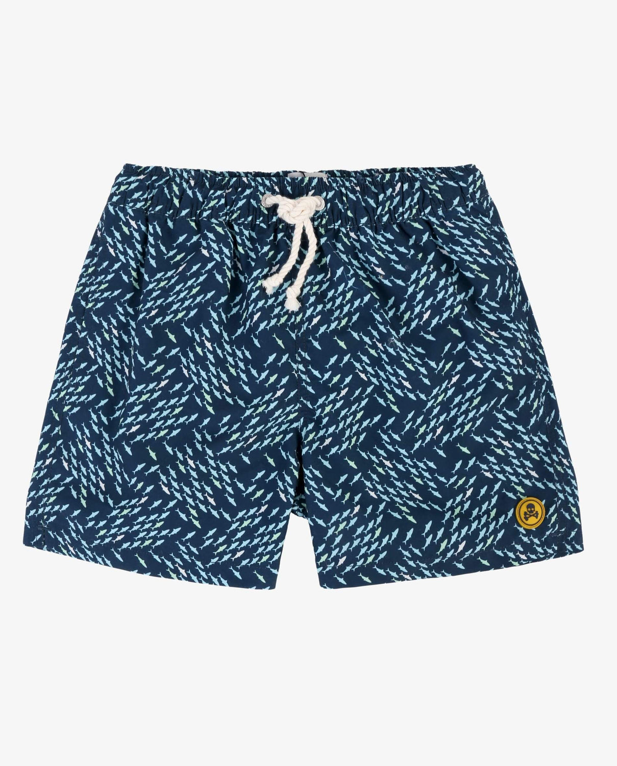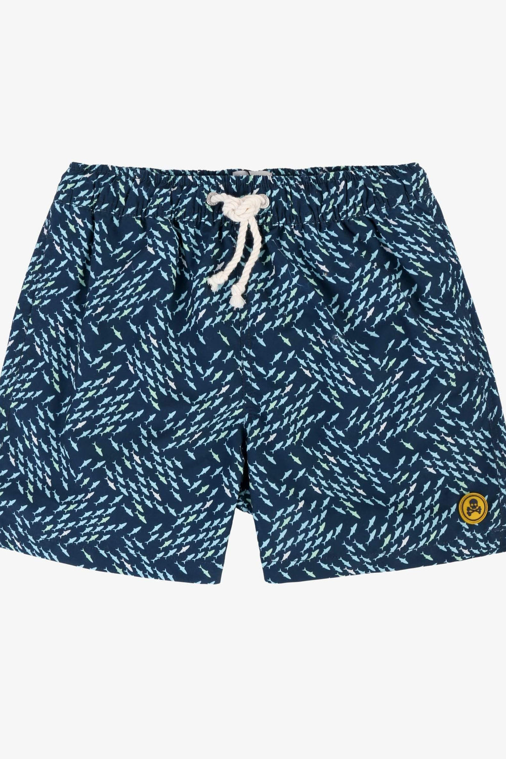 Bañador con estampado de peces confeccionado en calidad de poliamida de secado rápido. Corte Regular Fit, cinturilla elástica ajustable con cordones. Bolsillos laterales y trasero con velcro y detalle de bordado.