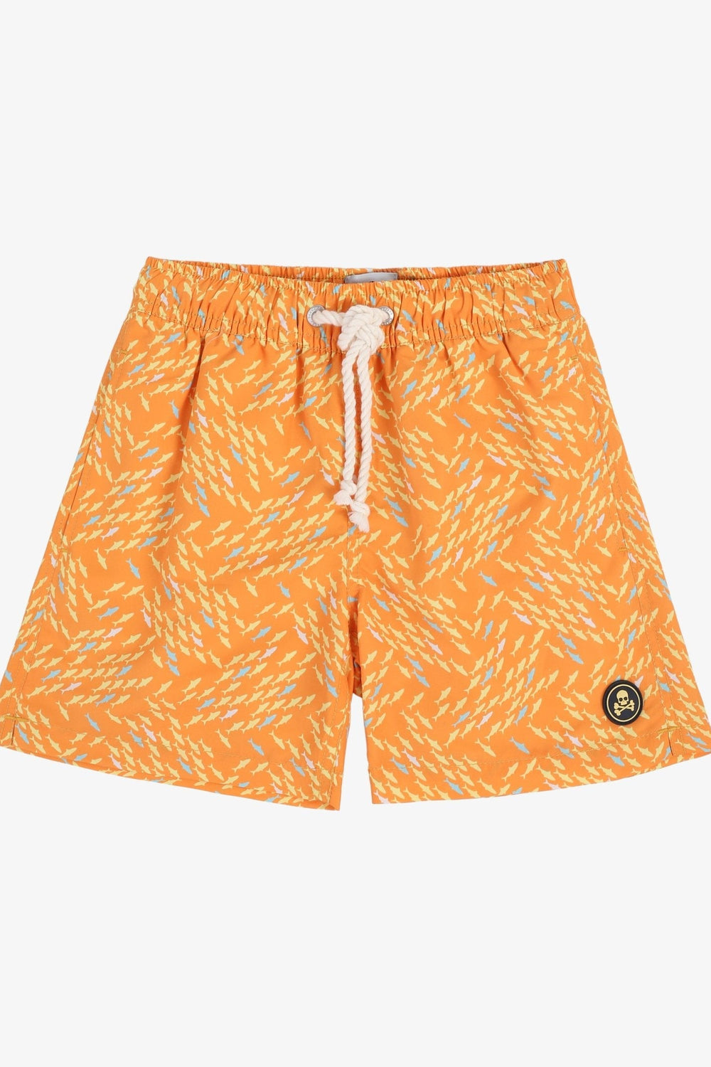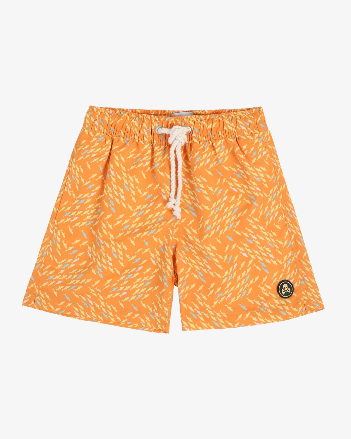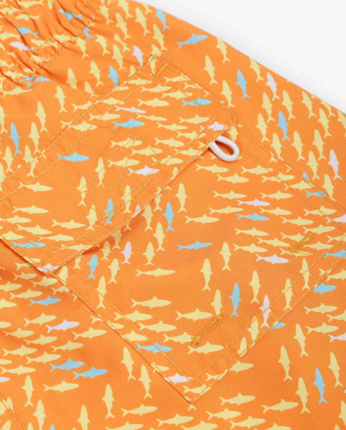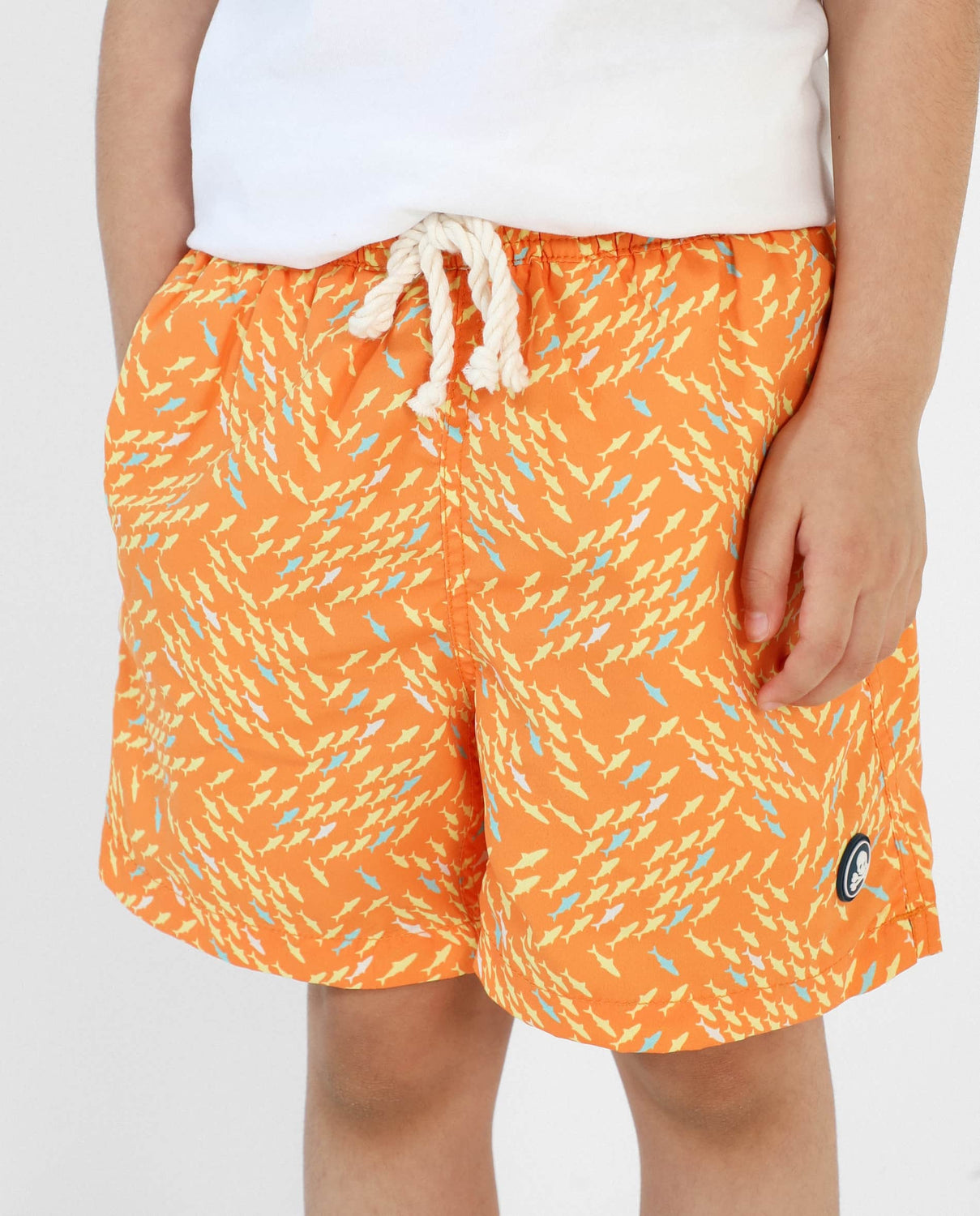 Bañador con estampado de peces confeccionado en calidad de poliamida de secado rápido. Corte Regular Fit, cinturilla elástica ajustable con cordones. Bolsillos laterales y trasero con velcro y detalle de bordado.