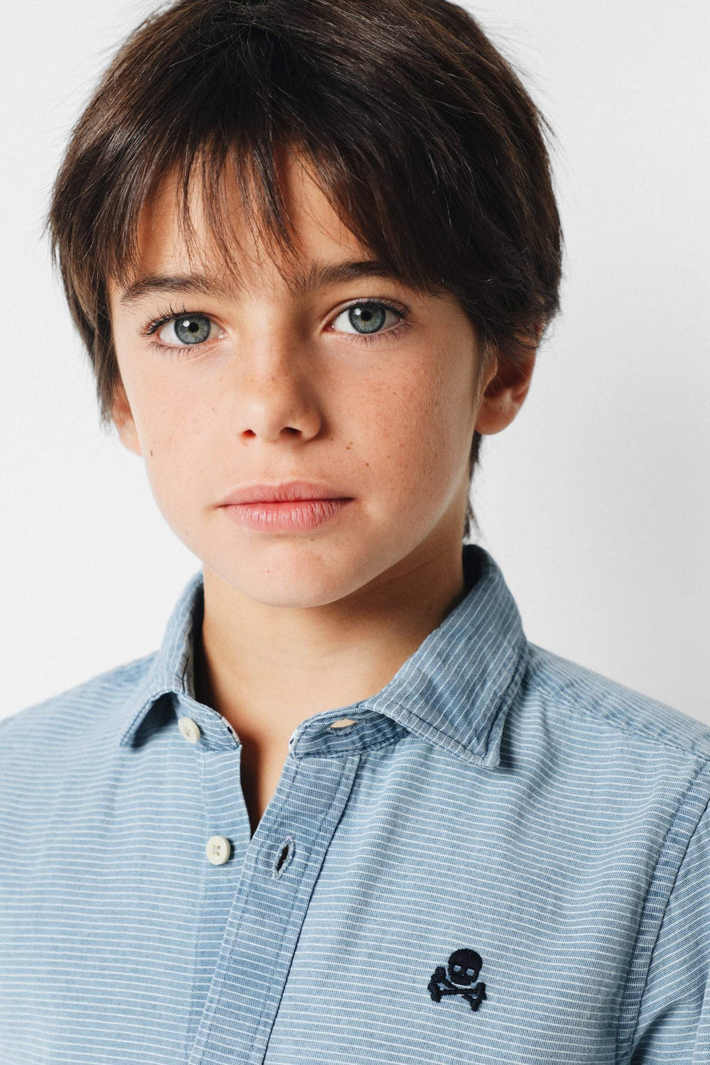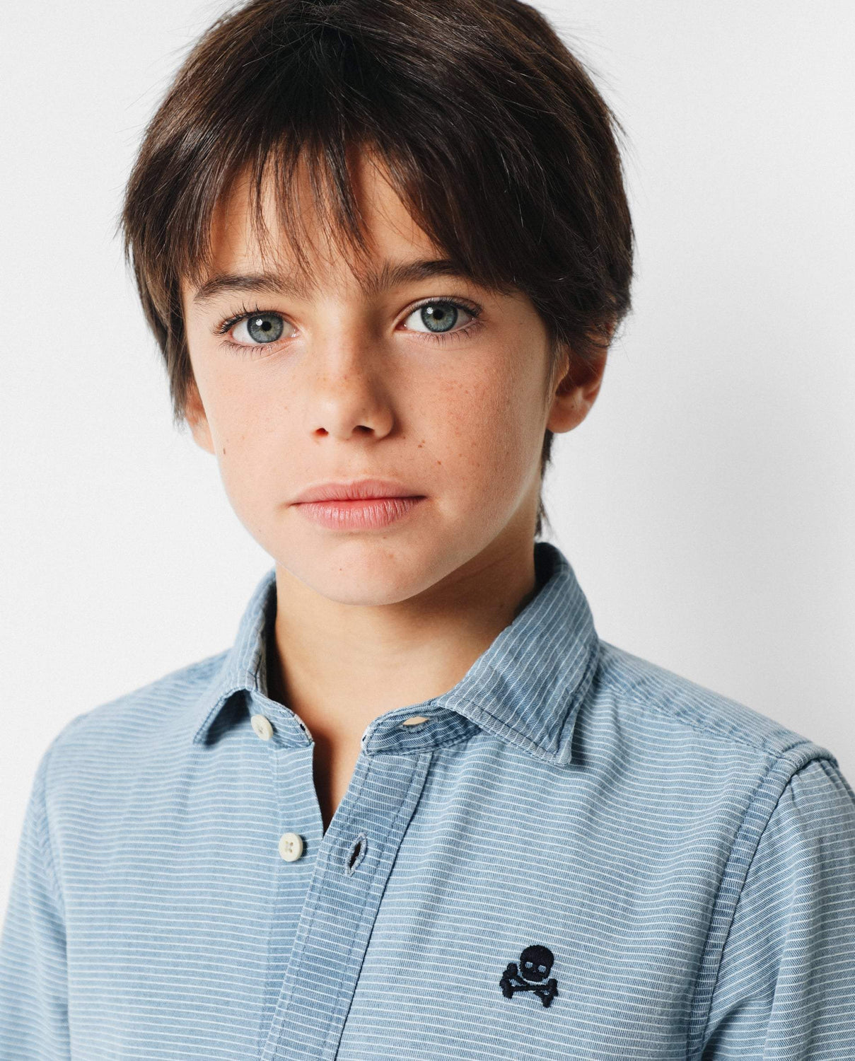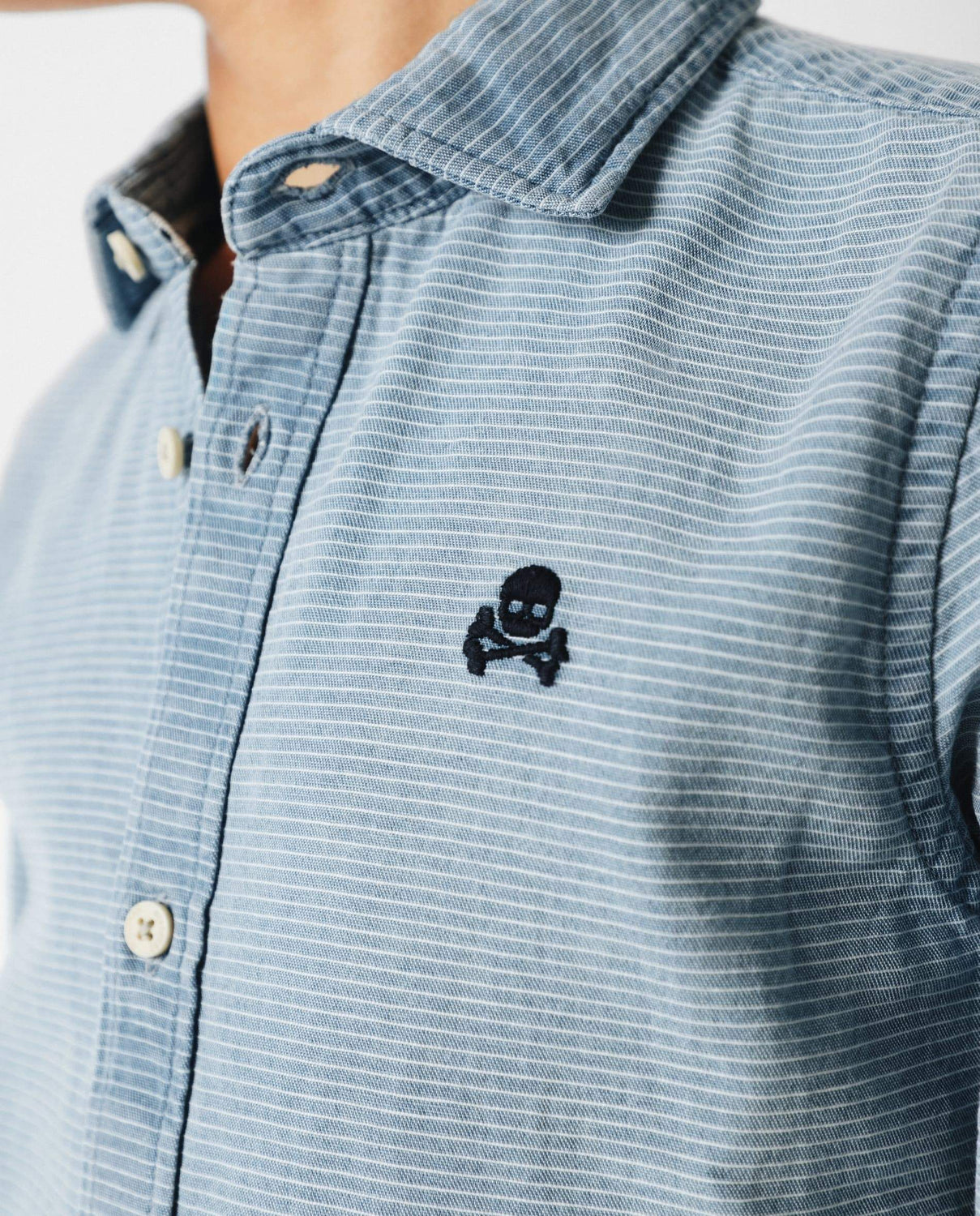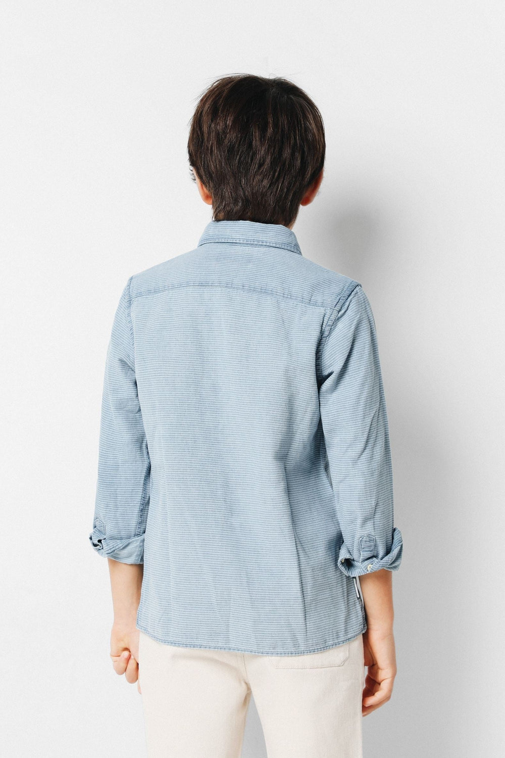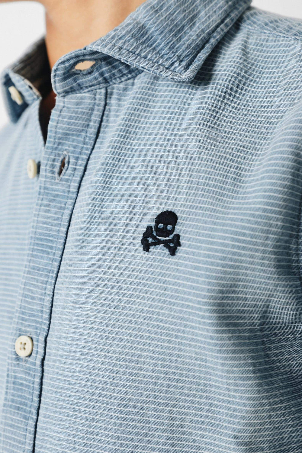 Camisa confeccionada en tejido de estructura rayada 100% algodón. Corte Regular Fit, cuello cutaway y cierre con botones y tapeta francesa. Manga larga terminada en puño y detalle de logo a contraste en el pecho.