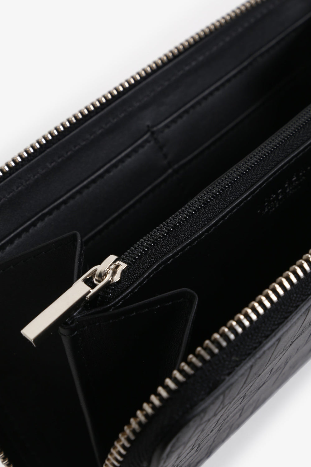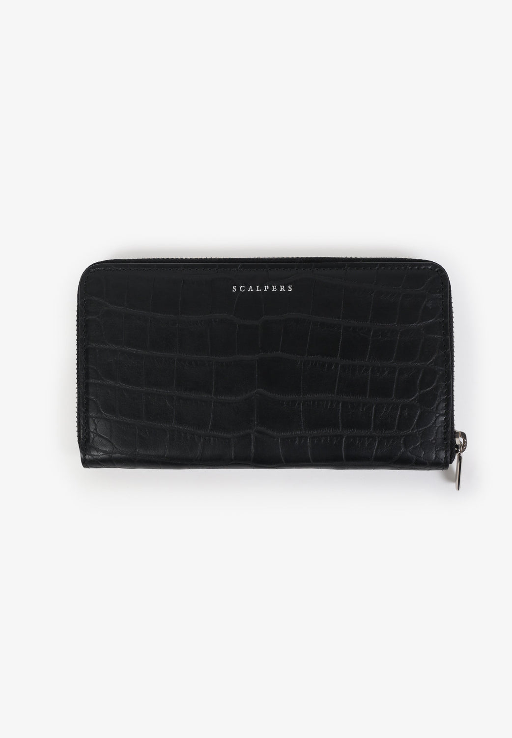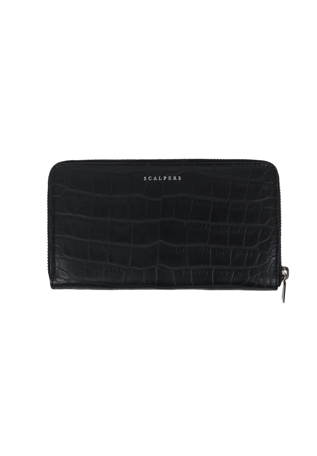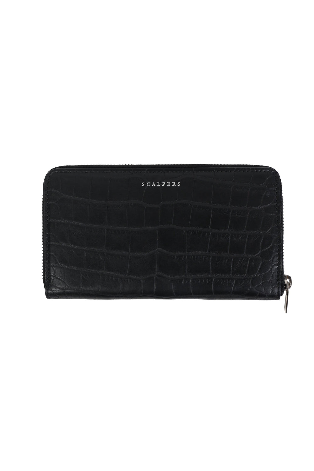 Billetera confeccionada en tejido 100% piel vacuno con grabado. Cierre con cremallera y dos compartimentos interiores. Detalle de tachuela en la calavera en la parte delantera.