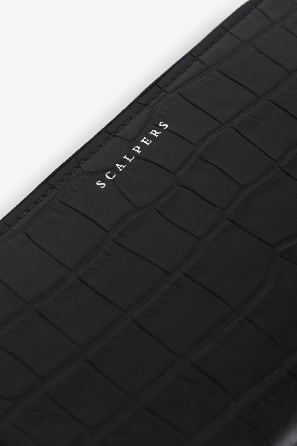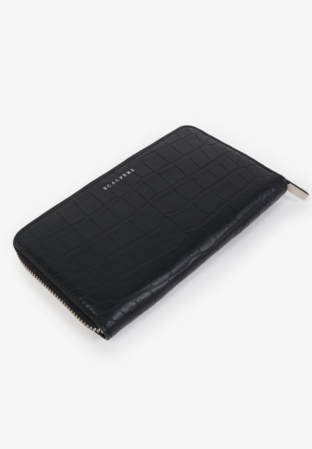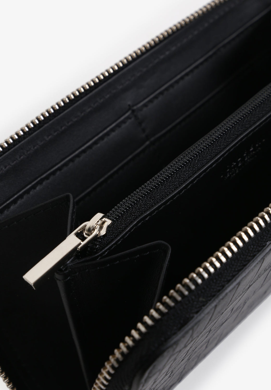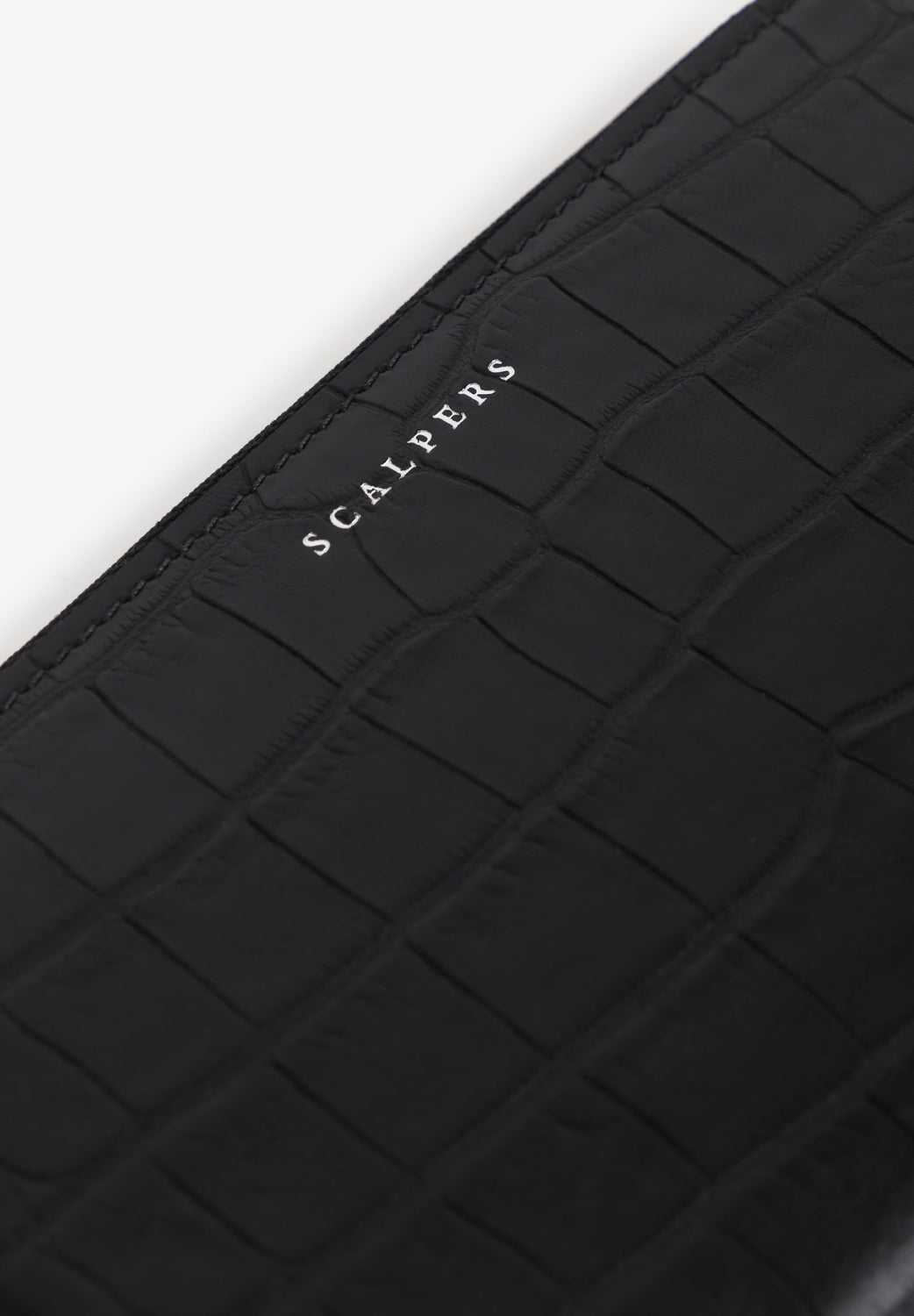 Billetera confeccionada en tejido 100% piel vacuno con grabado. Cierre con cremallera y dos compartimentos interiores. Detalle de tachuela en la calavera en la parte delantera.