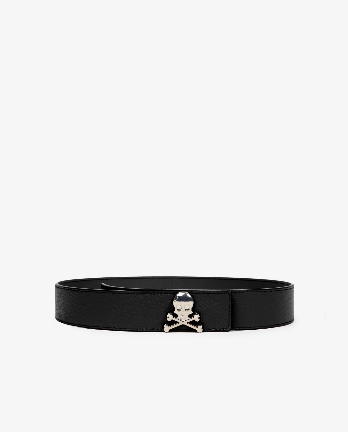 Cinturón confeccionado en 100% piel vacuno. Cierre con la calavera metálica.