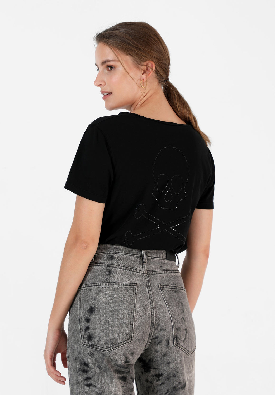 Polera confeccionada en tejido 100% algodón. Corte Regular Fit, Cuello en V y manga corta. Detalle de calavera trasera.