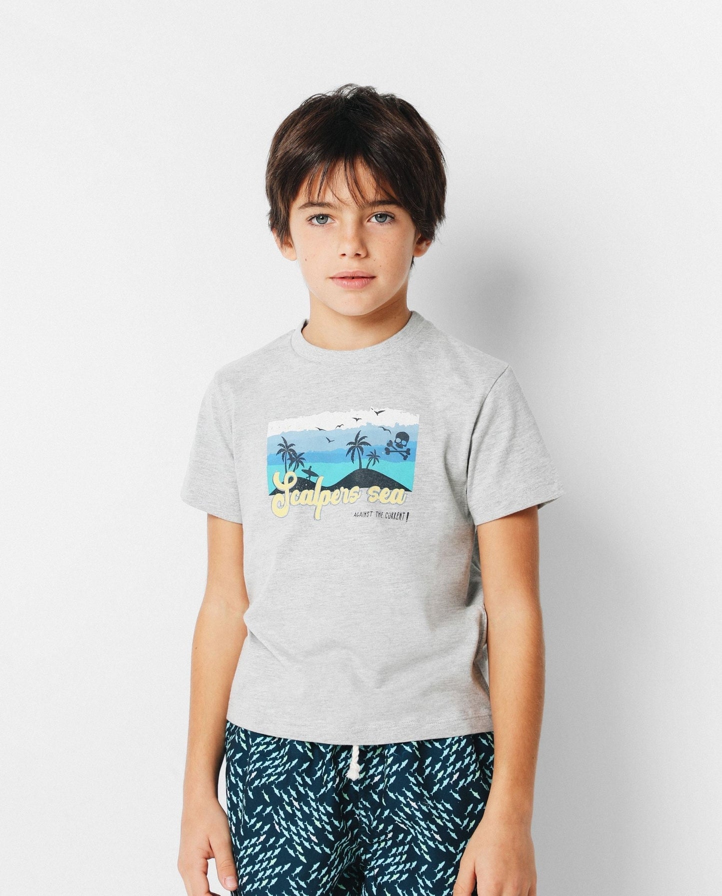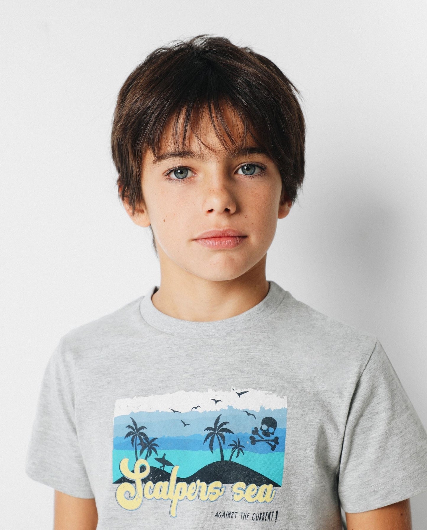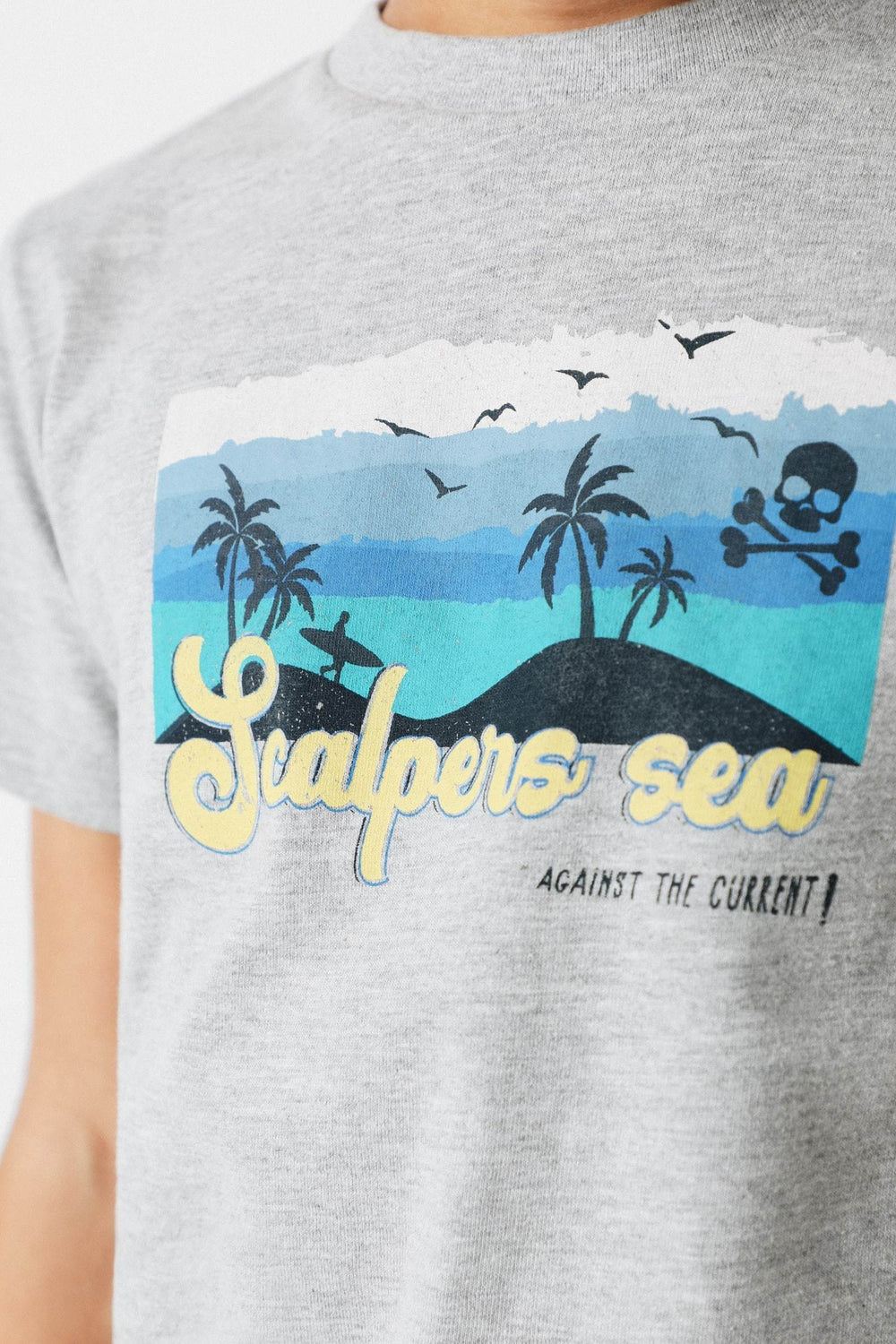 Camiseta con print del mar confeccionada en tejido 100% algodón reciclado. Corte Regular Fit, cuello redondo y manga corta.