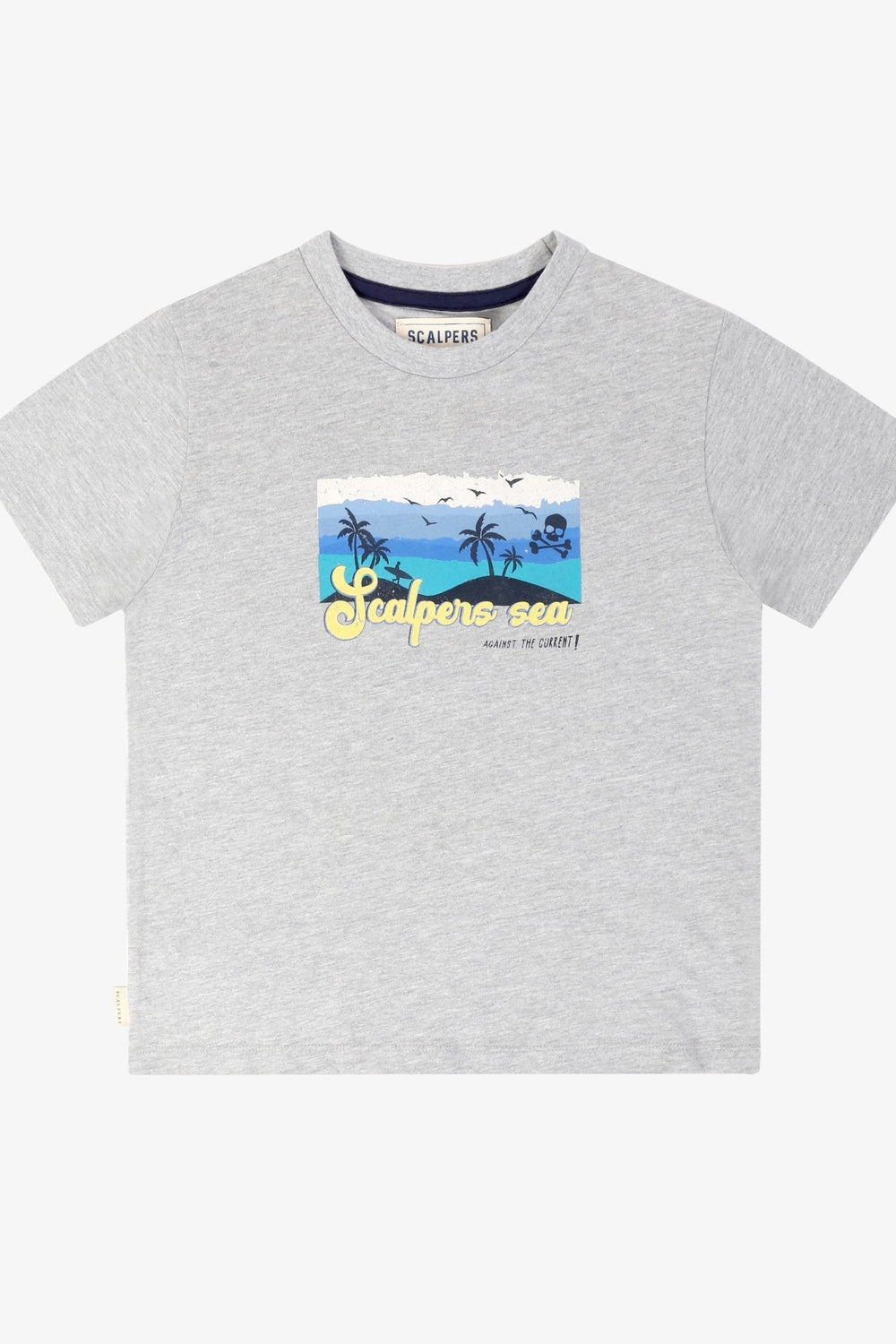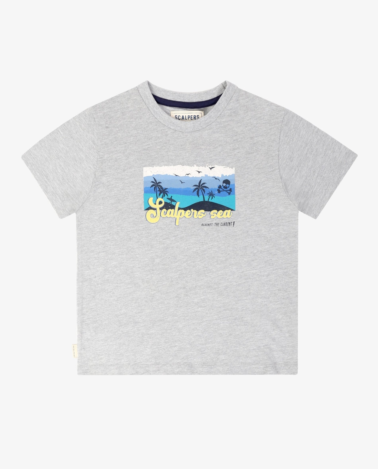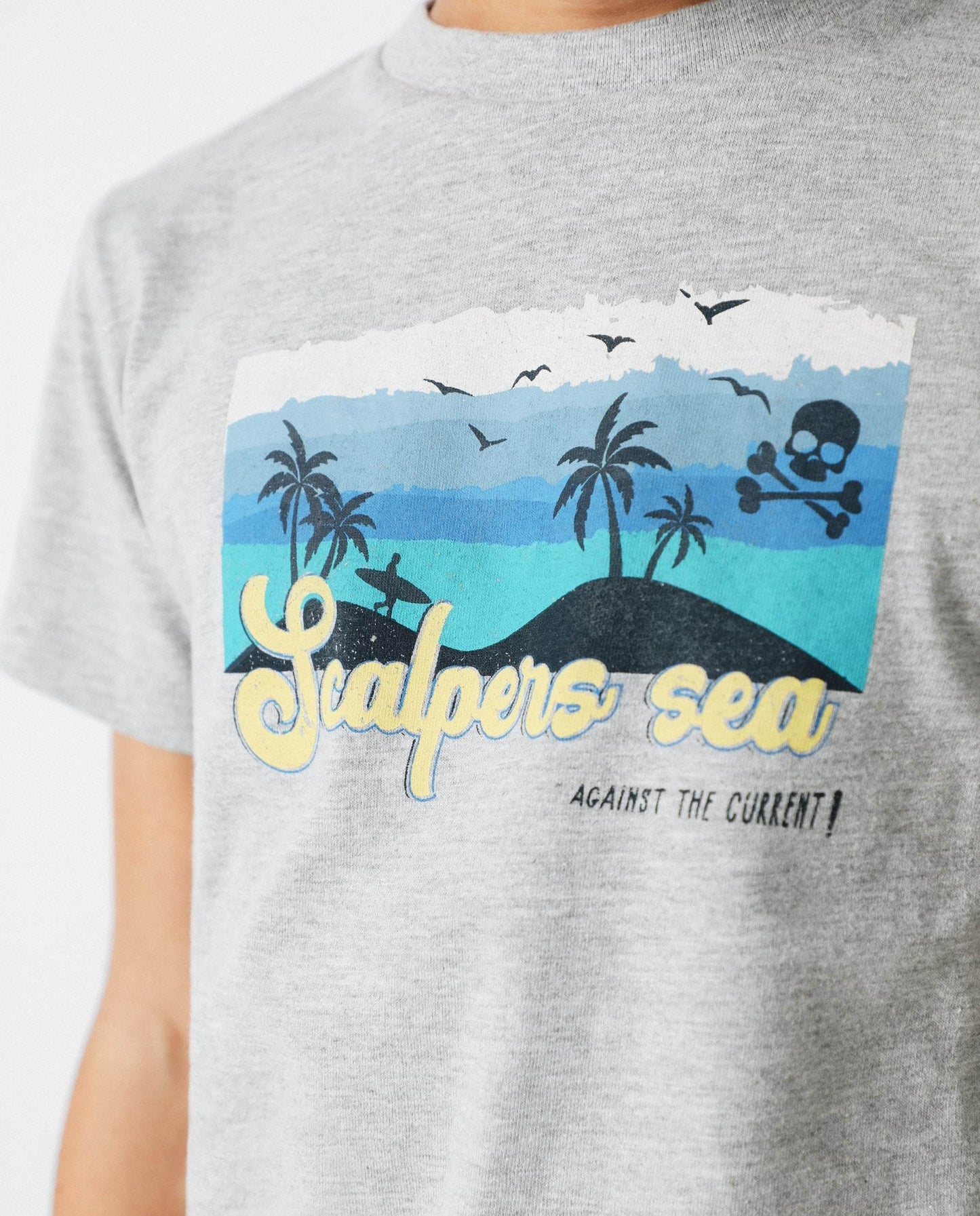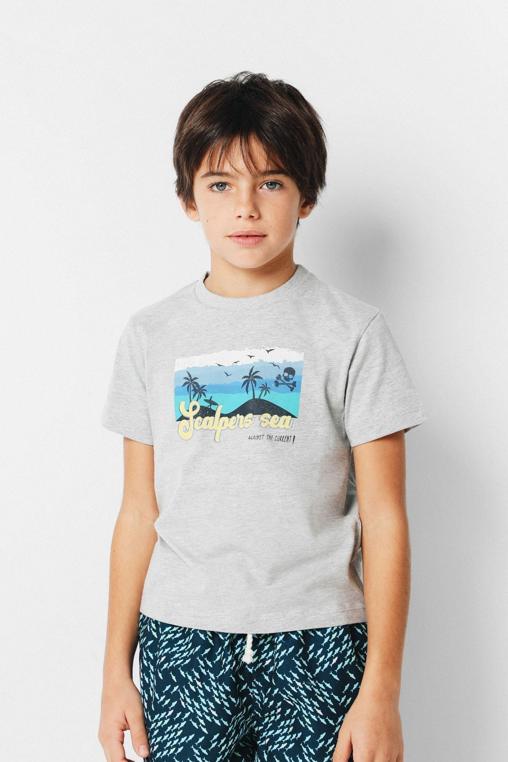 Camiseta con print del mar confeccionada en tejido 100% algodón reciclado. Corte Regular Fit, cuello redondo y manga corta.