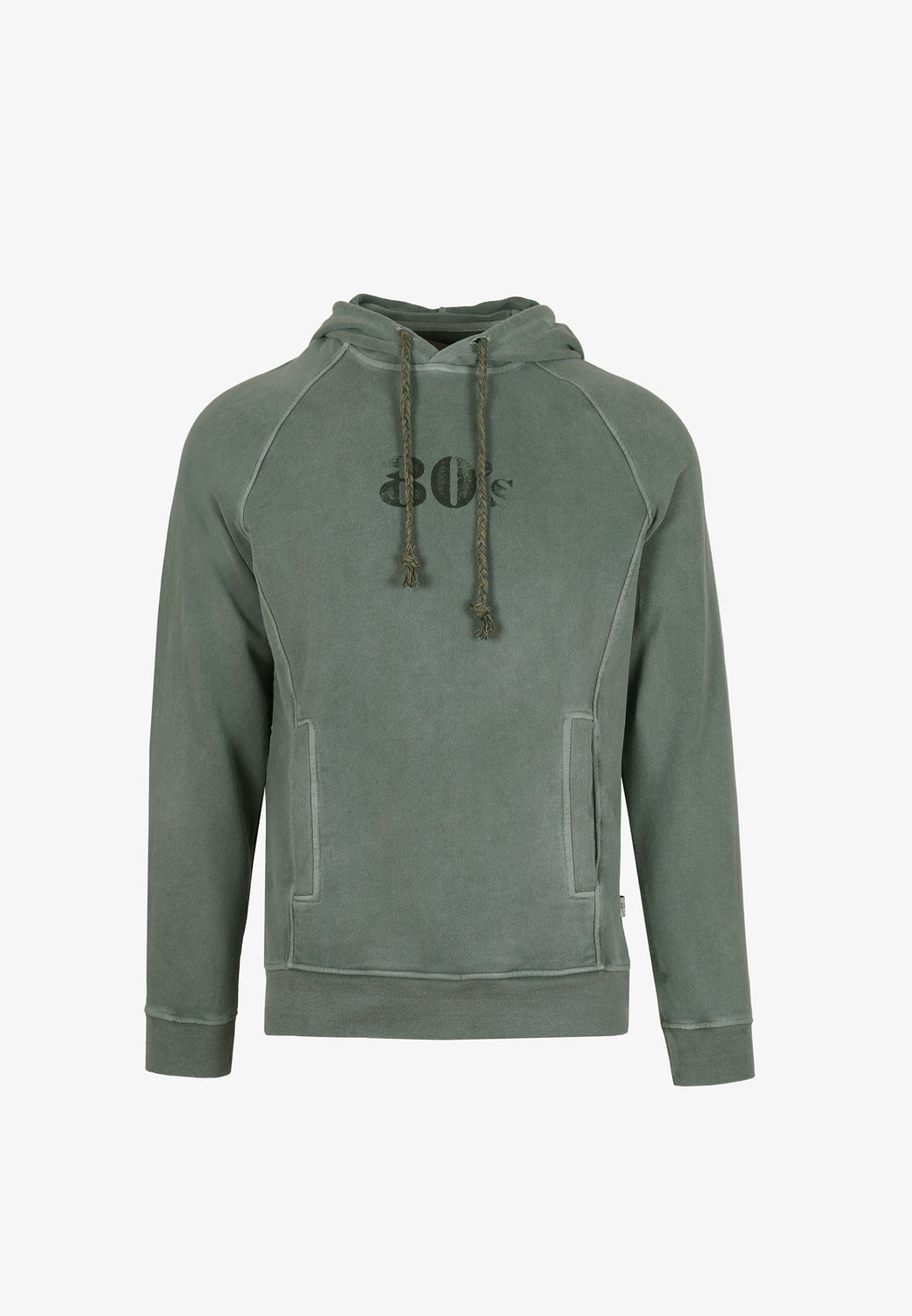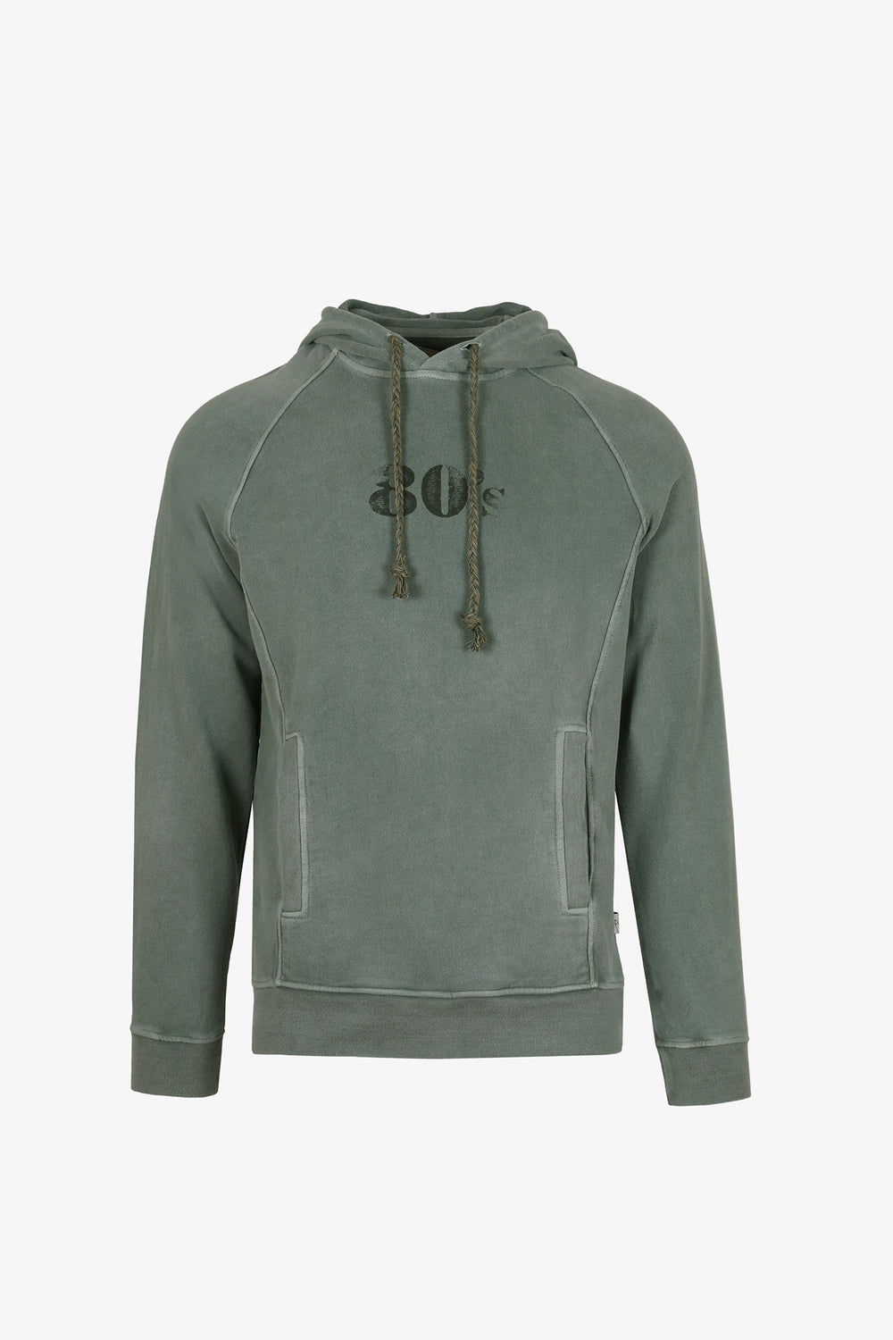 Sudadera confeccionada en tejido 100% algodón. Corte Regular Fit, cuello con capucha con cordón grueso y bolsillos insertados laterales. Manga larga y detalle de print delantero.