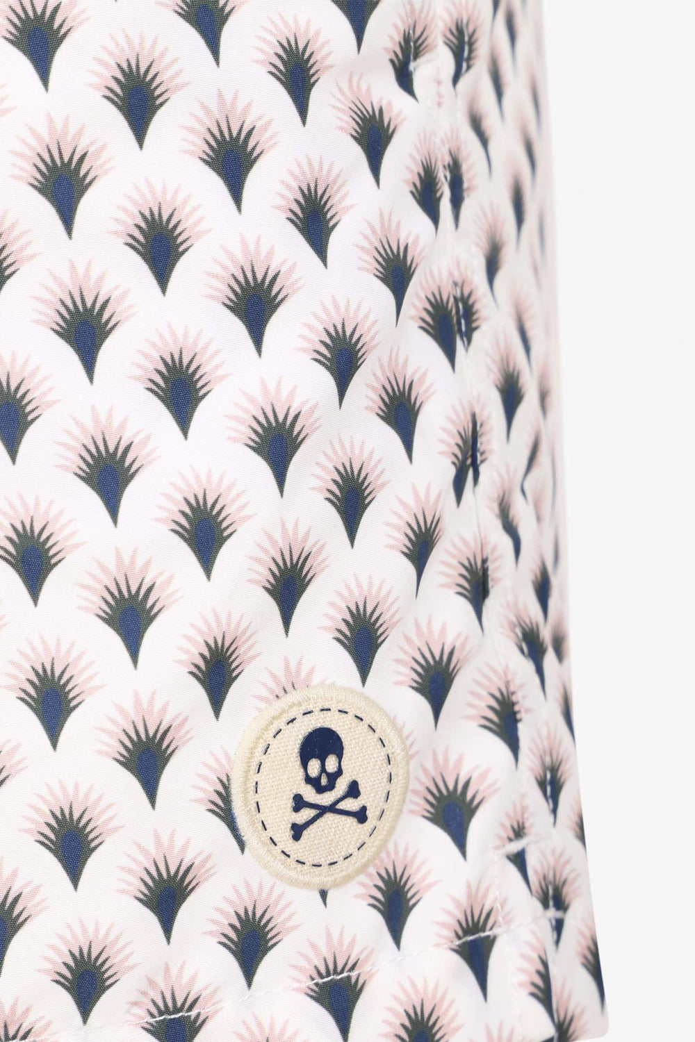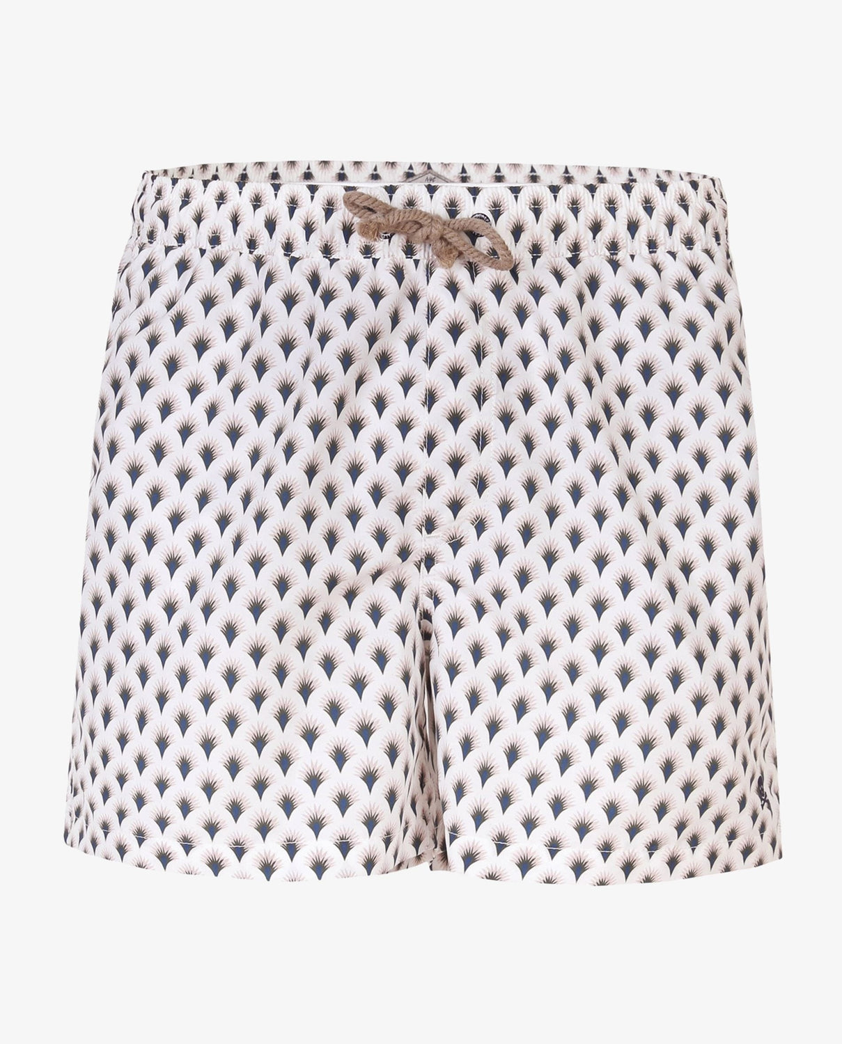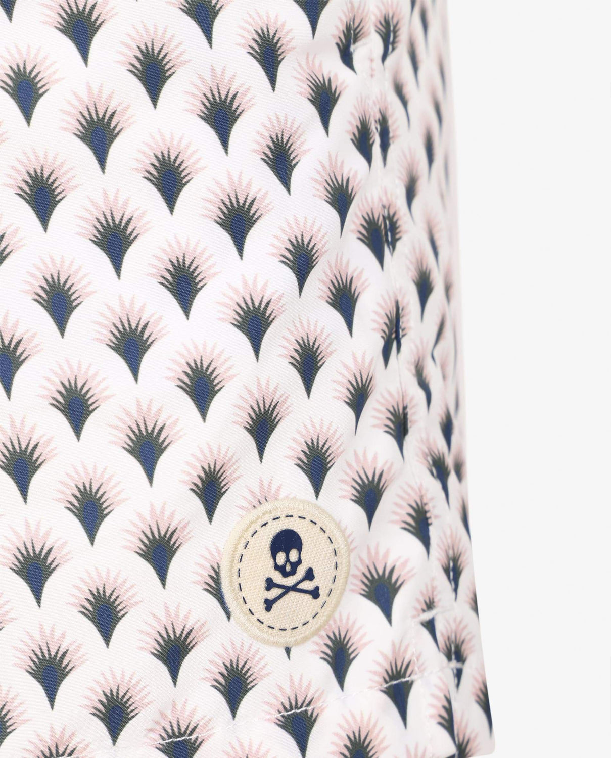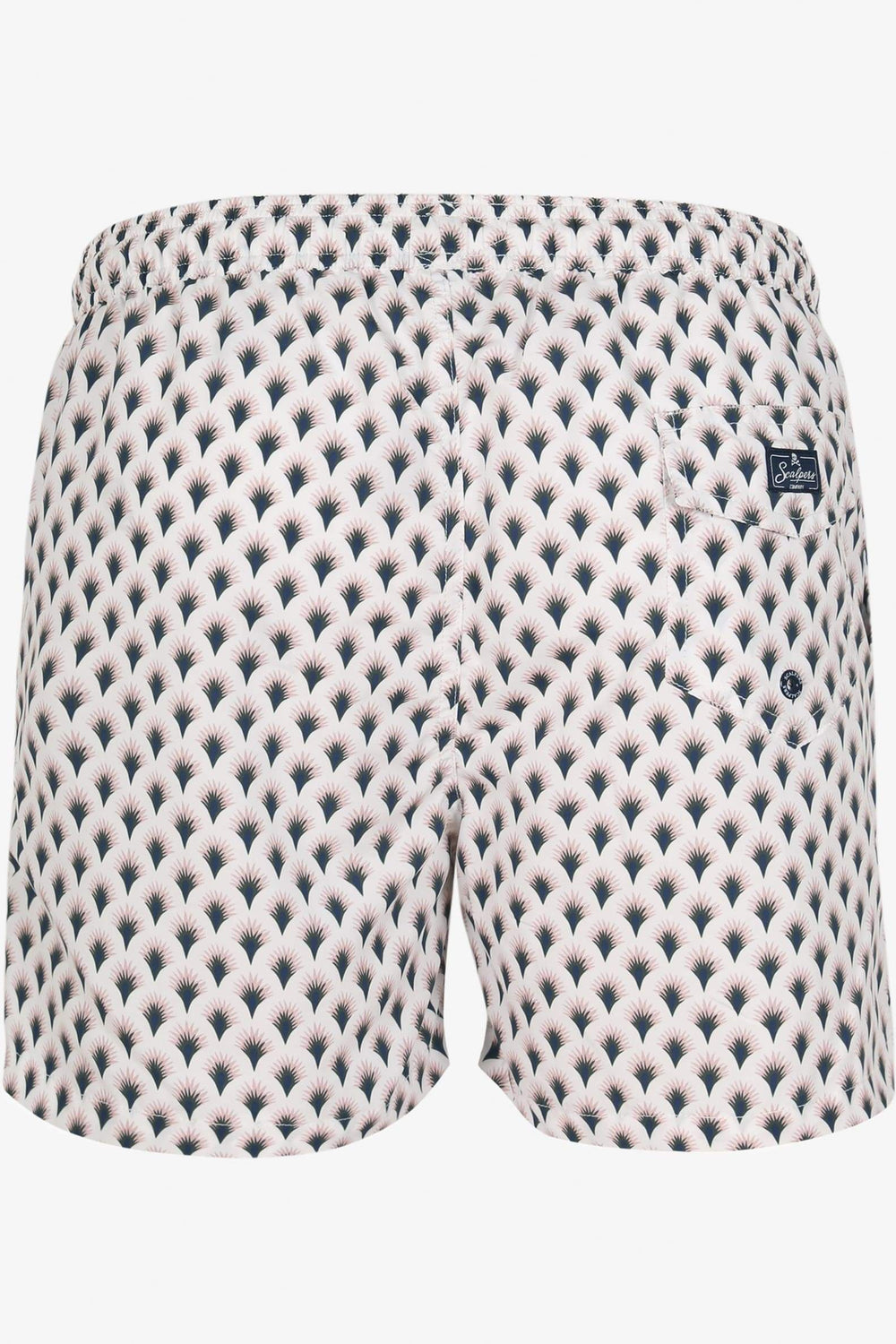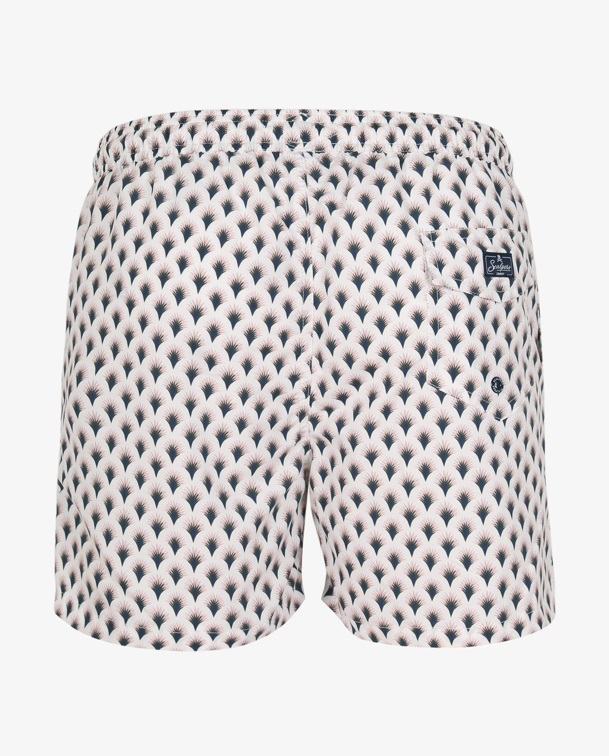 Bañador con estampado. Corte a media pierna, cintura elástica con cordón ajustable y bolsillos. Detalle de parche engomado.