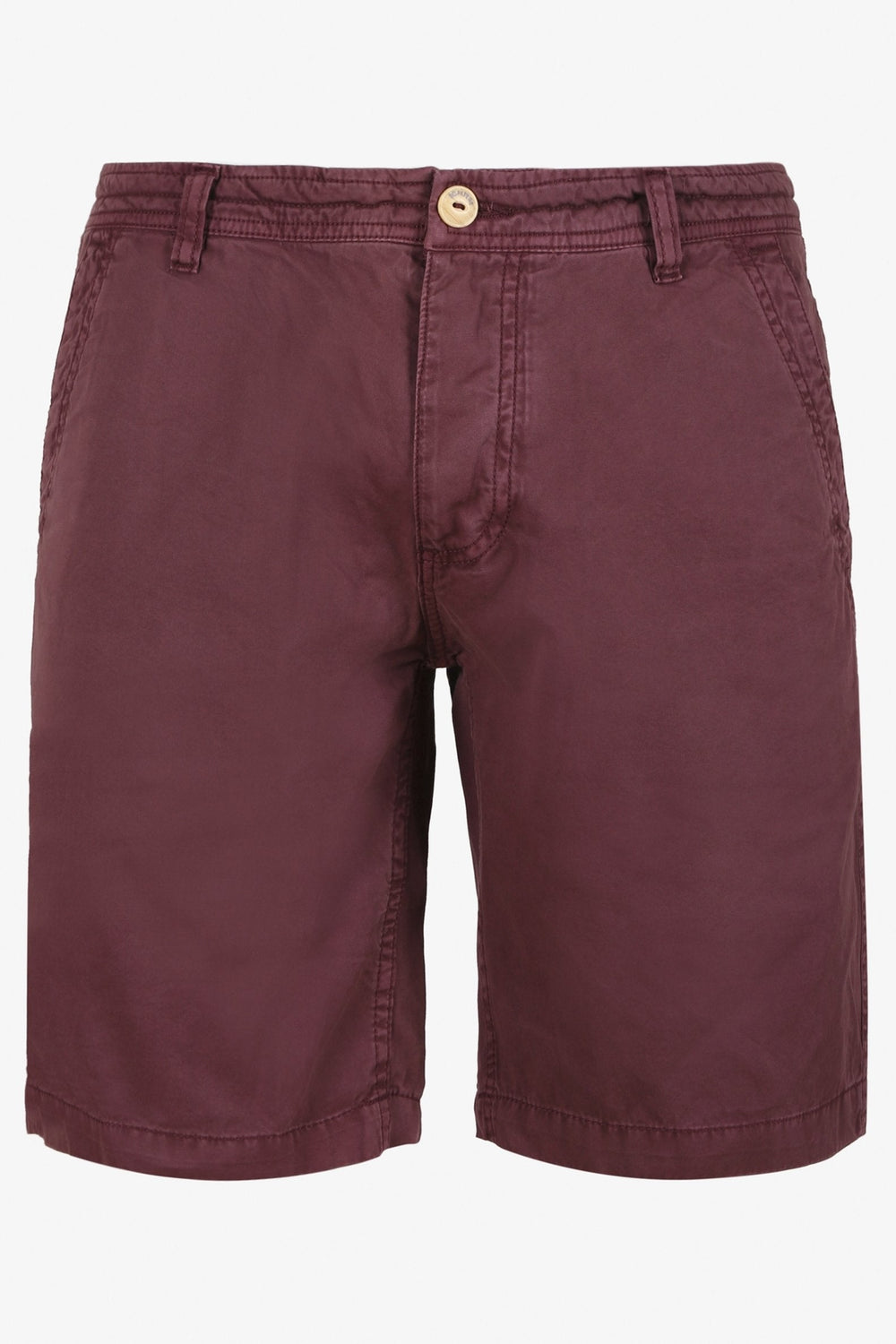 Bermudas confeccionadas en tejido 100% algodón garment dyed. Corte Regular Fit, cierre con botón y cremallera oculta por tapeta. Bolsillos delanteros y traseros y forro de espiga.