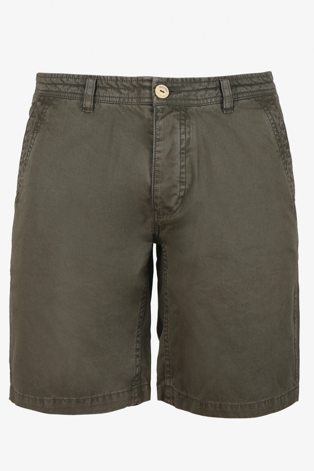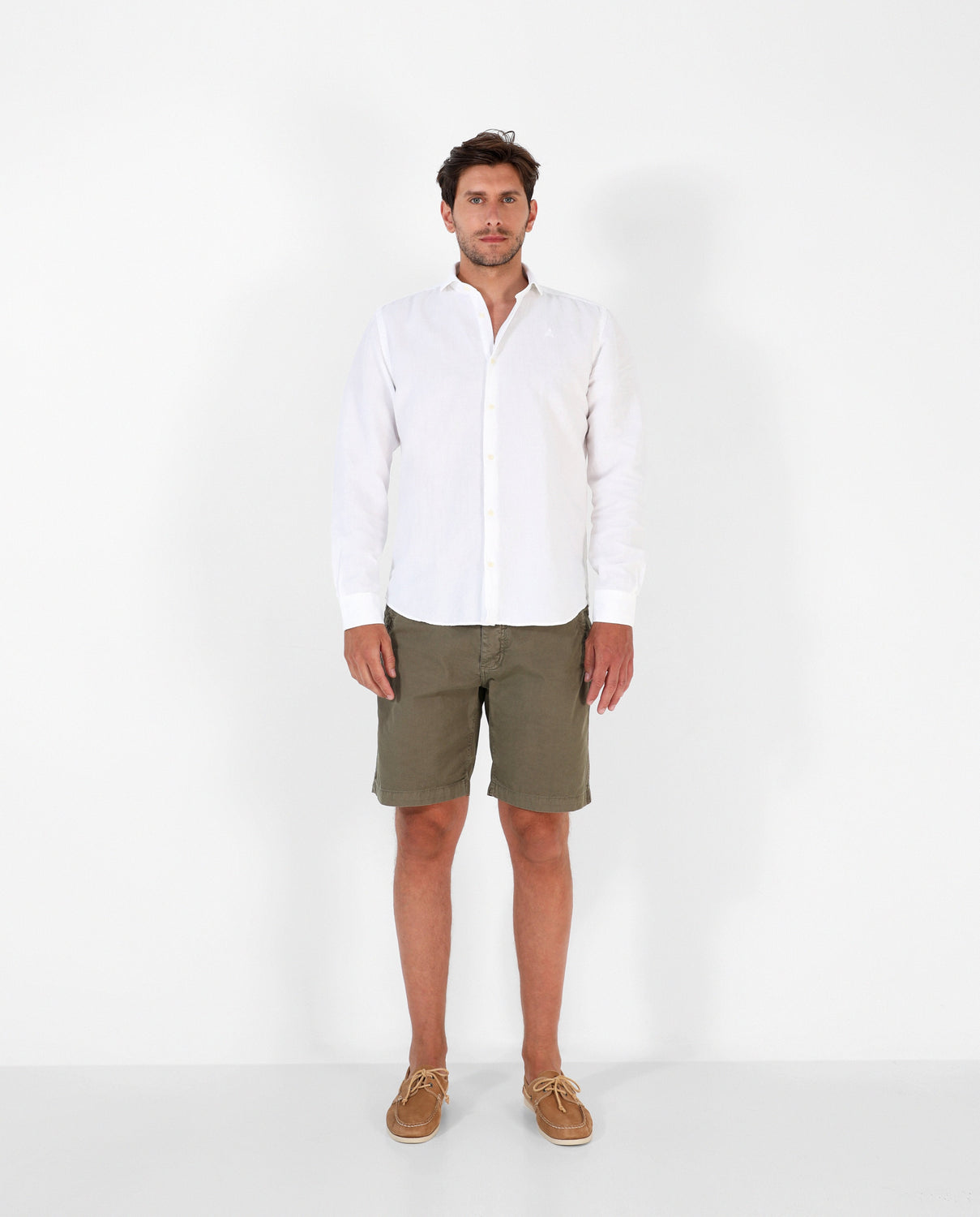 Bermudas confeccionadas en tejido 100% algodón garment dyed. Corte Regular Fit, cierre con botón y cremallera oculta por tapeta. Bolsillos delanteros y traseros y forro de espiga.