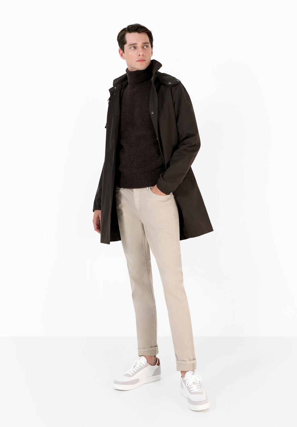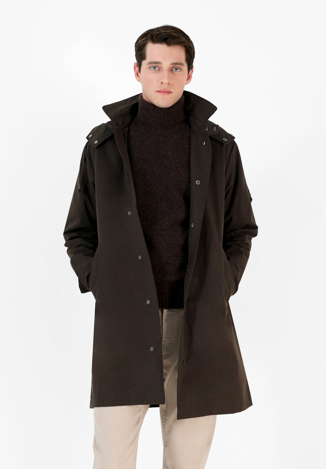 Parka confeccionada en tejido water repellent de tacto melocotón. Corte Regular Fit, cuello camisero con capucha desmontable y cierre con botones automáticos. Manga larga terminada en puños elásticos y botones automáticos. Bolsillos de vivo en cintura. Puño elástico y abertura trasera con botones automáticos.