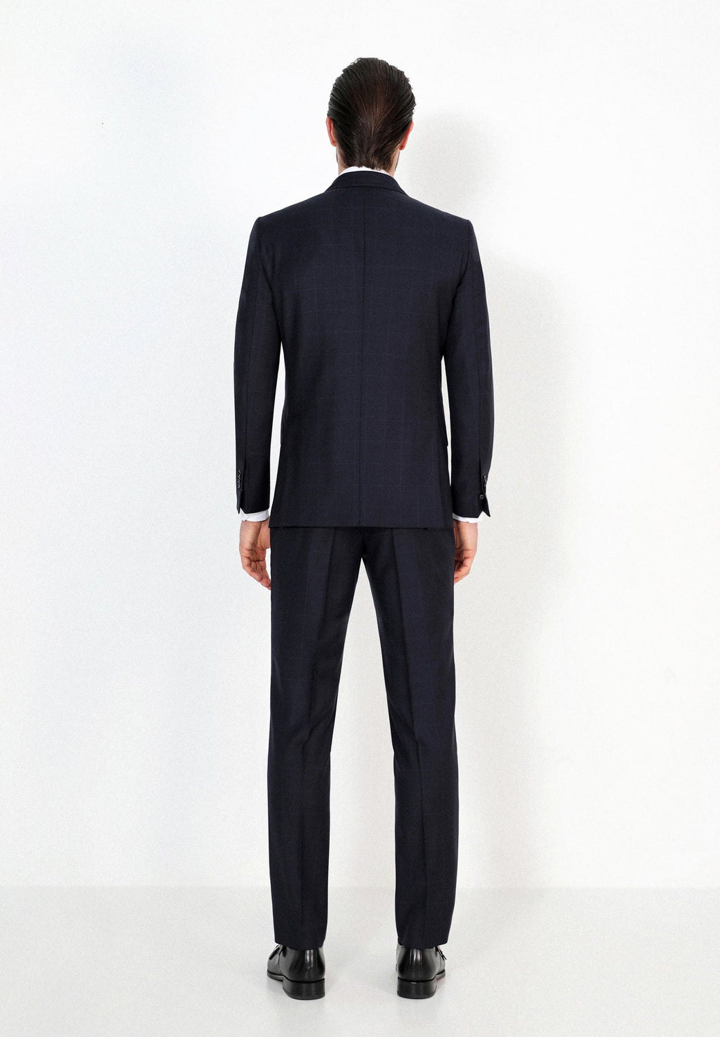 Traje de tres piezas de cuadros confeccionada en tejido 100% lana. Americana de corte Regular Fit, cuello con solapas de muesca y cierre con botones. Manga larga terminada en puño con botones y bolsillo insertado. Bolsillo insertado en el pecho. Chaleco clásico con botones. Pantalón de corte Regular Fit, cierre con botón y cremallera y bolsillos laterales.