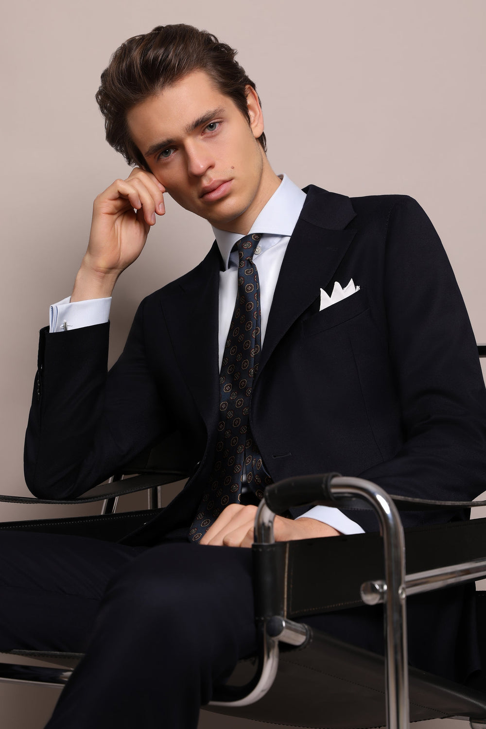 - Americana de corte Regular Fit, cuello con solapas y cierre con botones