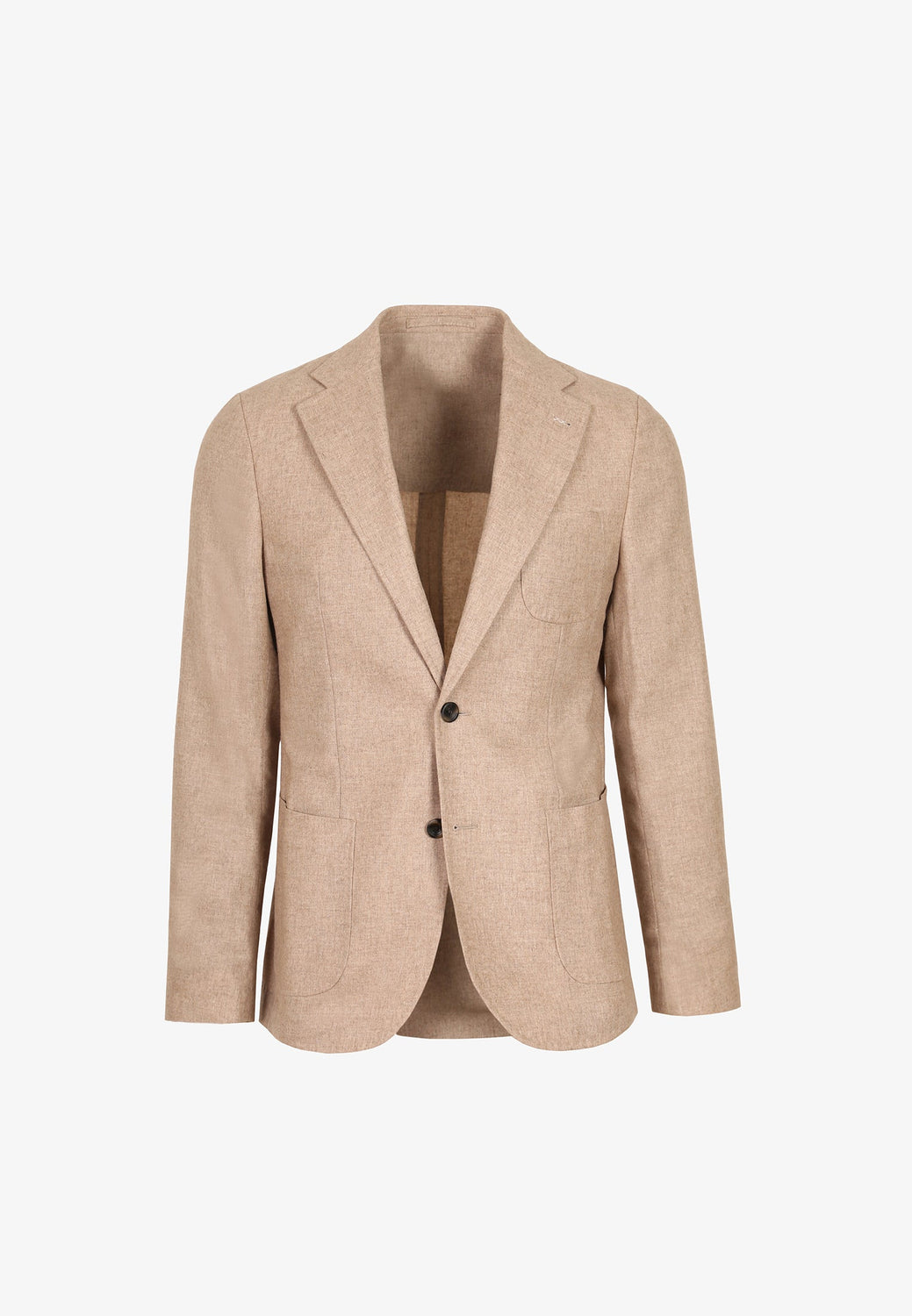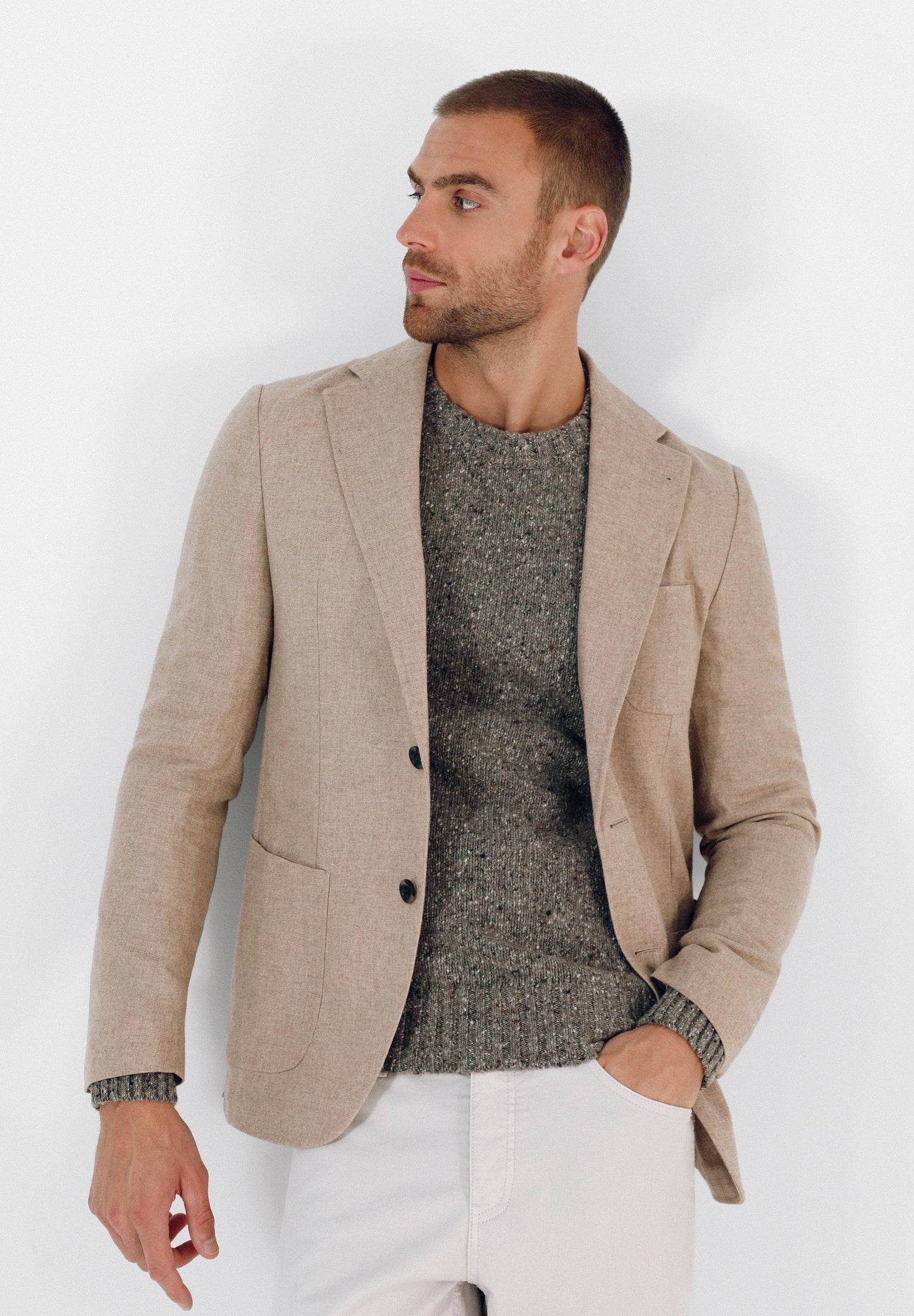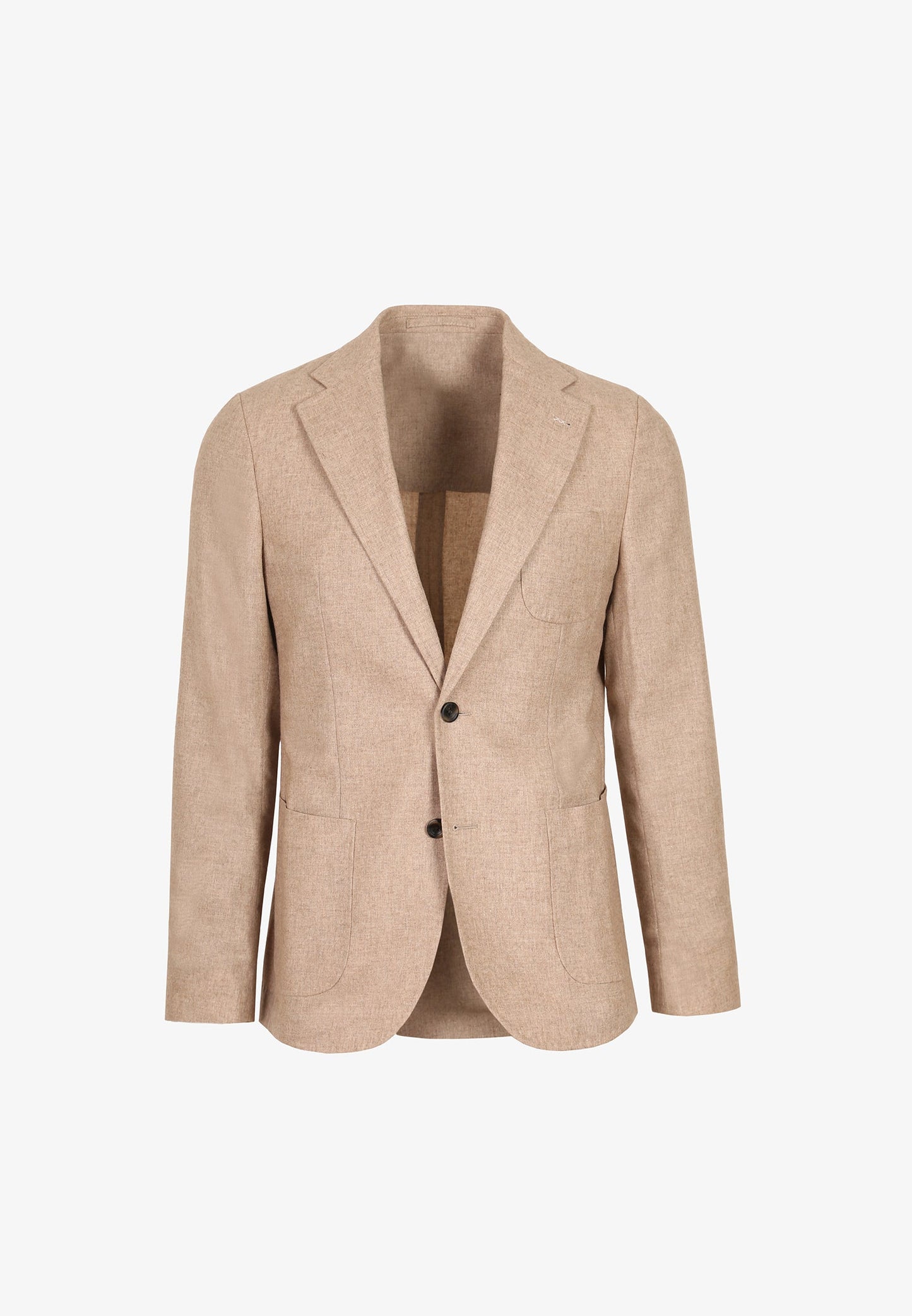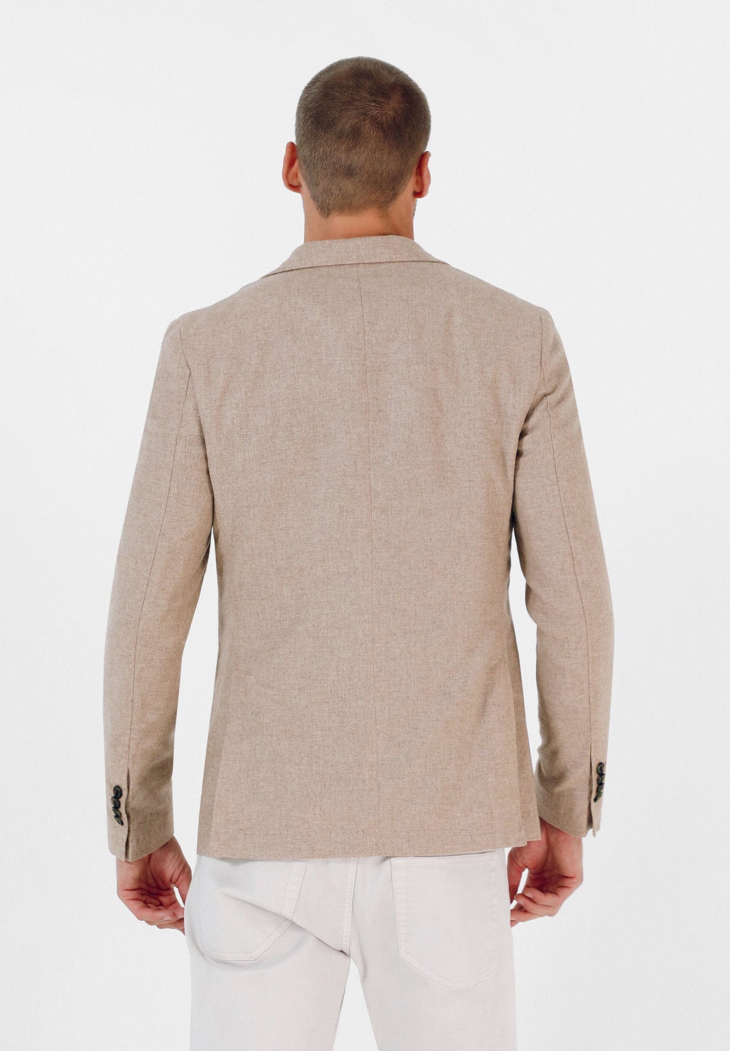 Americana casual confeccionada en tejido mezcla de lana. Corte Regular Fit, cuello con solapa y cierre con botones. Manga larga terminada en puño con botones y bolsillos laterales de plastrón.