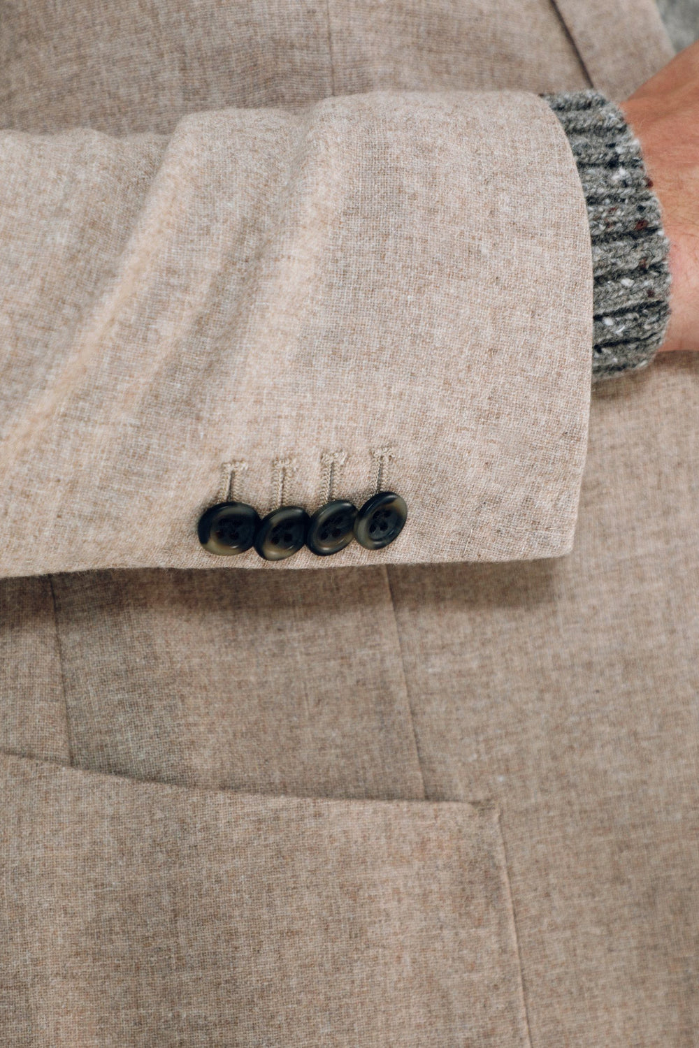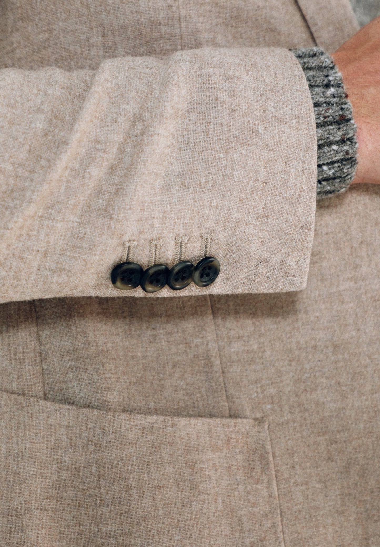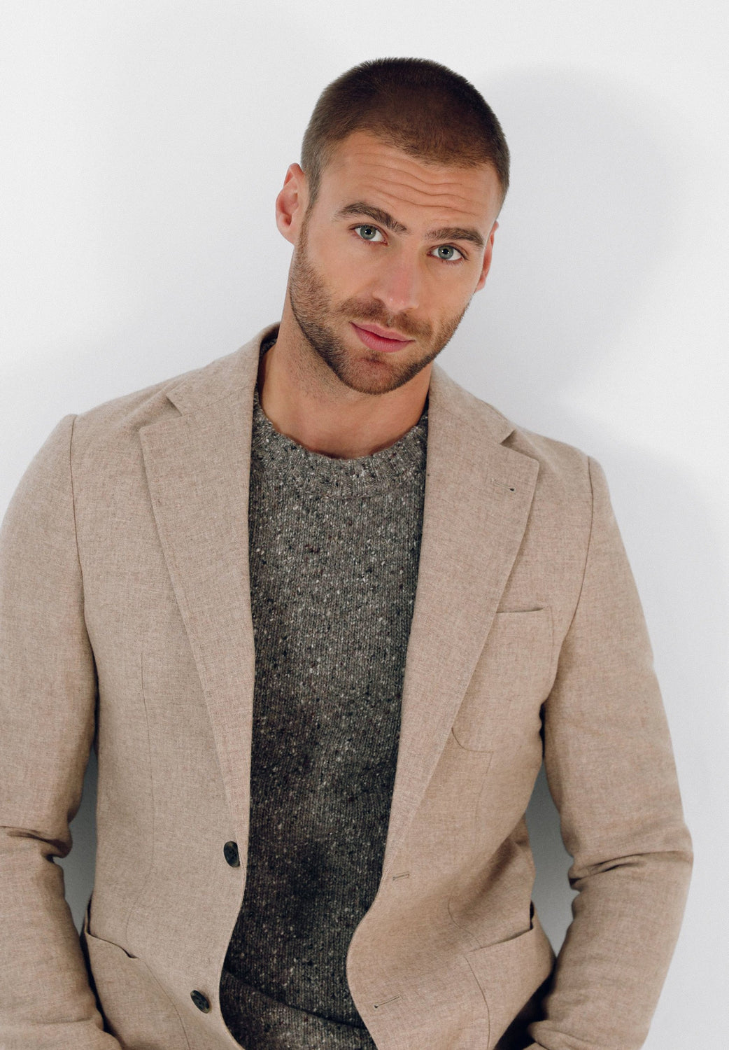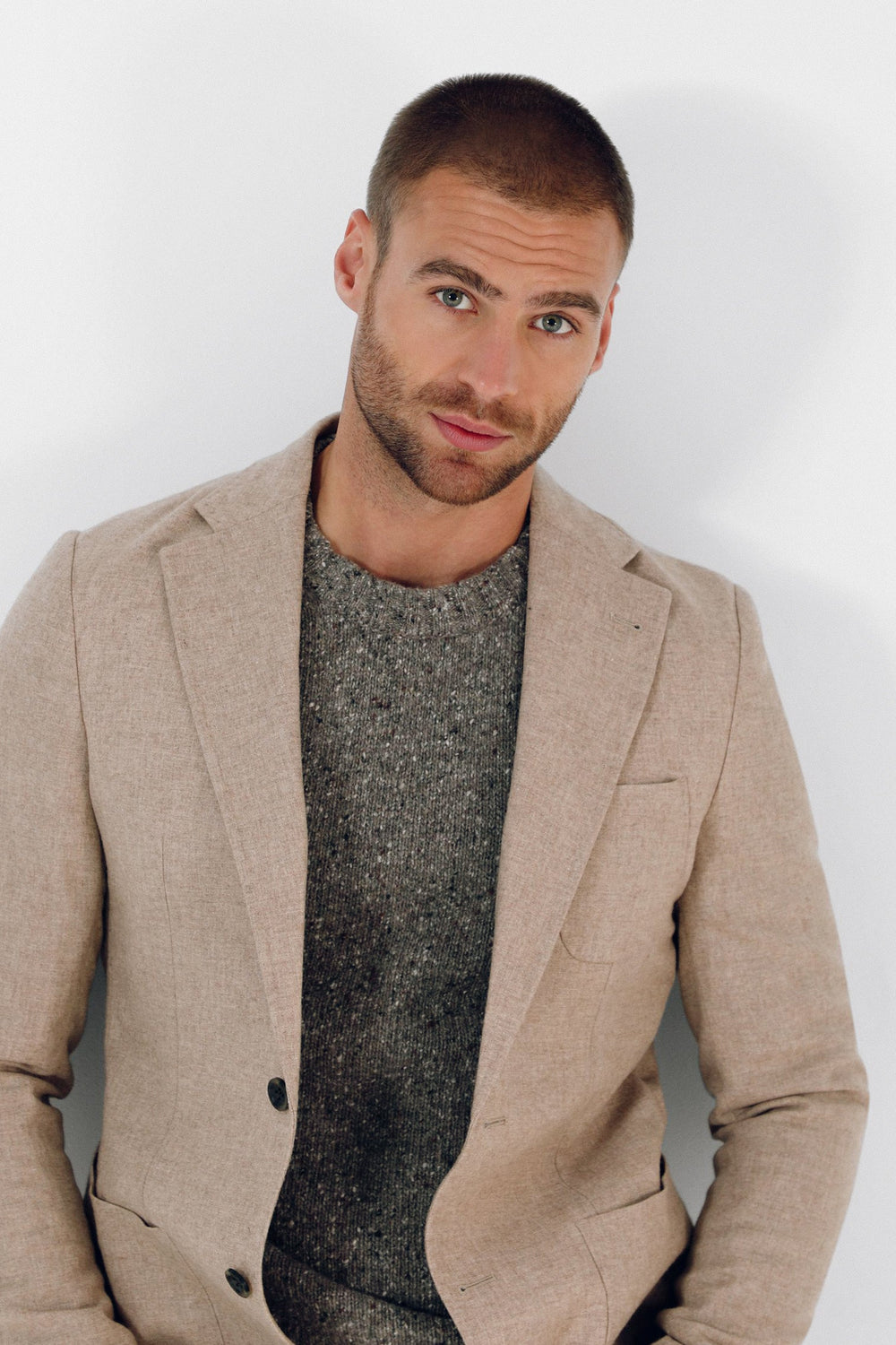 Americana casual confeccionada en tejido mezcla de lana. Corte Regular Fit, cuello con solapa y cierre con botones. Manga larga terminada en puño con botones y bolsillos laterales de plastrón.