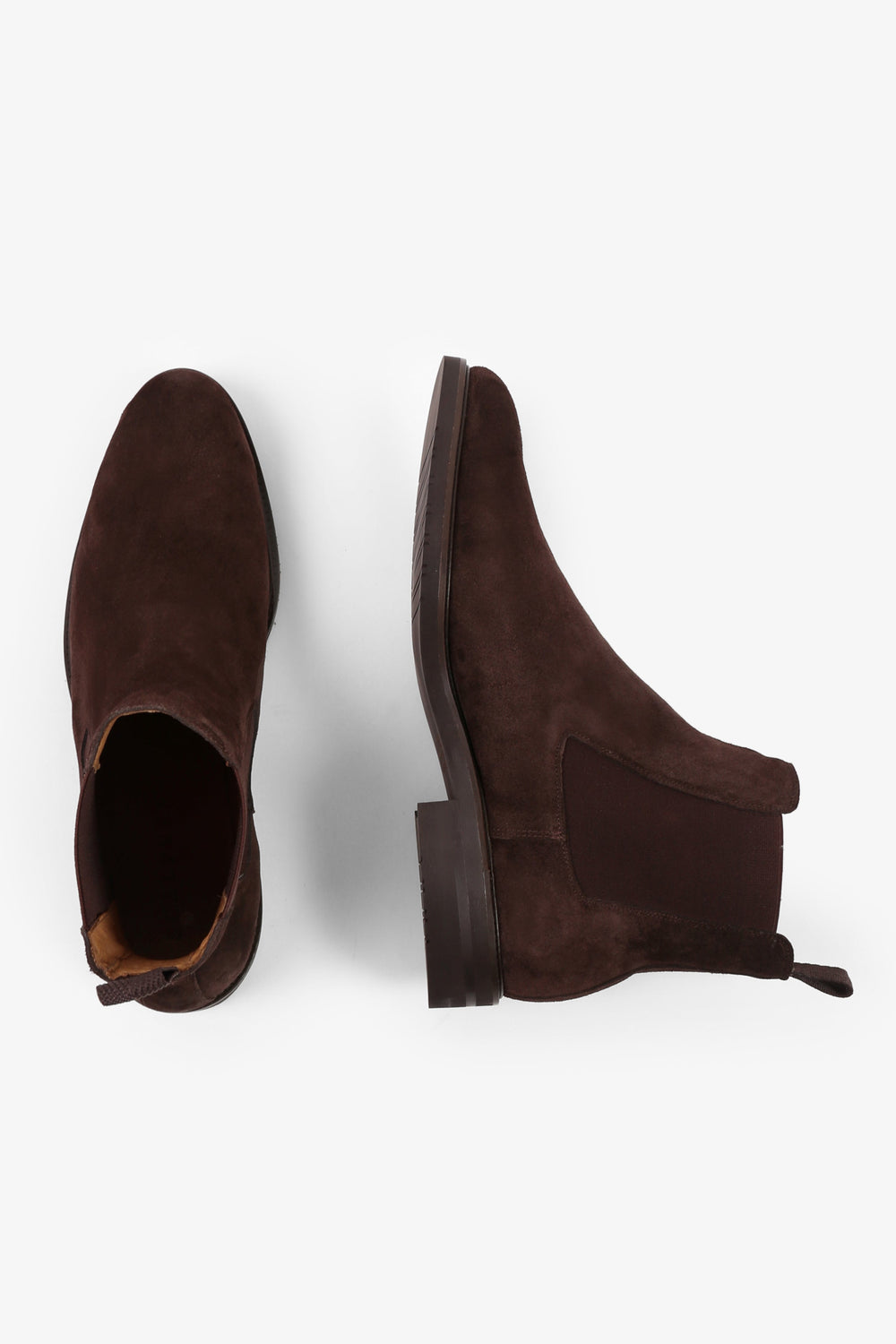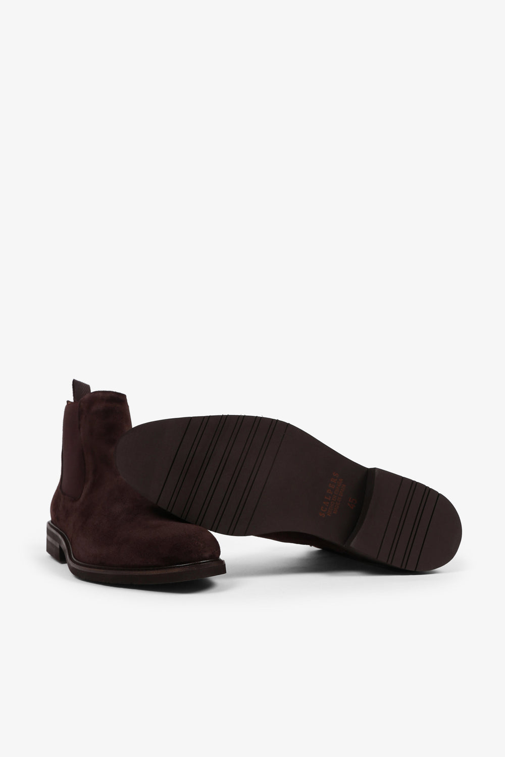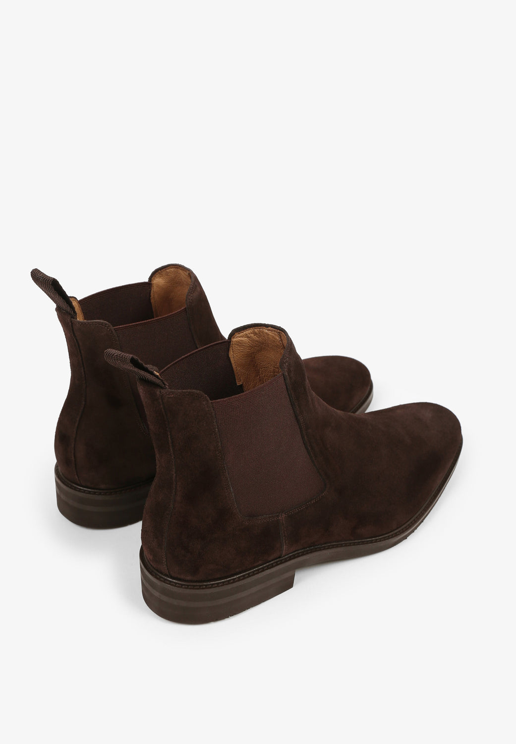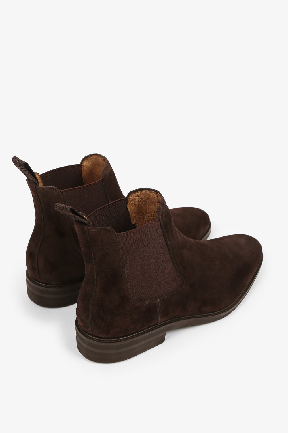 Botas confeccionadas en 100% piel de vacuno terminada en ante. Suela de goma y detalle de elástico lateral.