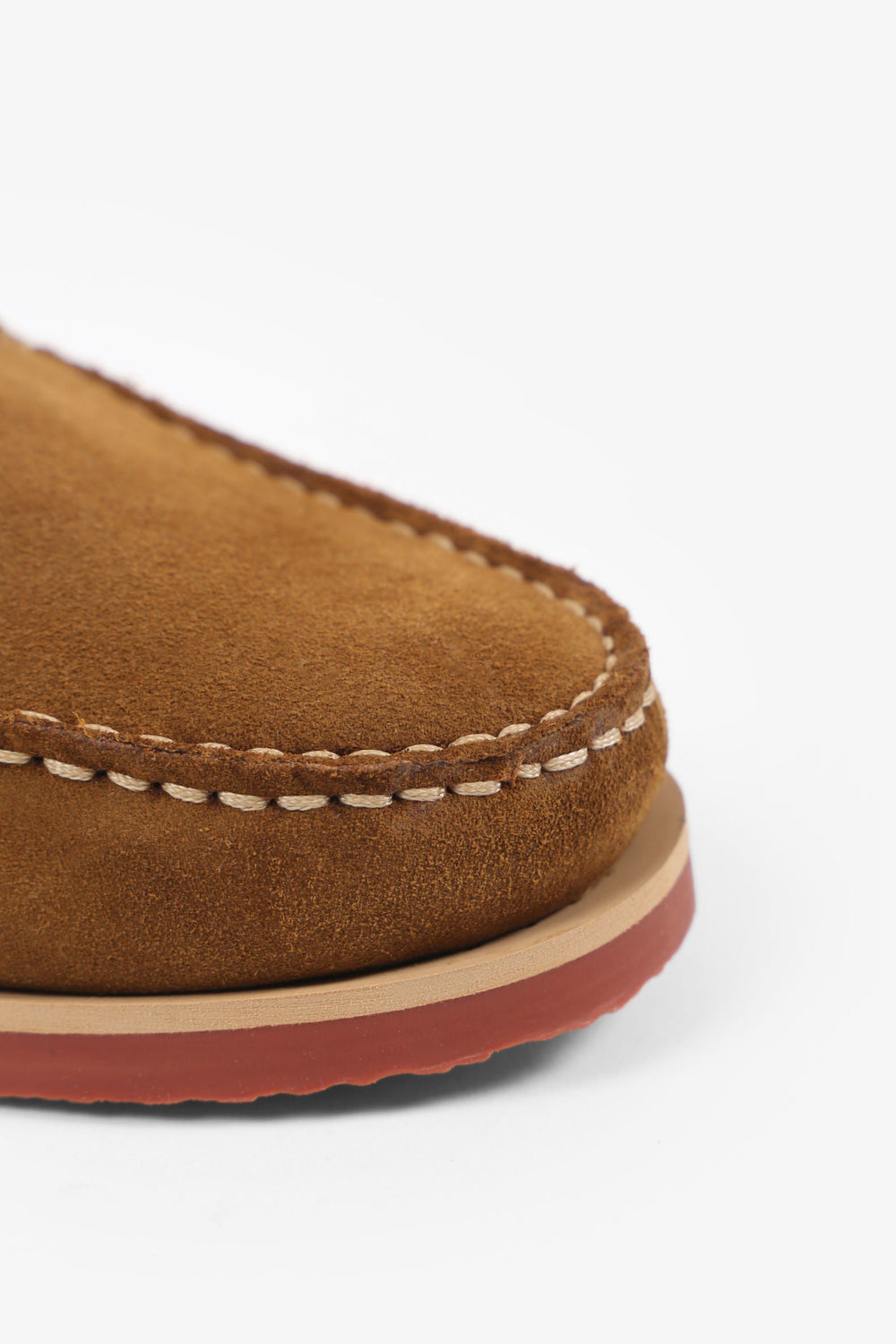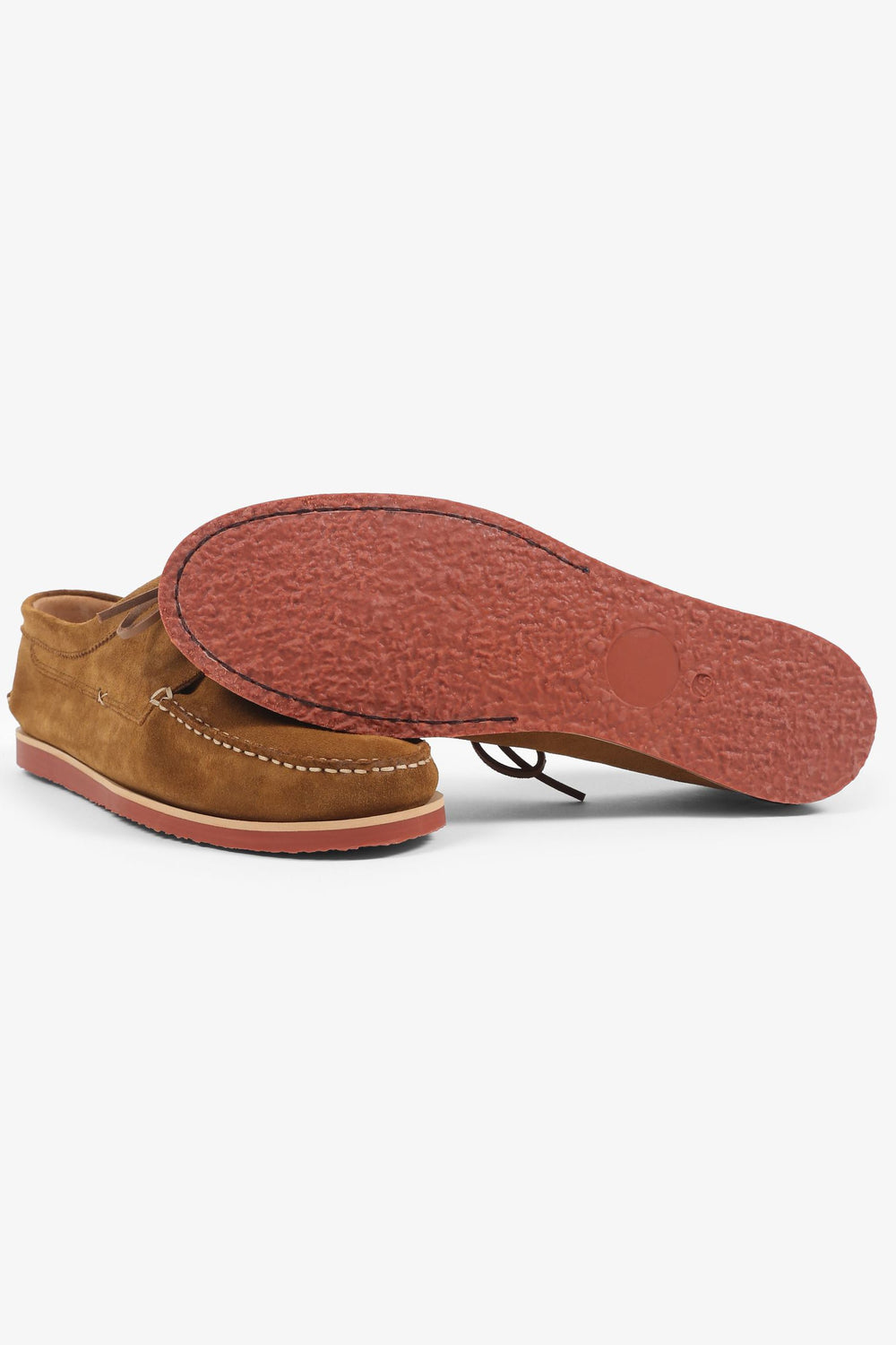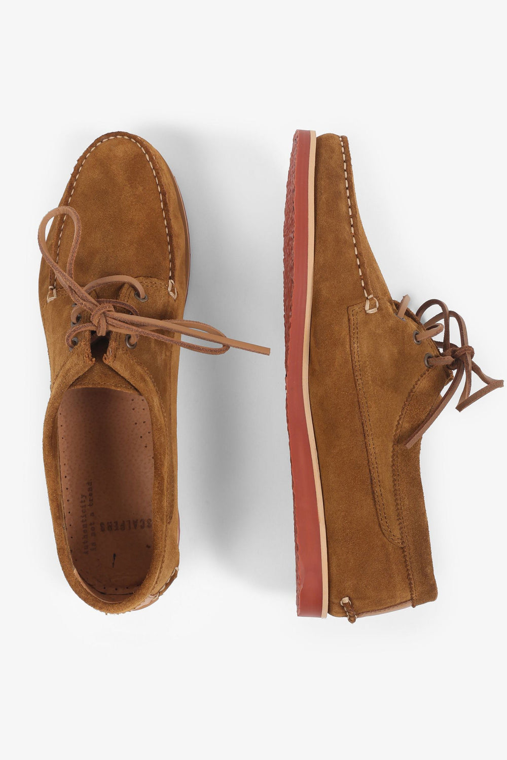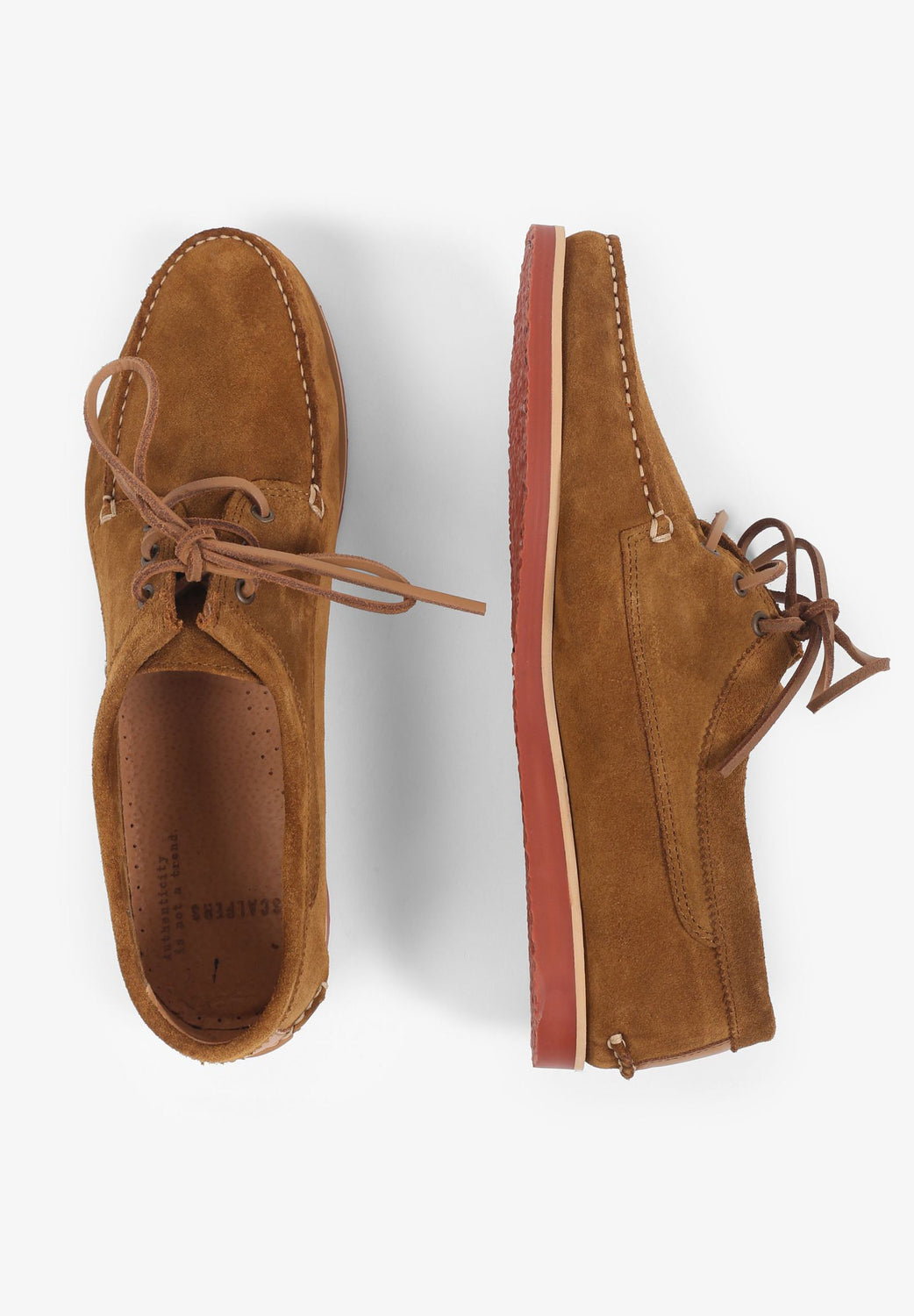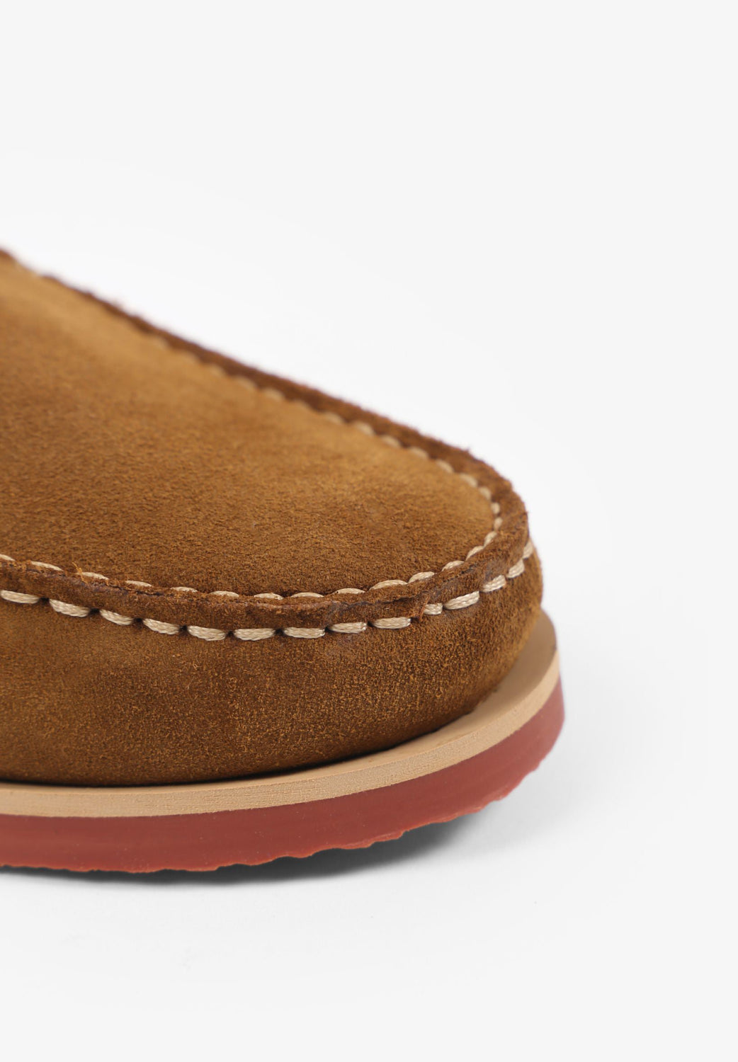 Zapatos confeccionados en piel de cerdo con acabado en ante. Cierre con cordones y suela de goma. Detalle de pespuntes y logo calavera en el talón.