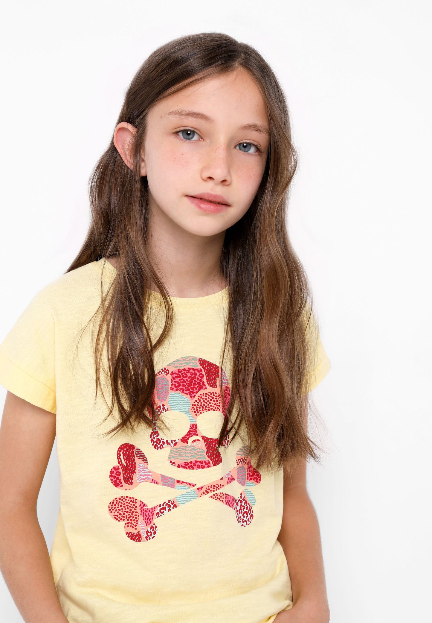 Camiseta confeccionada en tejido 100% algodón orgánico. Corte Regular Fit, cuello redondo y manga corta. Detalle de print de calavera multicolor.