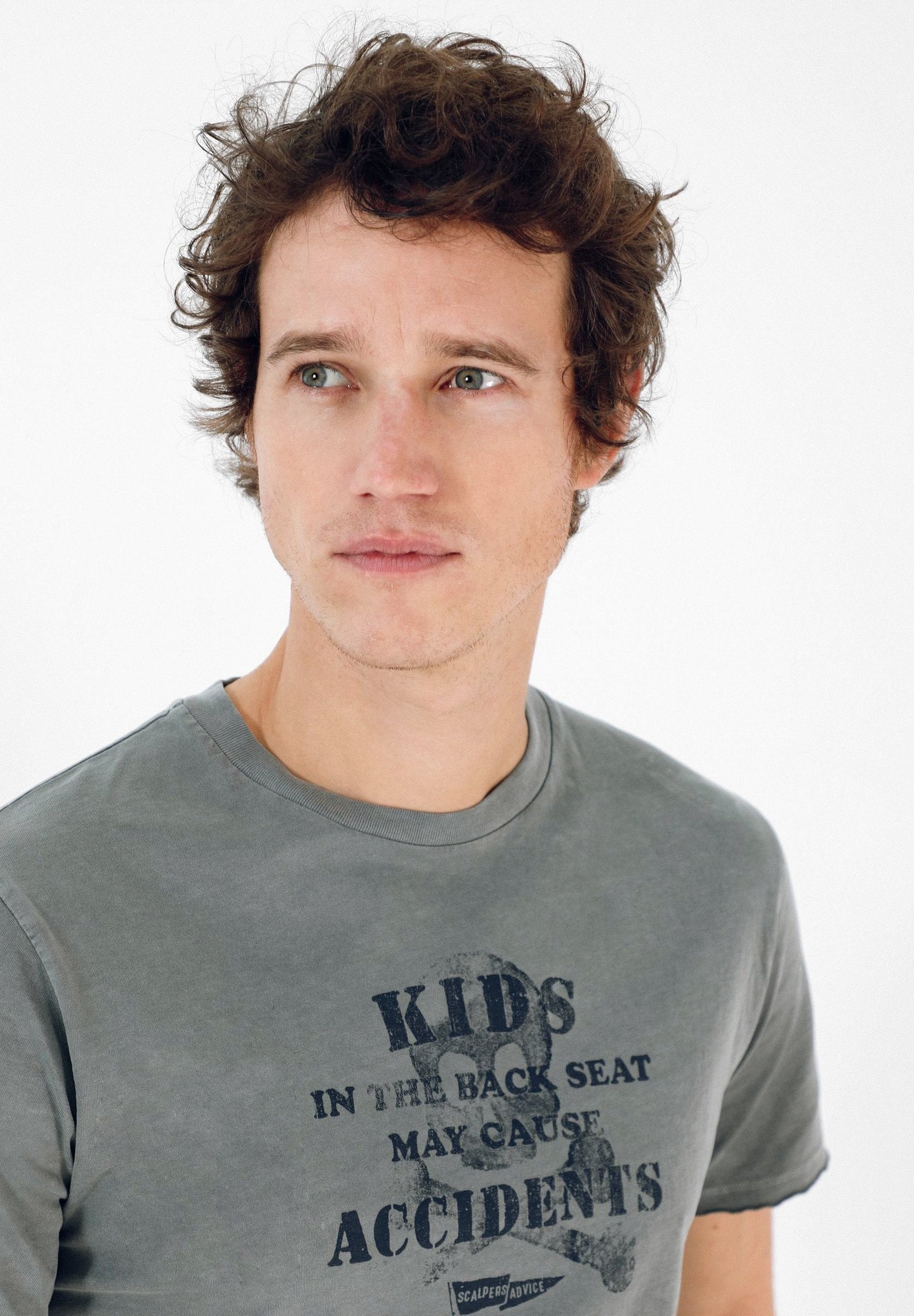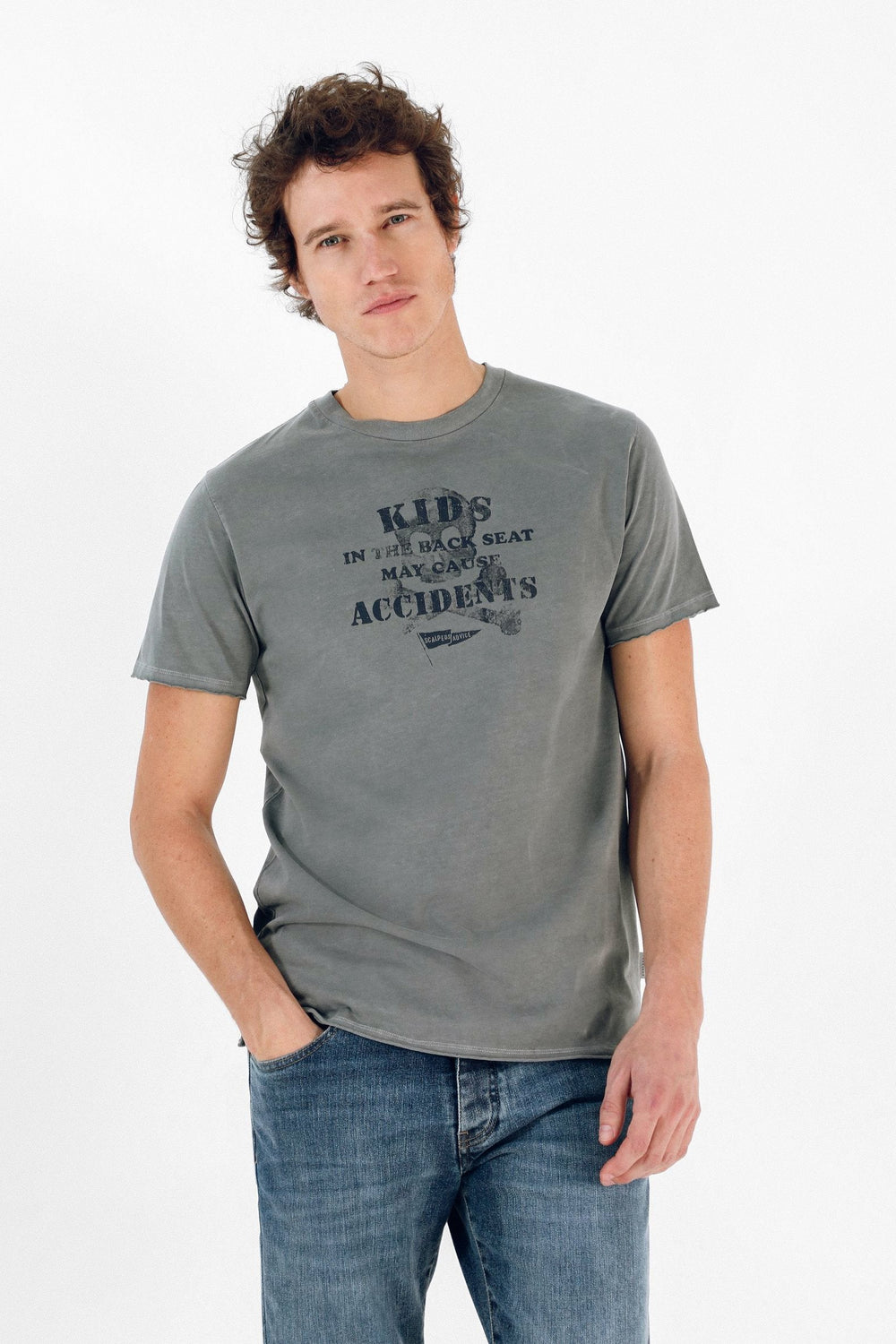 Camiseta confeccionada en tejido 100% algodón orgánico. Corte Regular Fit, cuello redondo y manga corta. Detalle de print.