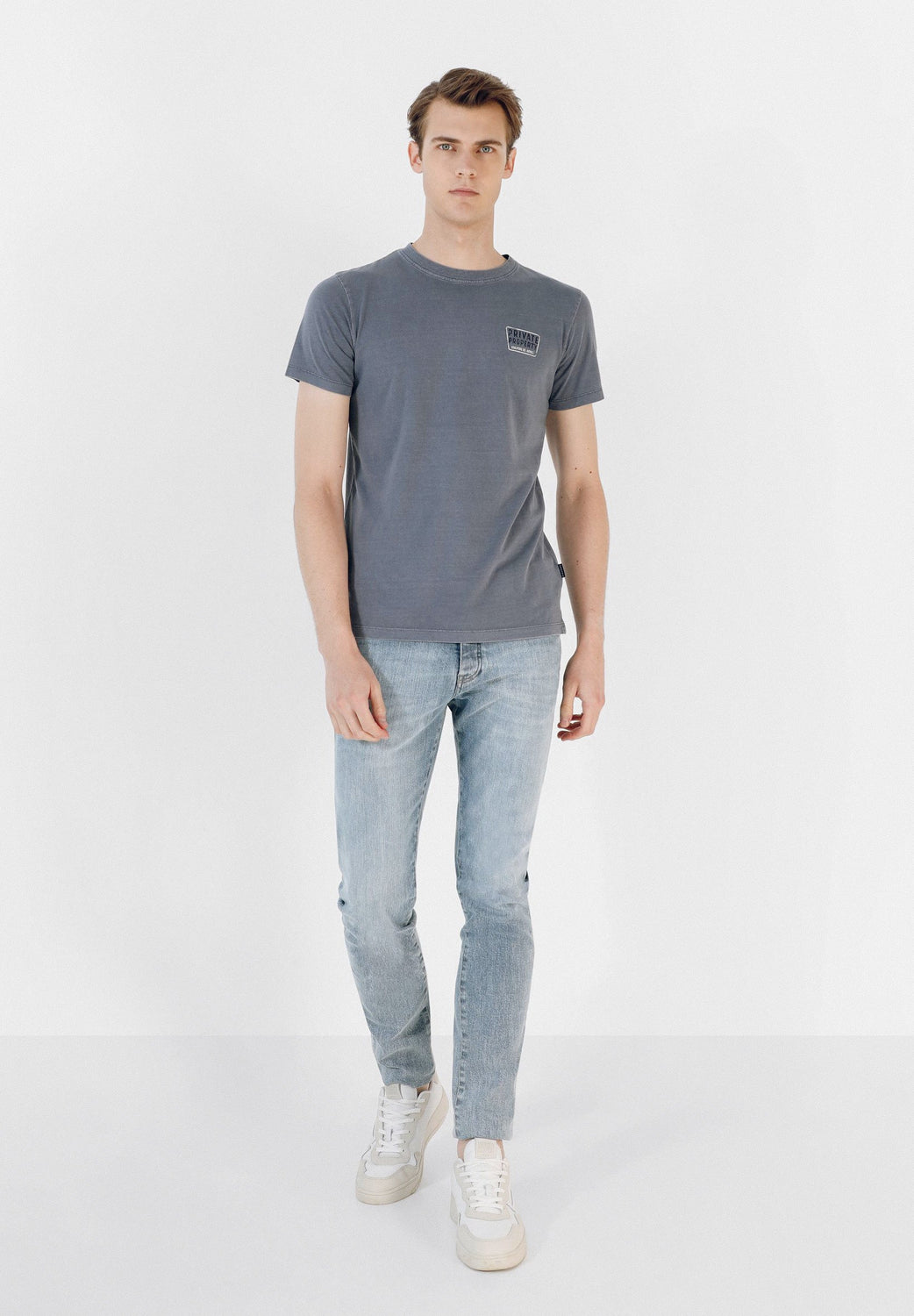 Camiseta confeccionada en tejido garment dyed 100% algodón orgánico. Corte Regular Fit, cuello redondo y manga corta. Detalle de parche en el pecho y print trasero.
