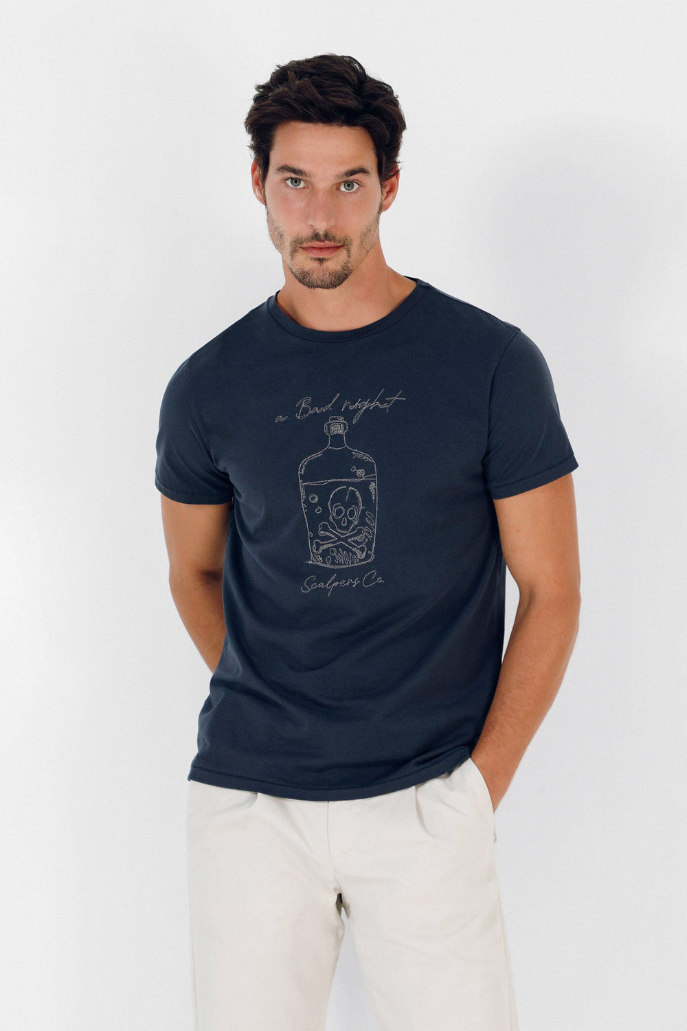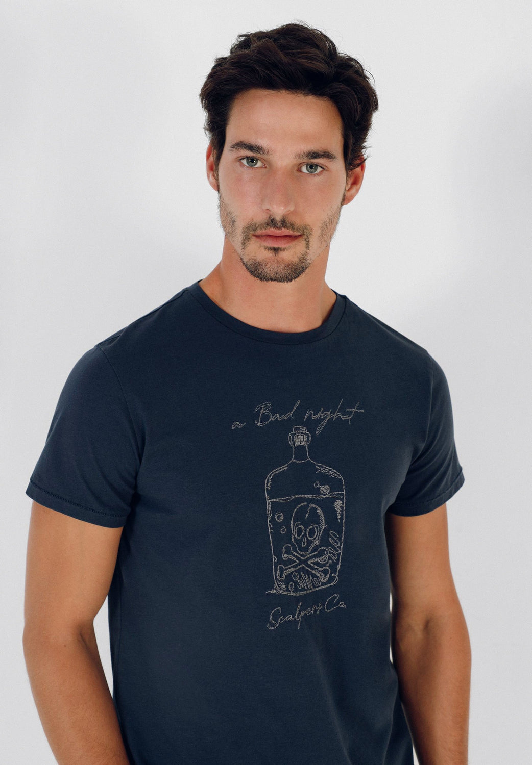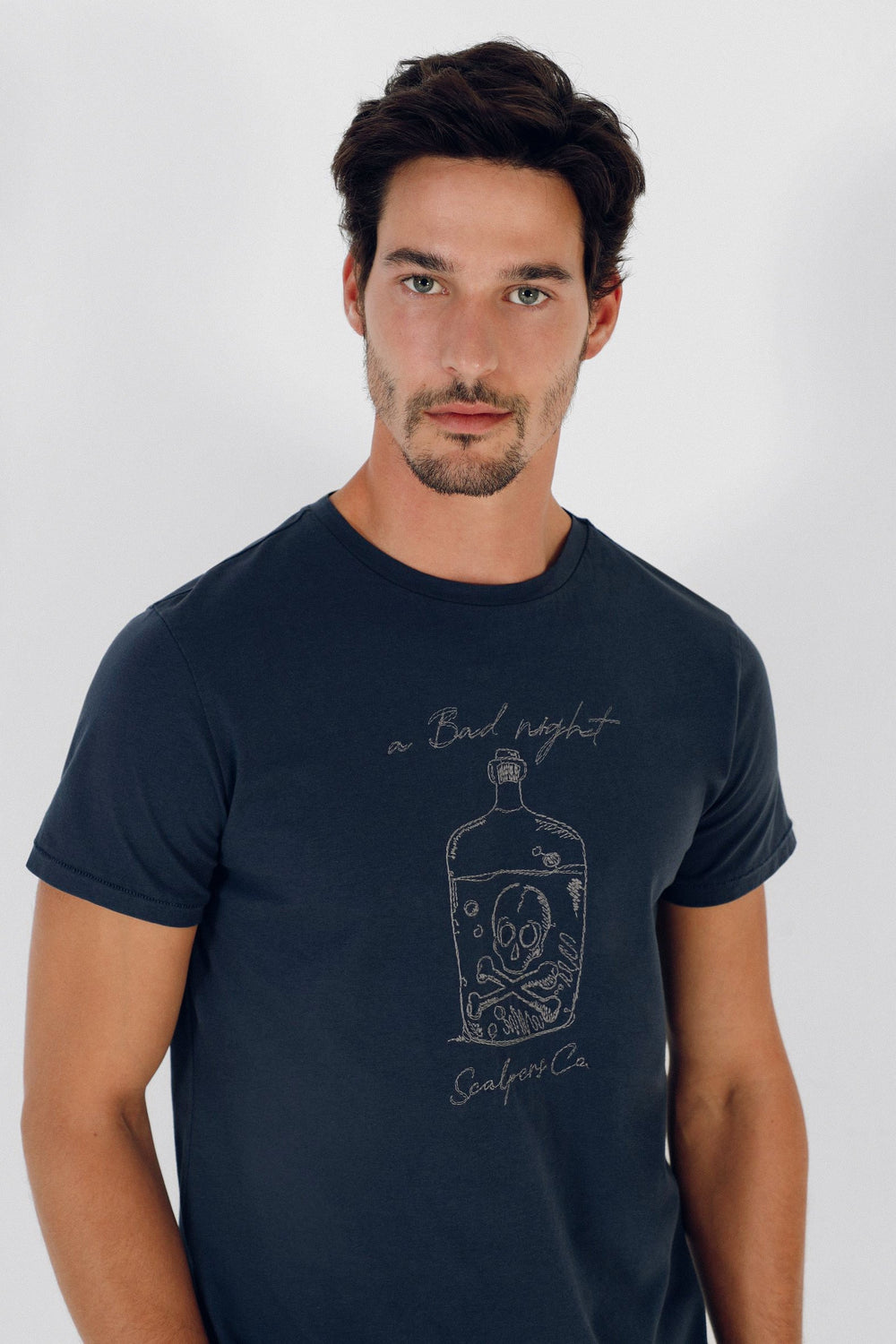 Camiseta con aplicación bordada de calavera delantero confeccionada en tejido 100% algodón orgánico. Corte Regular Fit, cuello redondo y manga corta.